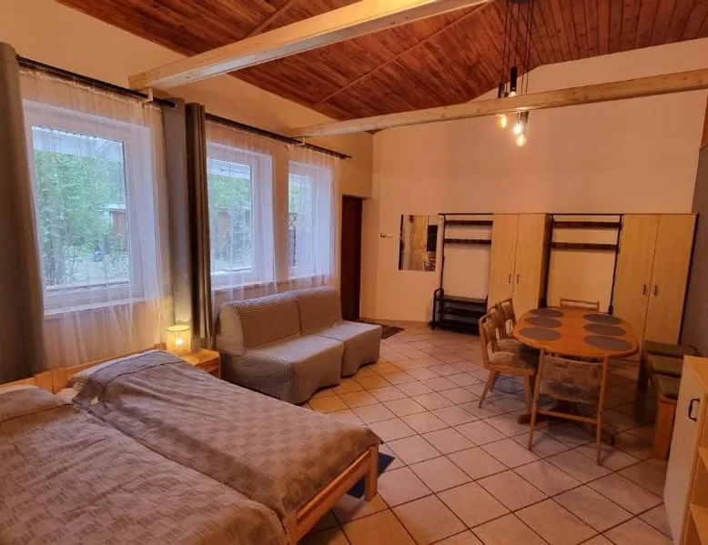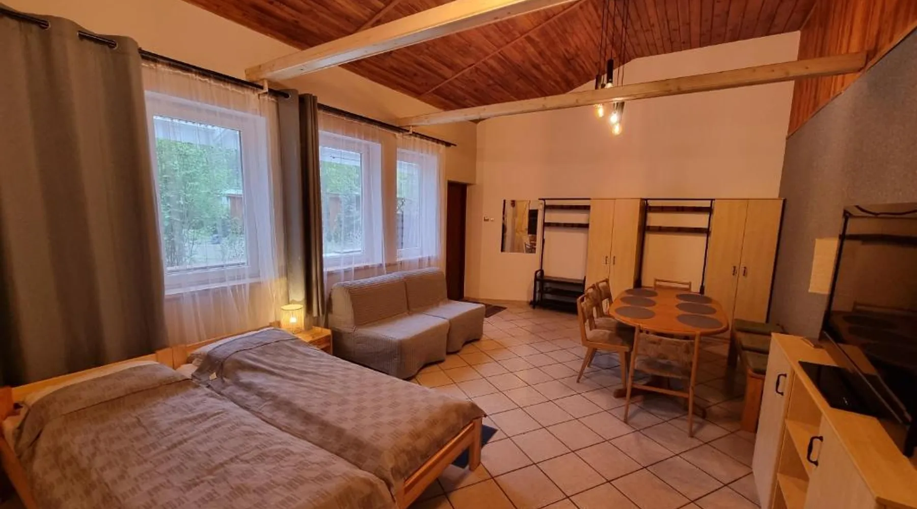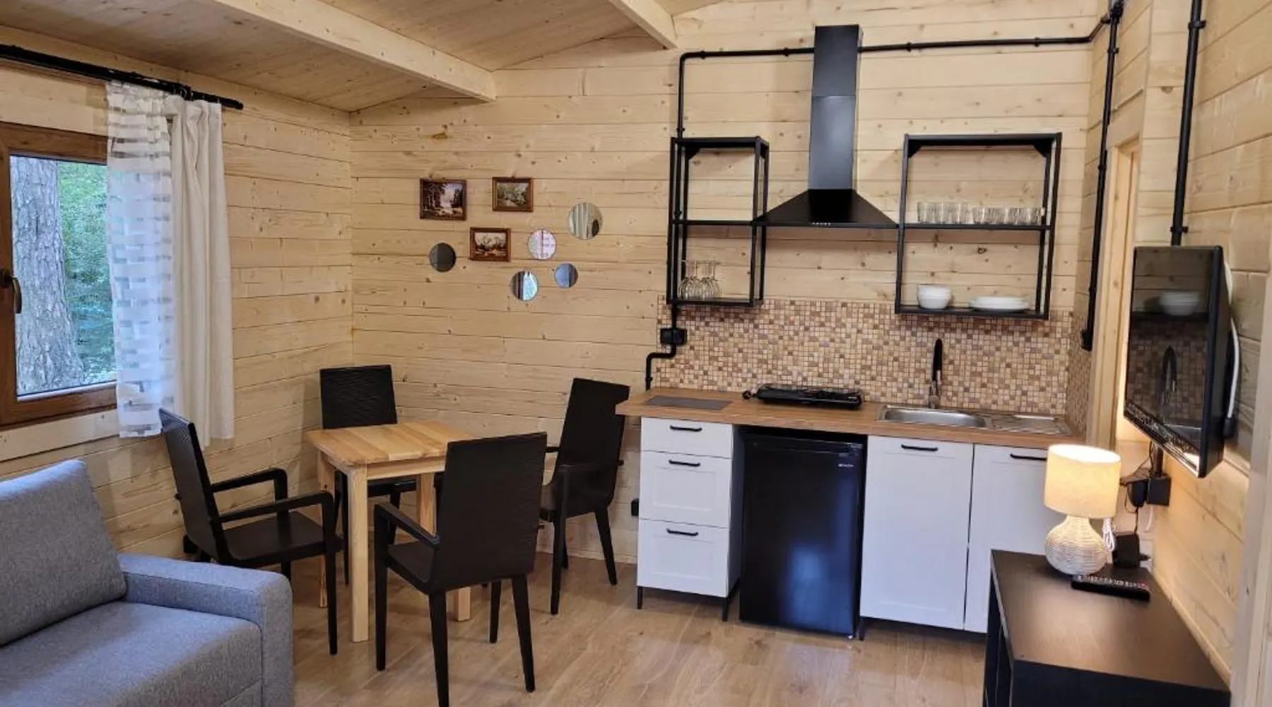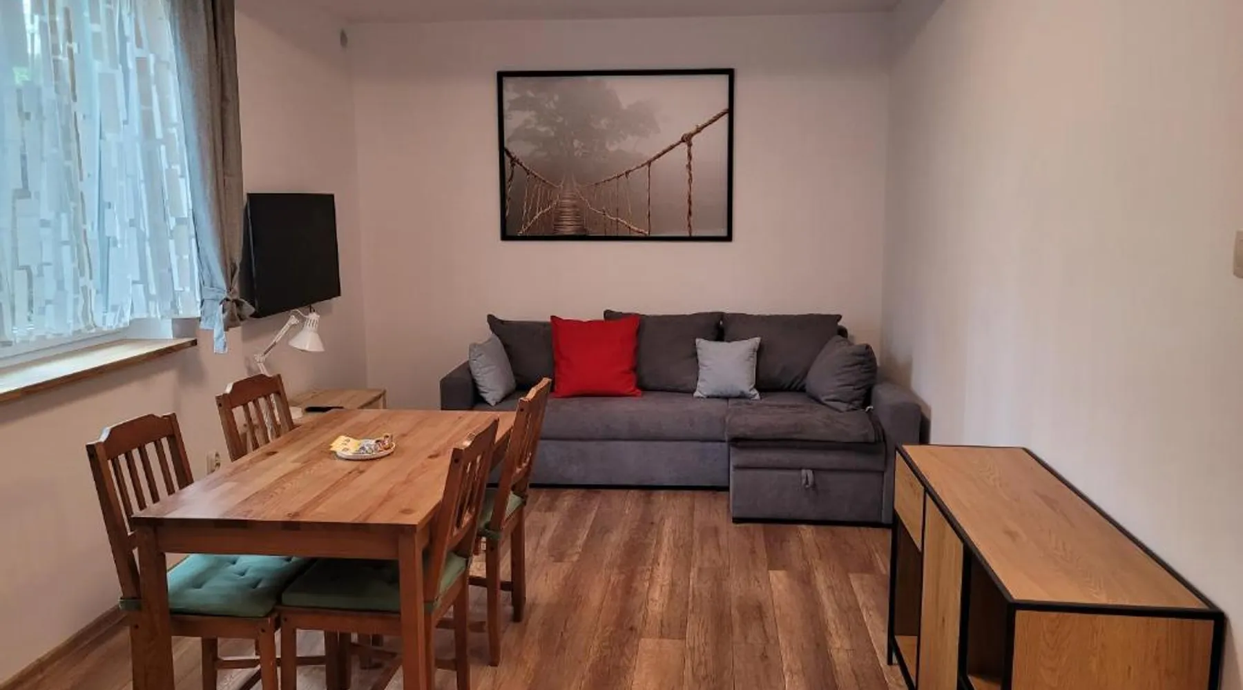 Comfortable Accommodations: Ośrodek Moje El Dorado in Sieraków offers holiday park accommodations with private bathrooms, fully equipped kitchens, and parquet floors. Each unit includes a sofa bed, TV, and work desk, ensuring a pleasant stay. Leisure Facilities: Guests can enjoy a garden, terrace, and outdoor seating area. The property features an outdoor play area, picnic spots, and barbecue facilities. Free WiFi is available throughout the park. Convenient Location: Located 43 mi from Poznań-Ławica Henryk Wieniawski Airport and 11 mi from Stadium Miedzychod, the park is near lakes and nearby shops. Activities include fishing, walking tours, bike tours, hiking, cycling, and snorkeling. Featuring a private entrance, this spacious apartment also consists of 3 separate bedrooms and 1 bathroom with a bath and a shower. The apartment's kitchen is available for cooking and storing food. This apartment features a wardrobe, an electric kettle, a flat-screen TV and a terrace. The unit offers 7 beds.