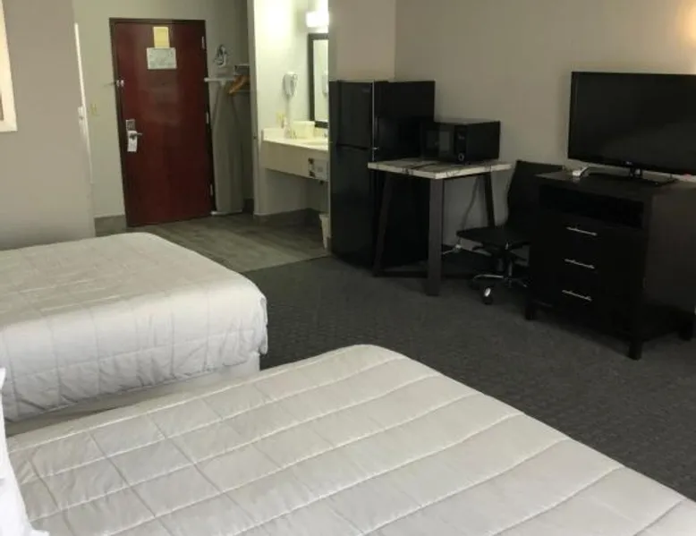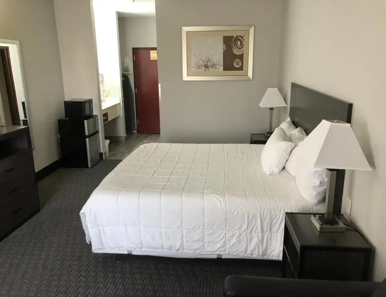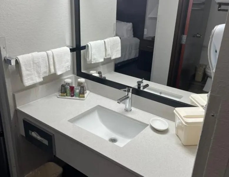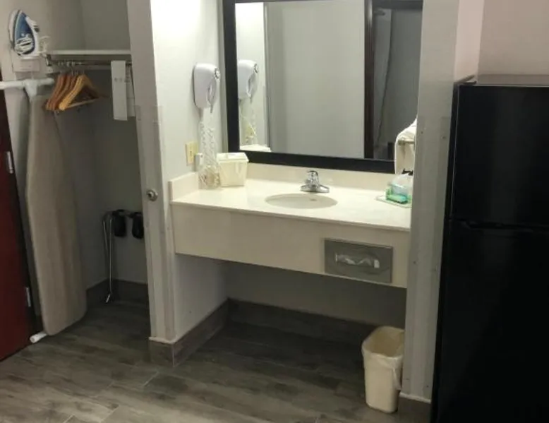 Comfortable Accommodations: Lea County Inn in Hobbs offers family rooms with air-conditioning, private bathrooms, and free WiFi. Each room includes a work desk, TV, and seating area. Facilities and Services: Guests can enjoy a fitness center, elevator, 24-hour front desk, business area, and free on-site parking. Additional amenities include a kitchenette, walk-in shower, and interconnected rooms. Breakfast and Dining: A continental breakfast with juice is served daily. The hotel provides luggage storage and a quiet street view. Location and Attractions: Lea County Regional Airport is 6.8 mi away. Guests appreciate the room cleanliness, attentive staff, and excellent value for money. Featuring free toiletries, this single room includes a private bathroom with a bath, a shower and a hairdryer. This wheelchair accessible single room has air conditioning, a seating area with a flat-screen TV and an adapted bath. The unit has 1 bed.