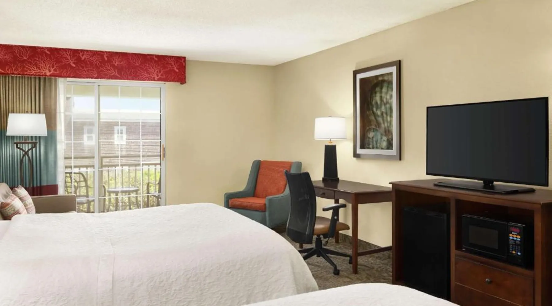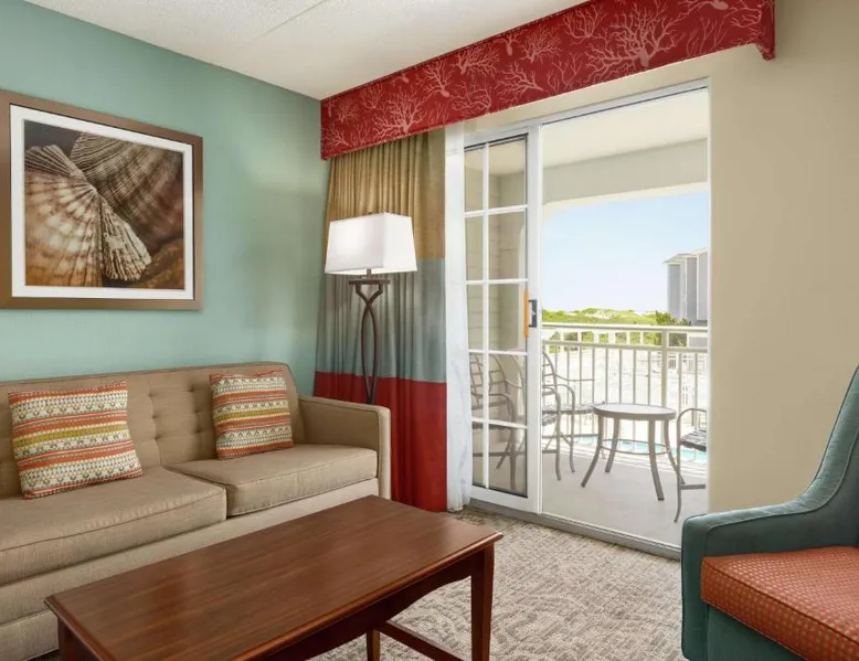 Offering an outdoor pool and an indoor pool, this beachfront hotel is located in Corolla, North Carolina. Free WiFi access and a daily continental breakfast are provided. Each room at Hampton Inn and Suites Outer Banks Corolla will provide guests with a patio or balcony. A microwave, refrigerator, and cable TV are also included. Extras include a desk and hairdryer. Select rooms offer an ocean view. A hot tub is on site at Hampton Inn and Suites Corolla. Other facilities offered at the property include meeting facilities and laundry facilities. An array of activities can be enjoyed on site or in the surroundings, including fishing. The property offers free parking. Kitty Hawk is 16 mi from this hotel. This suite features a sofa bed and private balcony with views of the ocean. A microwave, small refrigerator and cable TV are also available.