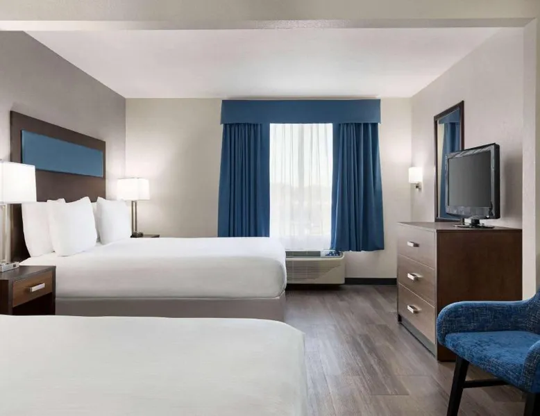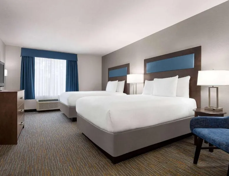 Nestled in a quiet coastal town, our Wingate by Wyndham Southport hotel is a perfect place to relax. Located minutes from Brunswick County Beaches, and The Cape Fear Riverfront where you can spend the day relaxing watching the boats go by, shopping and enjoying the local restaurants. Our Carolina setting near Fort Fisher State Recreation Area and ferry landing offers modern convenience and homestyle comfort designed to make your stay easy. The North Carolina Maritime Museum is 1.4 miles away. South Harbor Golf Links is just 3.8 miles from this hotel. The Bald Head Island Lighthouse is around a 15-minute drive away. Free Wi-Fi, a flat-screen TV, microwave, fridge and coffee maker are provided in all rooms at the Wingate by Wyndham. Each room is decorated in cool colors and includes a spacious work desk. Guests can enjoy free access to the on-site fitness room hour. A continental breakfast is served each morning at the Southport Wingate by Wyndham. This room features a microwave, refrigerator, and cable TV.