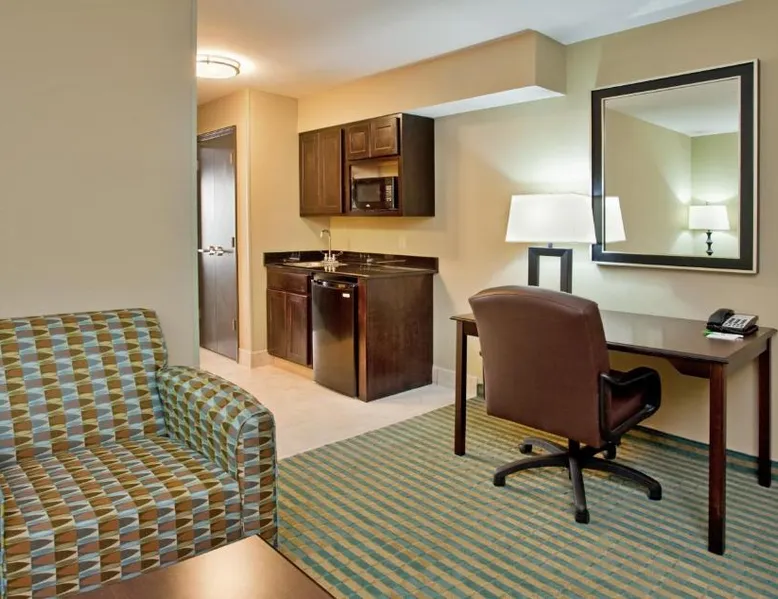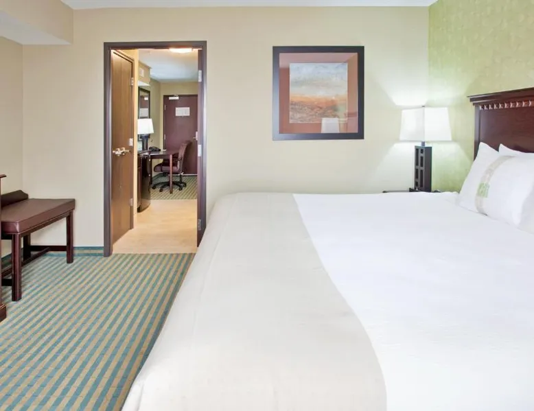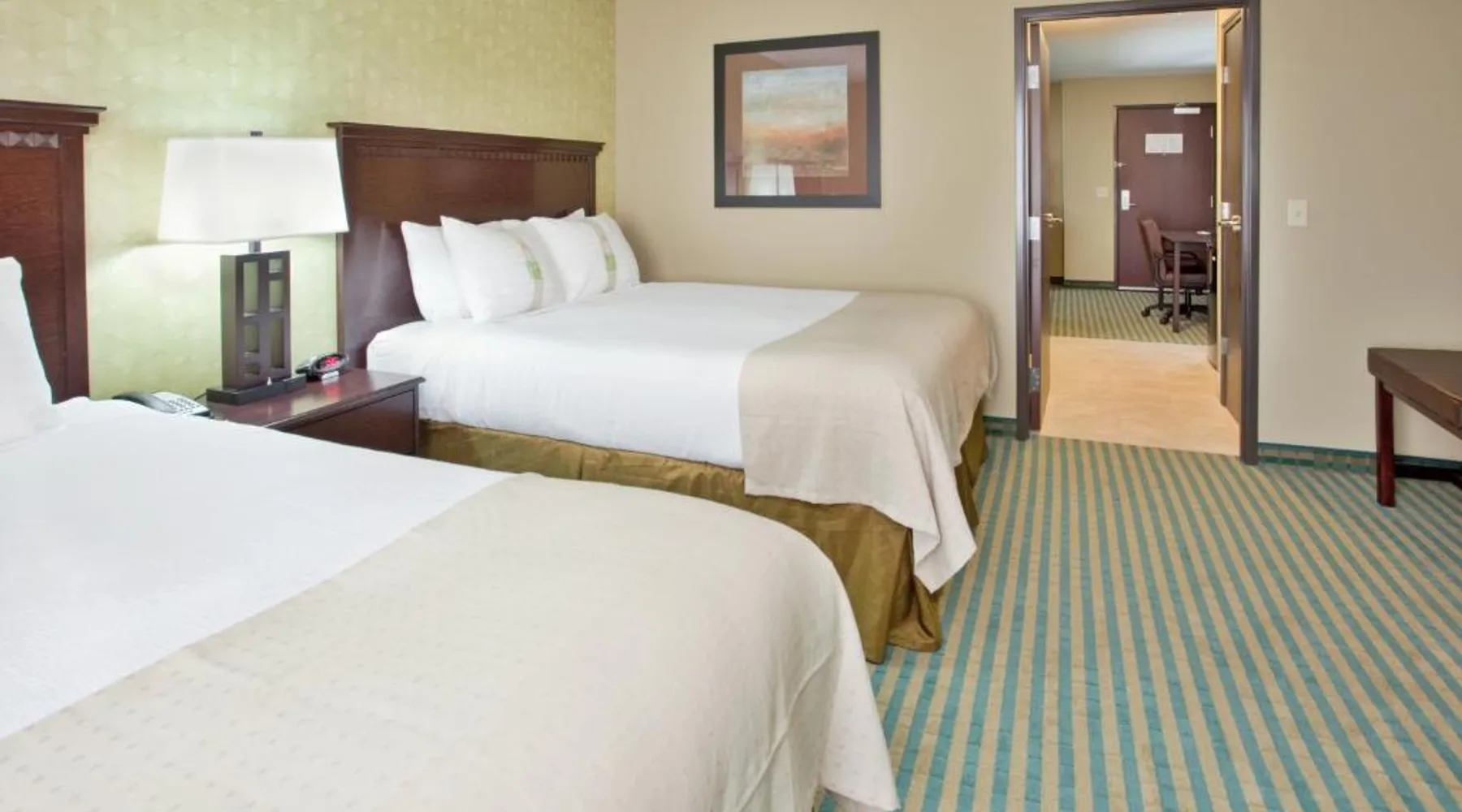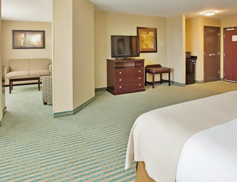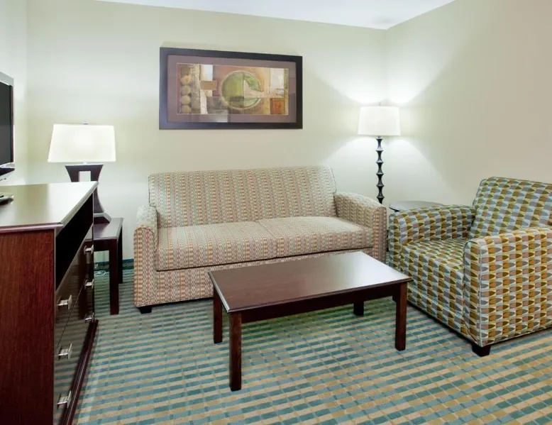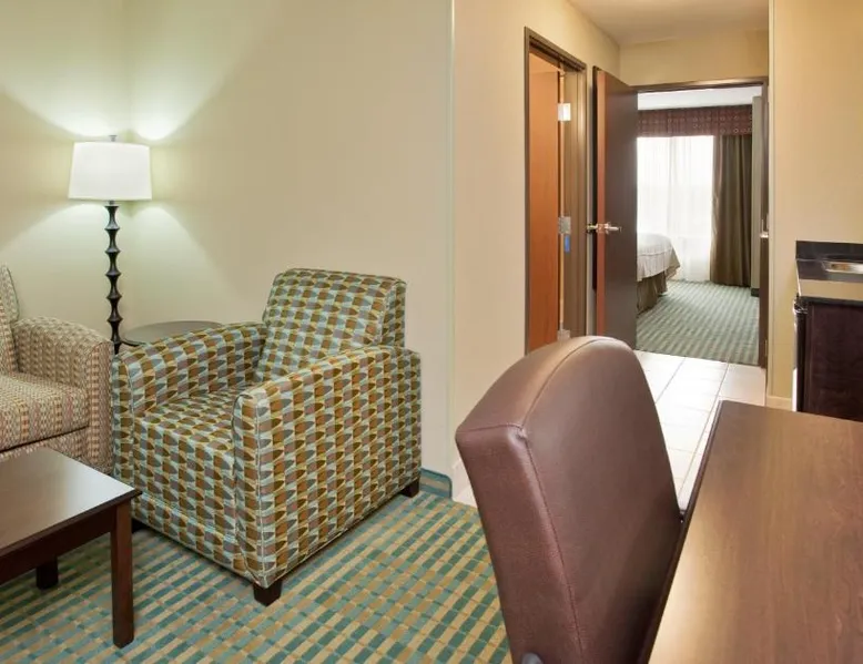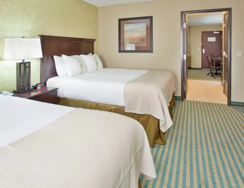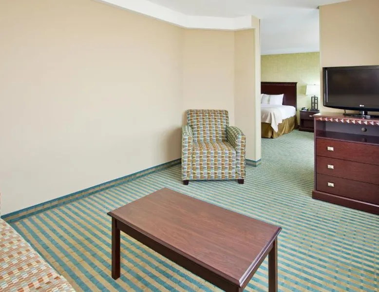 Comfortable Accommodations: Holiday Inn Columbia East by IHG in Columbia offers comfortable rooms with air-conditioning, free WiFi, and modern amenities. Each room includes a work desk, flat-screen TV, and soundproofing for a pleasant stay. Dining and Leisure: Guests can enjoy a family-friendly restaurant serving American cuisine with vegetarian and gluten-free options. The modern bar offers a variety of cocktails in a relaxed setting. Additional facilities include a fitness center, sun terrace, indoor swimming pool, and free airport shuttle service. Convenient Location: Located 14 mi from Columbia Regional Airport and 6.8 mi from Faurot Field, the hotel provides easy access to local attractions. Guests appreciate the convenient location, room cleanliness, and comfortable beds. The spacious suite features air conditioning, soundproof walls, a tea and coffee maker, a seating area and a flat-screen TV with cable channels. The unit has 2 beds.