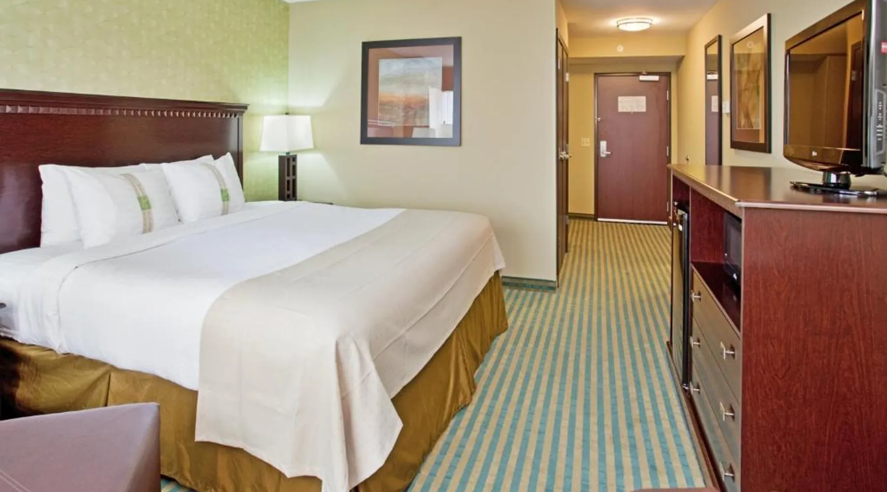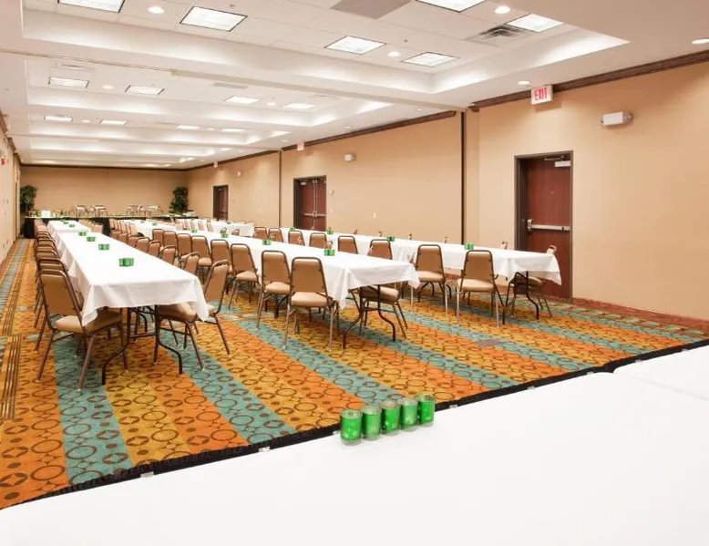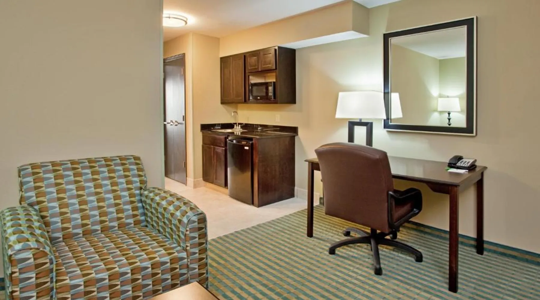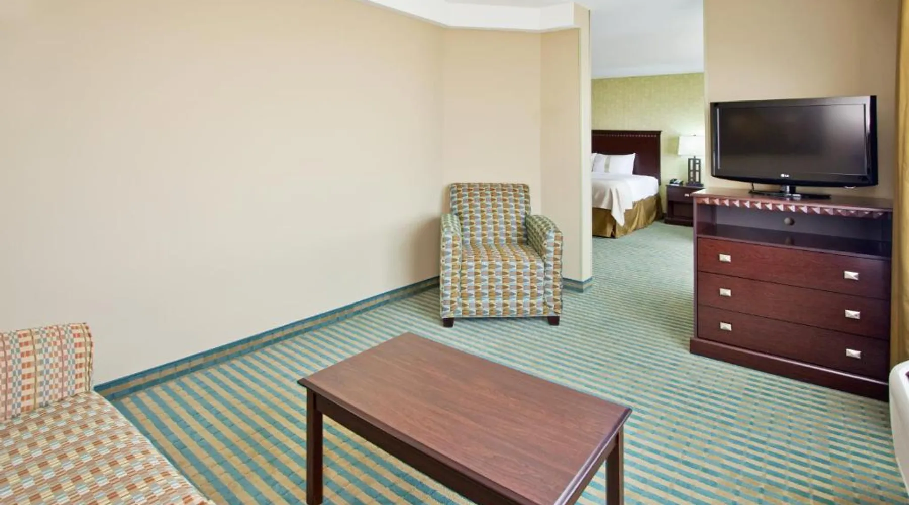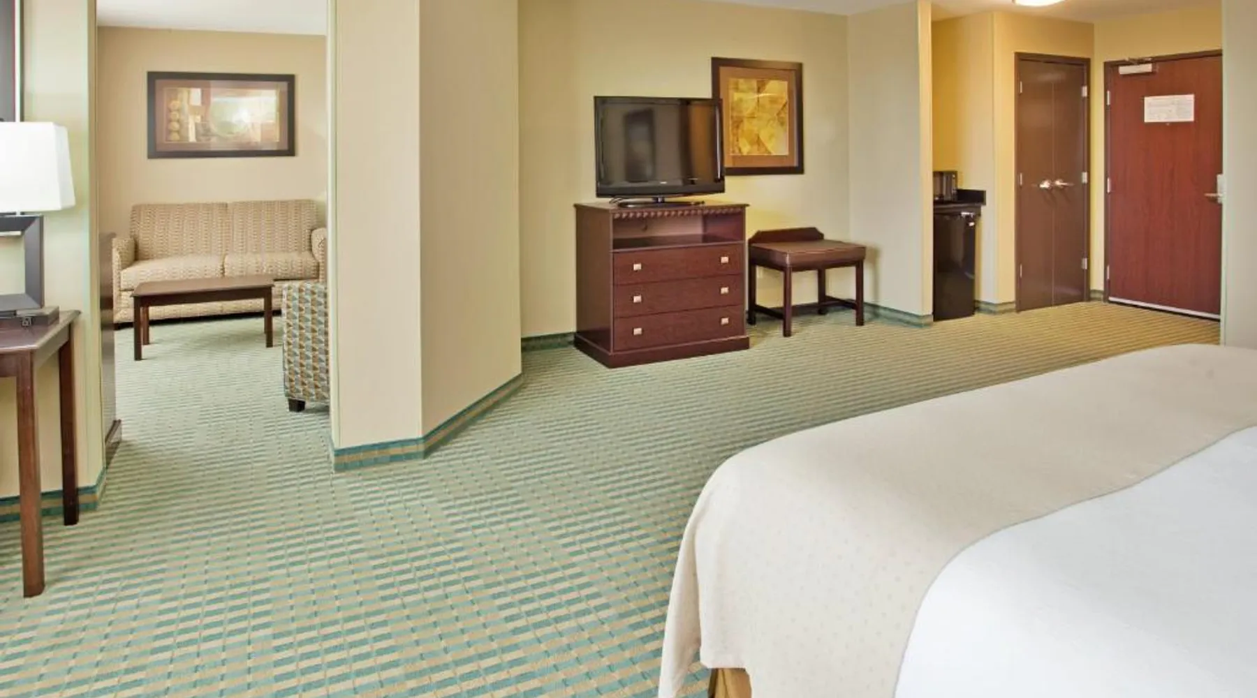 Comfortable Accommodations: Holiday Inn Columbia East by IHG in Columbia offers comfortable rooms with air-conditioning, free WiFi, and modern amenities. Each room includes a work desk, flat-screen TV, and soundproofing for a pleasant stay. Dining and Leisure: Guests can enjoy a family-friendly restaurant serving American cuisine with vegetarian and gluten-free options. The modern bar offers a variety of cocktails in a relaxed setting. Additional facilities include a fitness center, sun terrace, indoor swimming pool, and free airport shuttle service. Convenient Location: Located 14 mi from Columbia Regional Airport and 6.8 mi from Faurot Field, the hotel provides easy access to local attractions. Guests appreciate the convenient location, room cleanliness, and comfortable beds. The spacious suite features air conditioning, soundproof walls, a tea and coffee maker, a seating area and a flat-screen TV with cable channels. The unit has 2 beds.