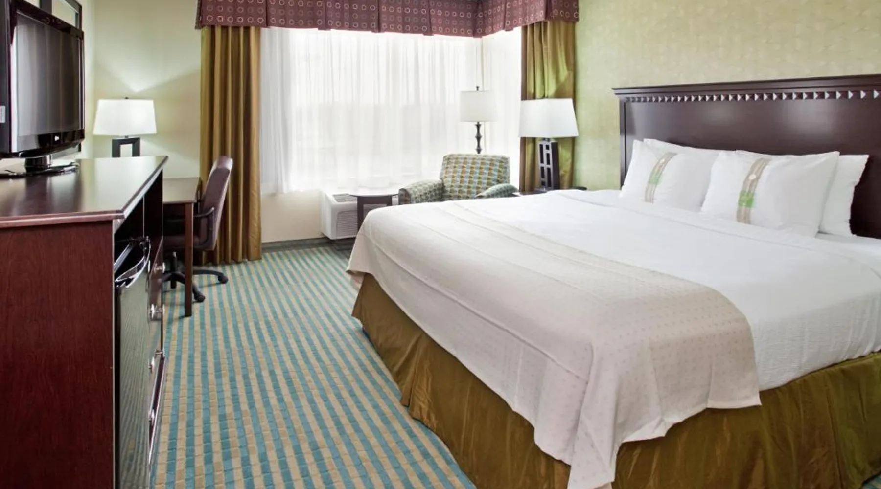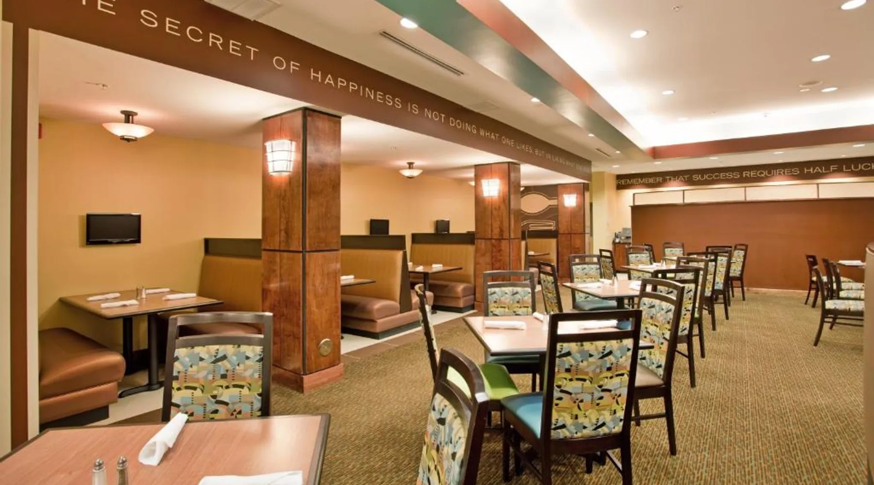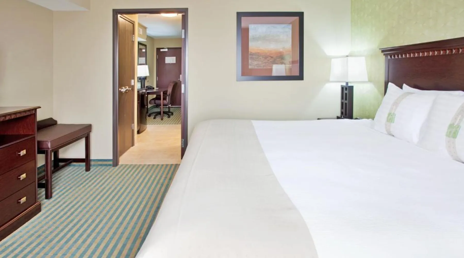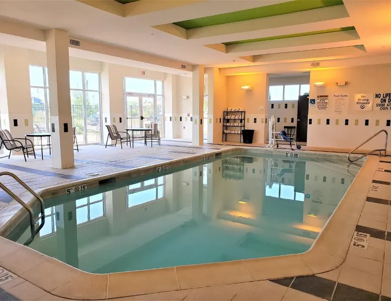 Comfortable Accommodations: Holiday Inn Columbia East by IHG in Columbia offers comfortable rooms with air-conditioning, free WiFi, and modern amenities. Each room includes a work desk, flat-screen TV, and soundproofing for a pleasant stay. Dining and Leisure: Guests can enjoy a family-friendly restaurant serving American cuisine with vegetarian and gluten-free options. The modern bar offers a variety of cocktails in a relaxed setting. Additional facilities include a fitness center, sun terrace, indoor swimming pool, and free airport shuttle service. Convenient Location: Located 14 mi from Columbia Regional Airport and 6.8 mi from Faurot Field, the hotel provides easy access to local attractions. Guests appreciate the convenient location, room cleanliness, and comfortable beds. The spacious suite features air conditioning, soundproof walls, a tea and coffee maker, a seating area and a flat-screen TV with cable channels. The unit has 2 beds.