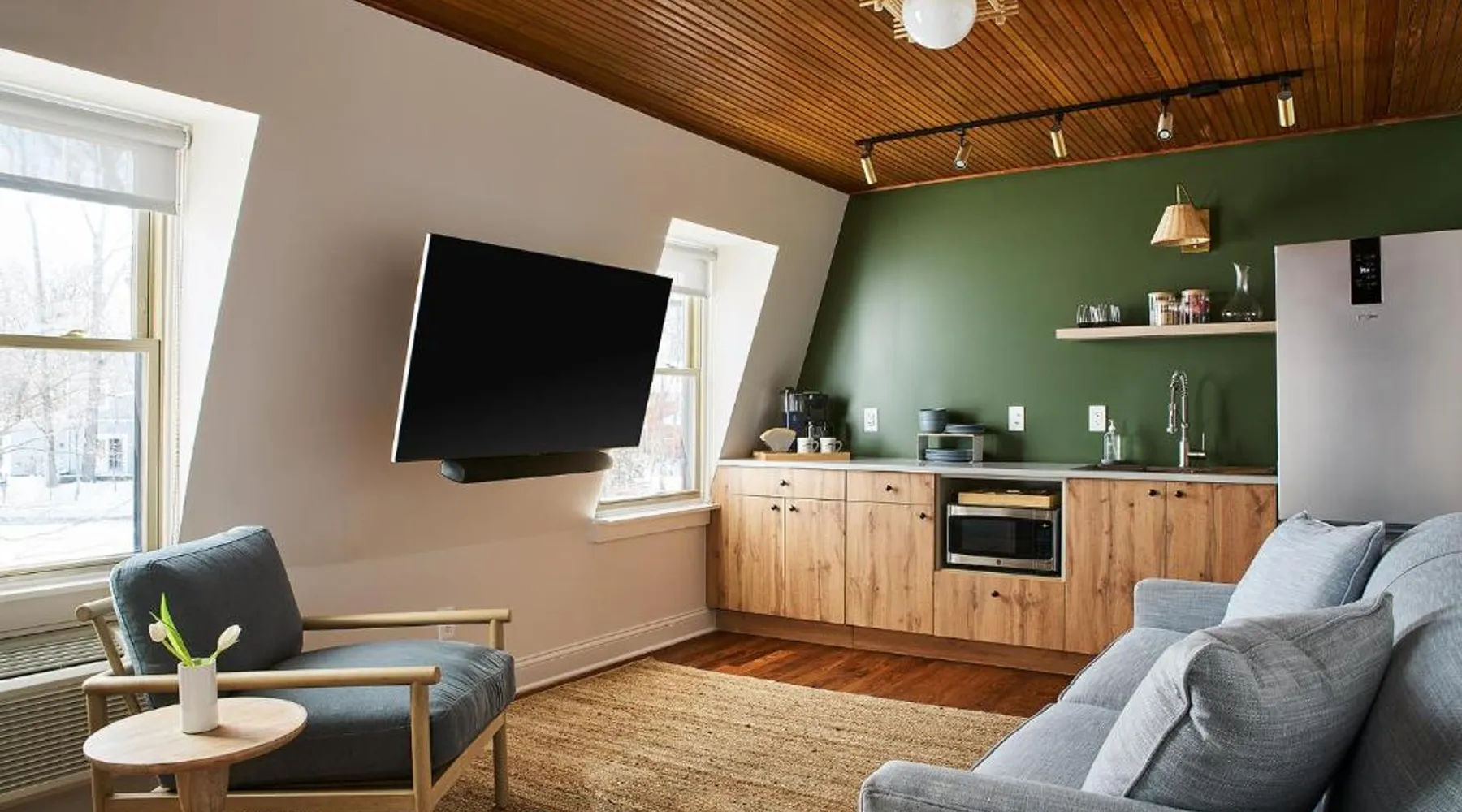 Elegant Accommodations: The Neighborhood Hotel Grand Beach in New Buffalo offers 5-star comfort with family rooms featuring balconies and private bathrooms. Each room includes air-conditioning, a washing machine, and a TV. Exceptional Facilities: Guests can relax on the terrace or take a dip in the seasonal outdoor swimming pool. Free WiFi is available throughout the property, ensuring connectivity. Comprehensive Services: The hotel provides private check-in and check-out, a lounge, outdoor fireplace, shared kitchen, indoor and outdoor play areas, laundry service, outdoor seating, picnic area, games room, full-day security, and meeting rooms. Convenient Location: Located 39 mi from South Bend Regional Airport, the hotel offers free on-site private parking. Highly rated by guests, it offers a serene environment. Providing air conditioning, a washing machine and heating, this single room includes a private bathroom. This single room provides a flat-screen TV.