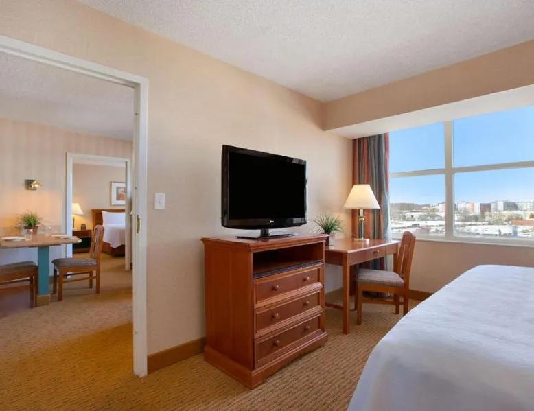Comfortable Accommodations: Homewood Suites by Hilton Falls Church in Merrifield offers air-conditioned rooms with kitchen facilities, including a refrigerator, microwave, stovetop, and dishwasher. Each room features a work desk, sofa bed, and free toiletries. Exceptional Facilities: Guests can enjoy an indoor swimming pool, fitness room, hot tub, and outdoor seating area. Additional amenities include a minimarket, daily housekeeping service, and free on-site parking. Delicious Breakfast: A complimentary American buffet breakfast is served daily, highly appreciated by guests. Prime Location: Located 12 mi from Ronald Reagan Washington National Airport, the hotel is near attractions such as the Air Force Memorial (9.9 mi) and The Pentagon (11 mi). Free WiFi is available throughout the property. The suite provides air conditioning. The unit offers 2 beds.