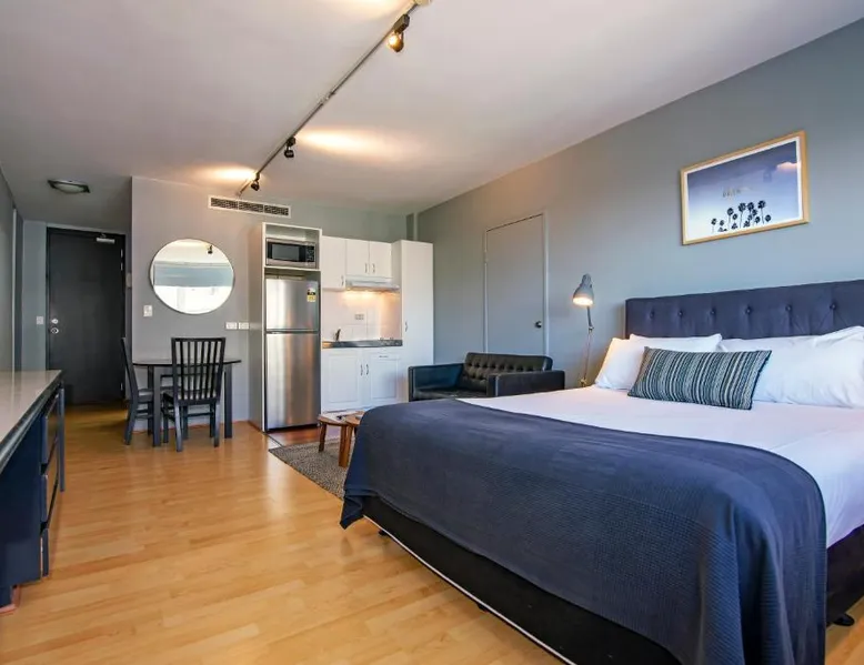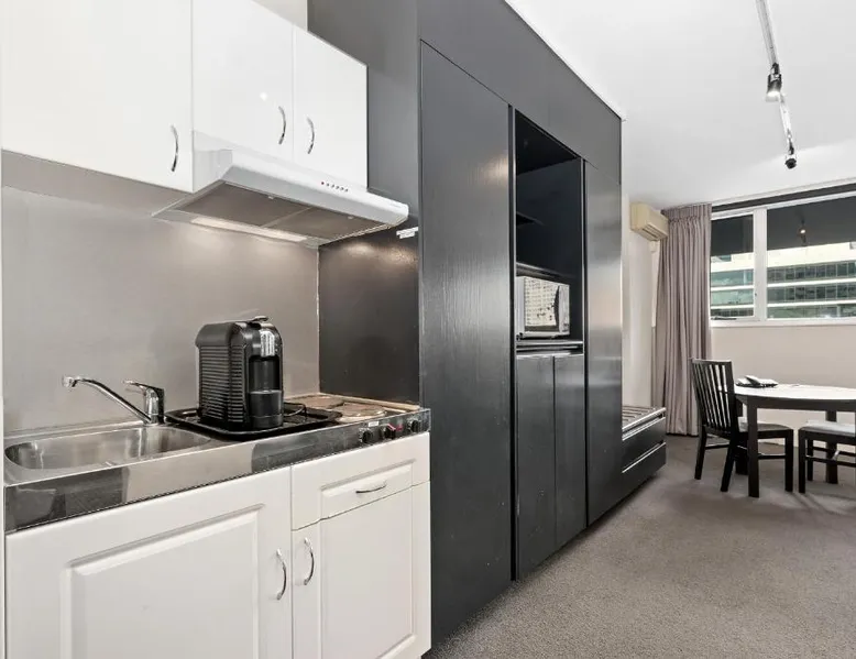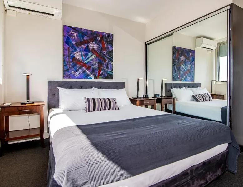 The Ridge Apartment Hotel offers boutique accommodations with diverse room types and styles. There are studio and studio executive rooms or one bedroom apartments. Set in a great location in the heart of the city, Ridge Apartment Hotel is just a 5-minute walk from Queen Street, Roma Street Train Station, and the Central Station. This 2 bedroom, 2 bathroom apartment features a lounge room, private bathroom, laundry facilities and a kitchen with an oven, dishwasher and Expressi coffee machine.