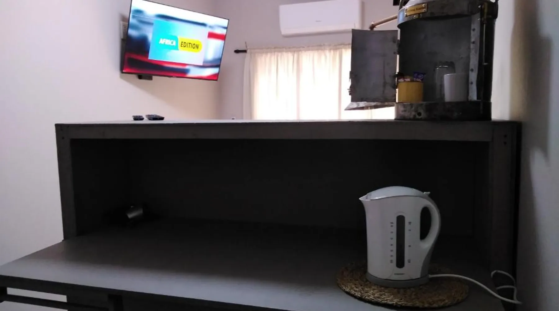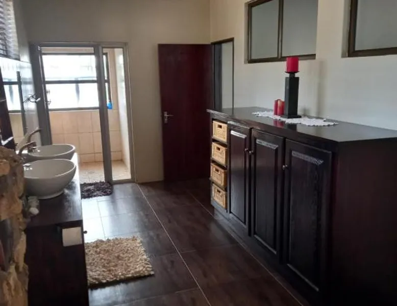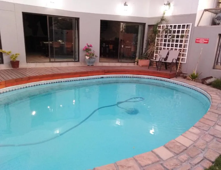 Elegant Accommodations: Die Windpomp Guest house in Gobabis offers a swimming pool with a view, sun terrace, and lush garden. Guests can relax at the bar or enjoy free WiFi throughout the property. Comfortable Amenities: The guest house features air-conditioning, private bathrooms, and modern amenities such as a refrigerator, TV, and free toiletries. Additional facilities include a terrace, patio, and outdoor seating area. Convenient Location: Located less than 0.6 mi from Gobabis Railway Station and 1.9 mi from Gobabis Golf Club, the property provides easy access to local attractions. Free on-site private parking is available for guests. Exceptional Service: Highly rated for its attentive staff and excellent service support, Die Windpomp Guest house offers a delicious breakfast and full-day security. The spacious double room offers air conditioning, a tea and coffee maker, as well as a private bathroom featuring a bath and a shower. The double room features a seating area, a tiled floor, heating and a flat-screen TV with satellite channels. The unit offers 1 bed.