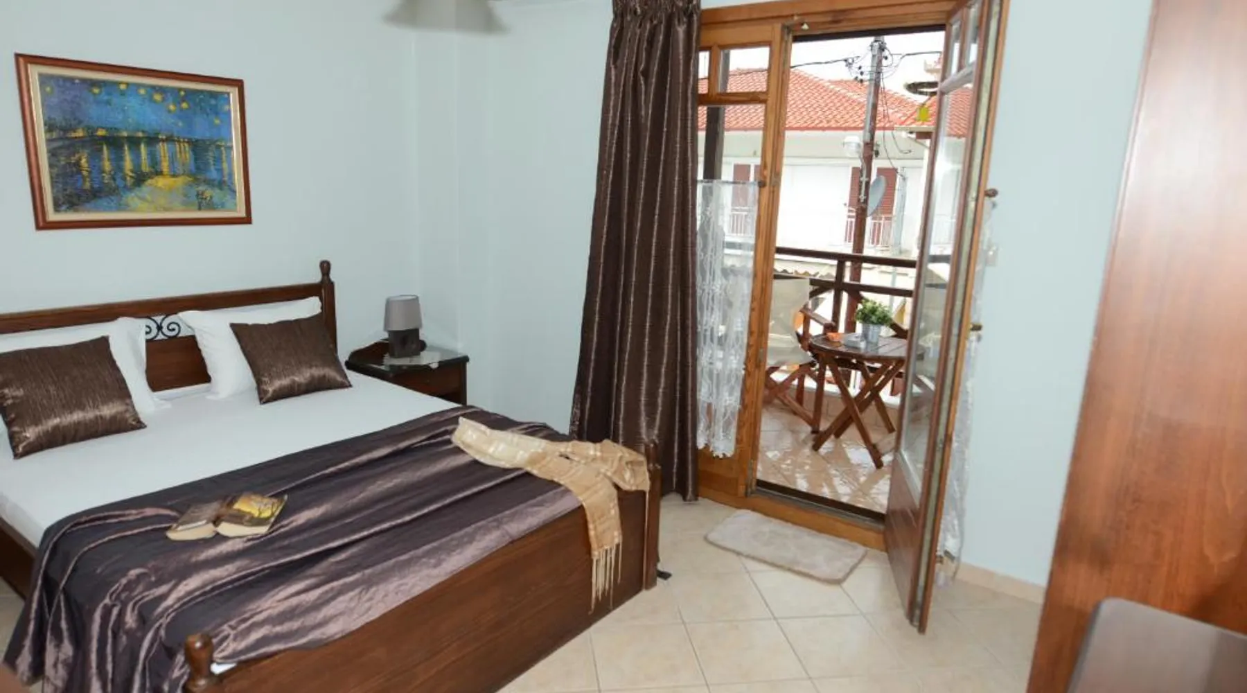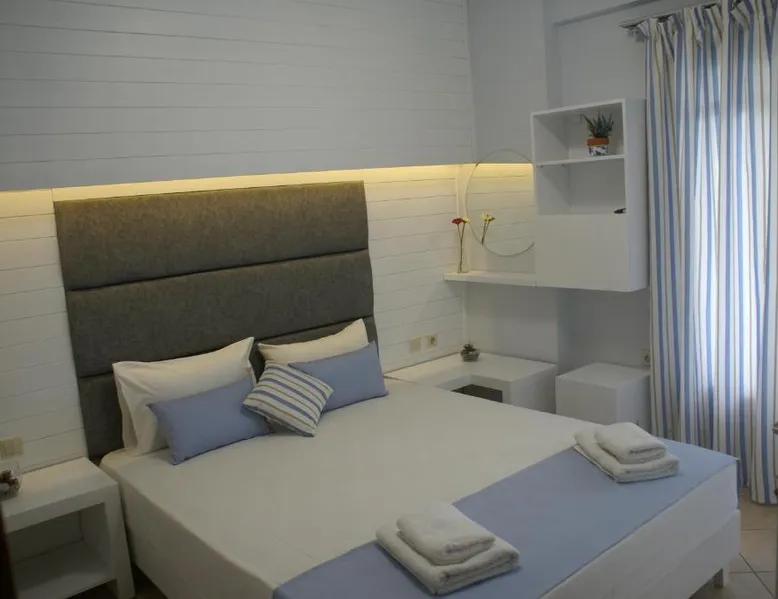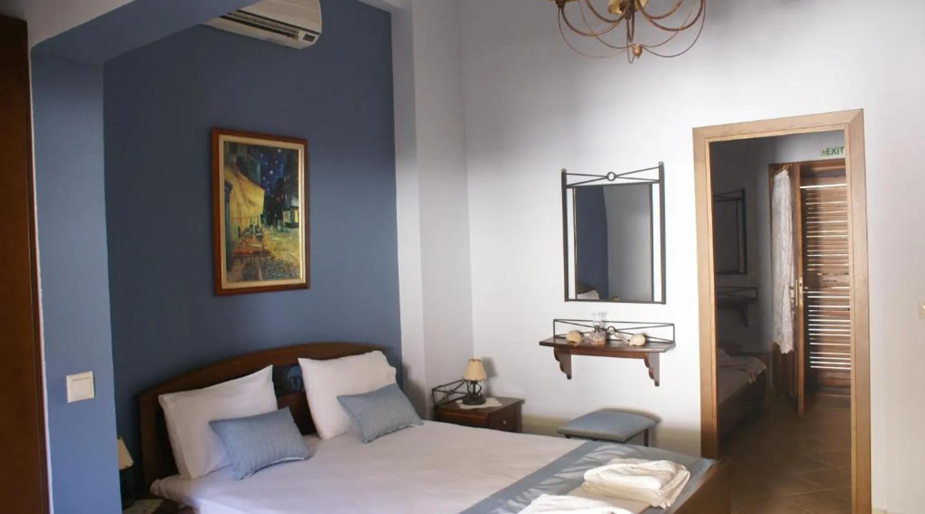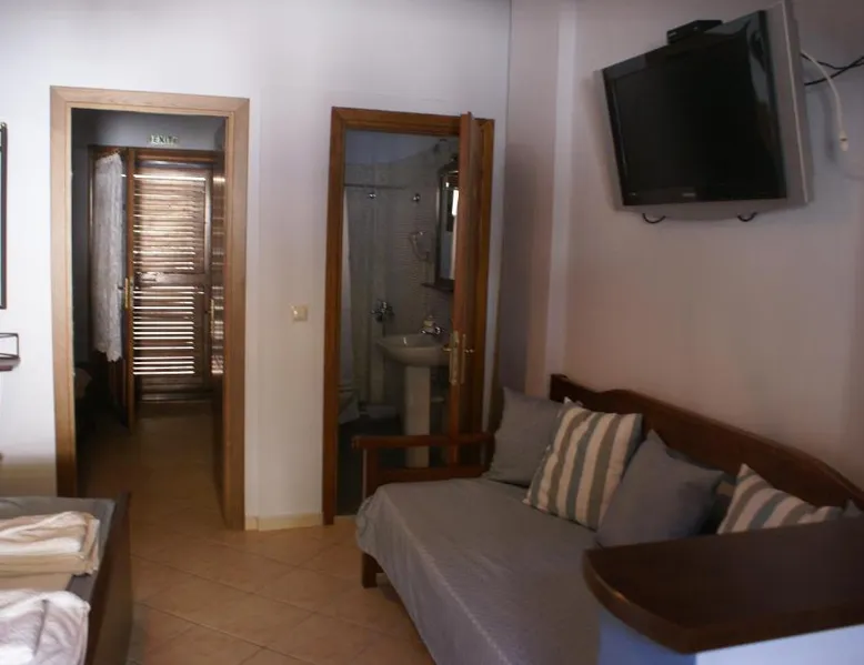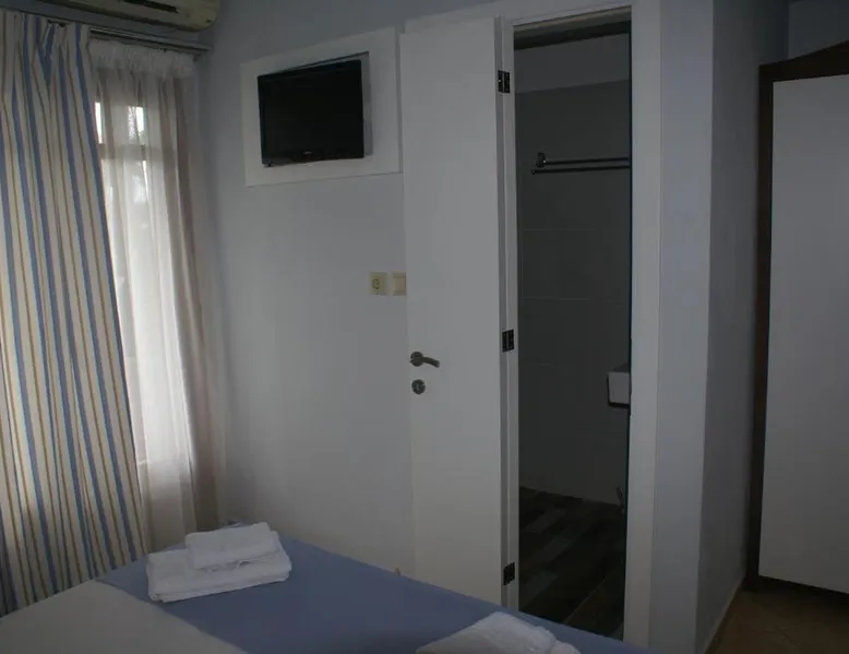 Comfortable Accommodations: Nostos Rooms Ammouliani in Amolianí offers family rooms with air-conditioning, balconies, and private bathrooms. Each room includes a washing machine, TV, and soundproofing for a pleasant stay. Essential Facilities: Guests enjoy free WiFi, a terrace, and free on-site parking. Additional amenities include a kitchenette, barbecue, and outdoor dining area, perfect for relaxation and entertainment. Prime Location: Located 70 mi from Thessaloniki Airport, the guest house is an 18-minute walk from Megali Ammos Beach. Nearby attractions include a variety of beaches and scenic views. This air-conditioned double room has a private bathroom, a washing machine, a private entrance as well as a balcony. The unit has 2 beds.