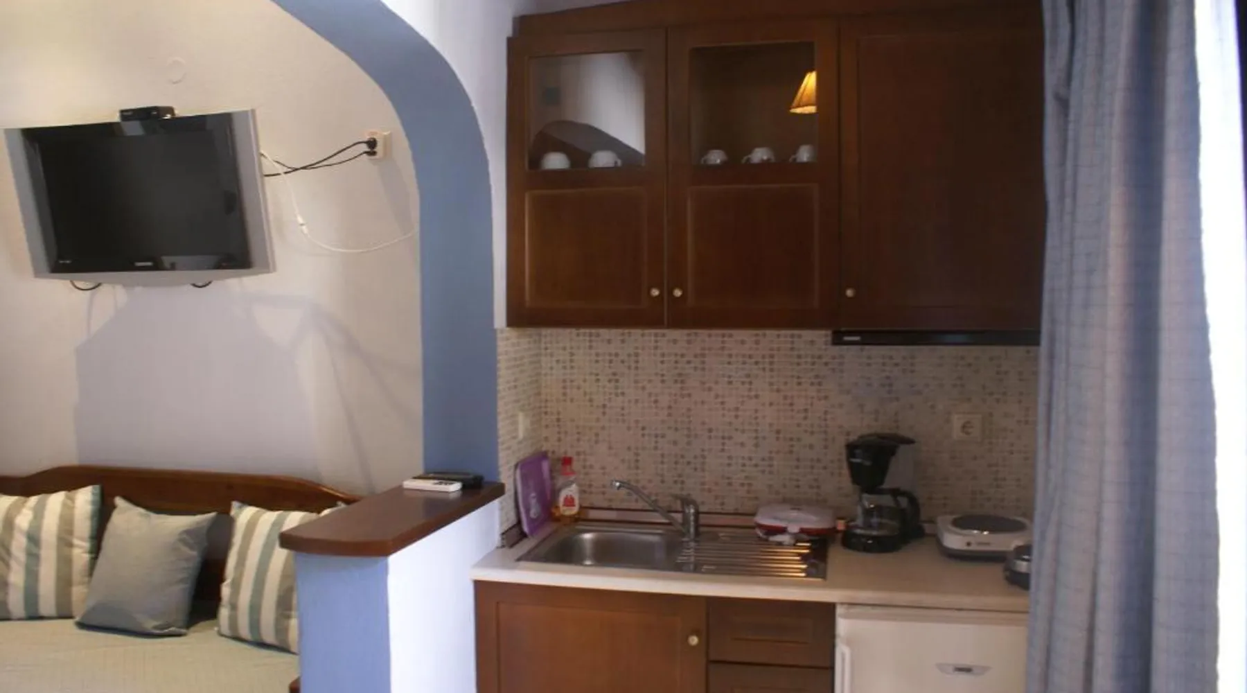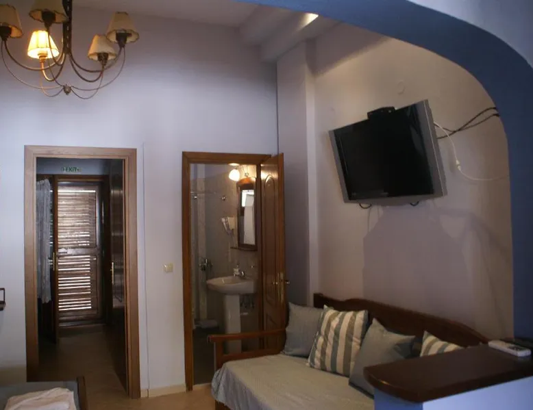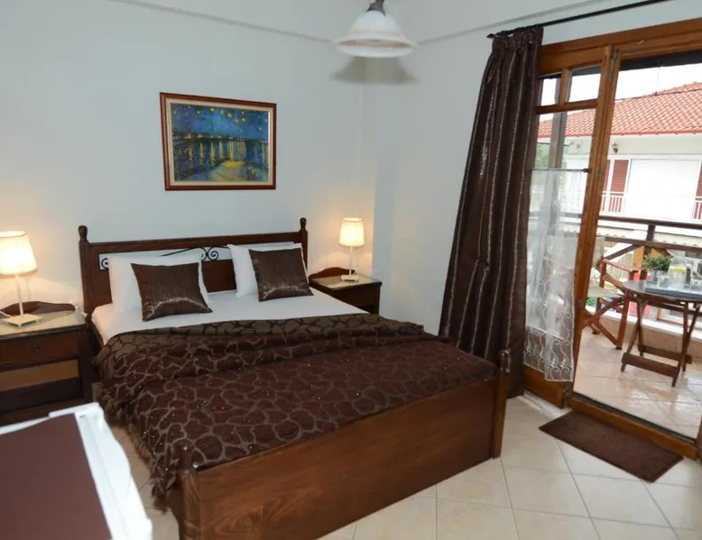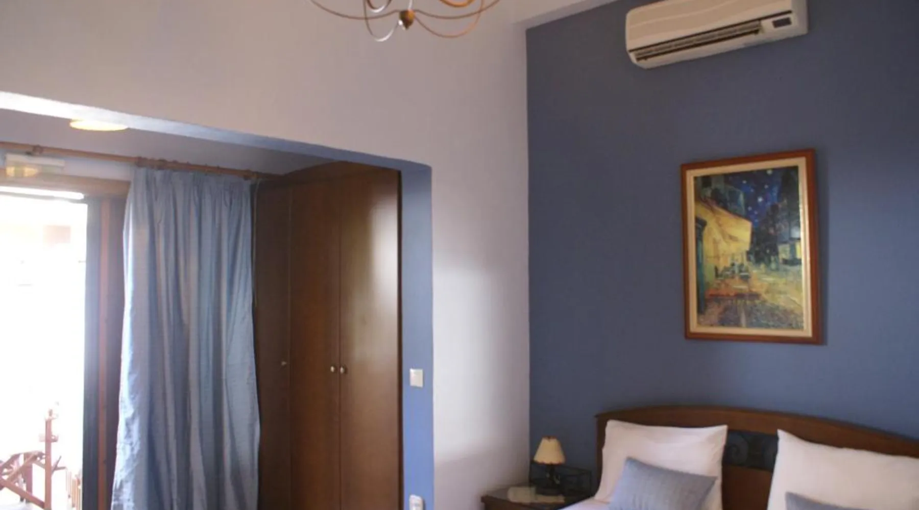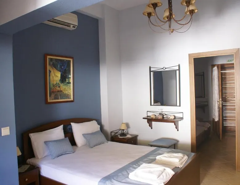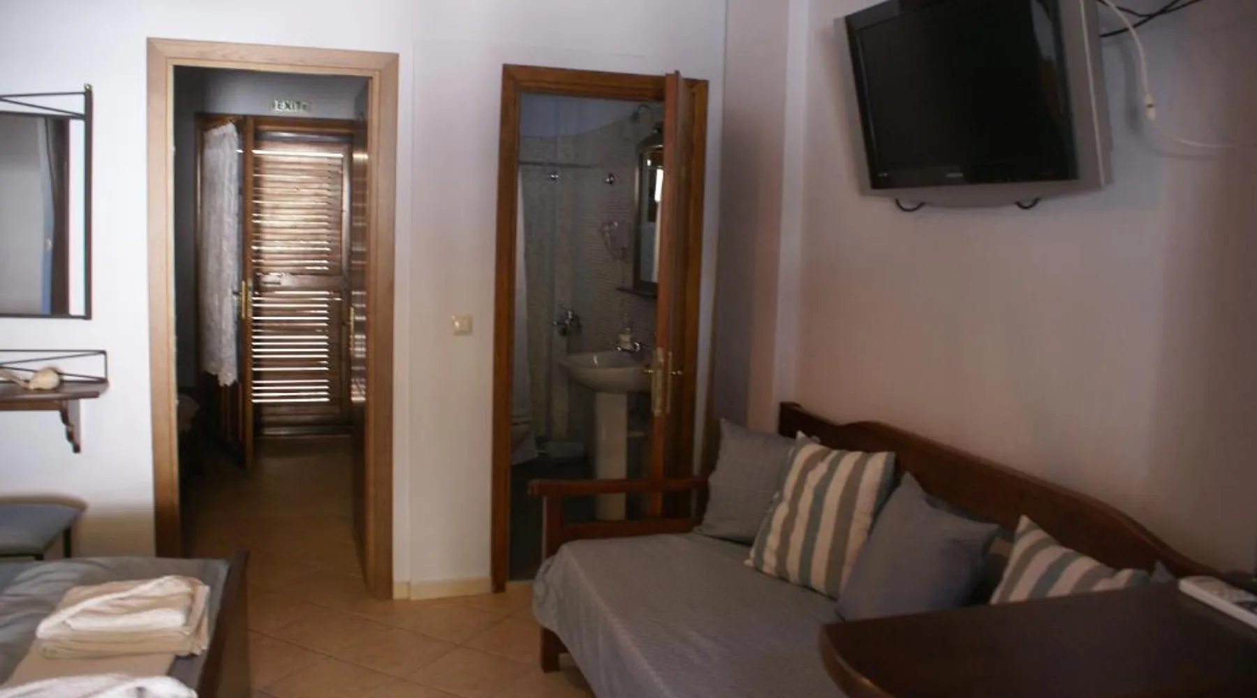Comfortable Accommodations: Nostos Rooms Ammouliani in Amolianí offers family rooms with air-conditioning, balconies, and private bathrooms. Each room includes a washing machine, TV, and soundproofing for a pleasant stay. Essential Facilities: Guests enjoy free WiFi, a terrace, and free on-site parking. Additional amenities include a kitchenette, barbecue, and outdoor dining area, perfect for relaxation and entertainment. Prime Location: Located 70 mi from Thessaloniki Airport, the guest house is an 18-minute walk from Megali Ammos Beach. Nearby attractions include a variety of beaches and scenic views. This air-conditioned double room has a private bathroom, a washing machine, a private entrance as well as a balcony. The unit has 2 beds.