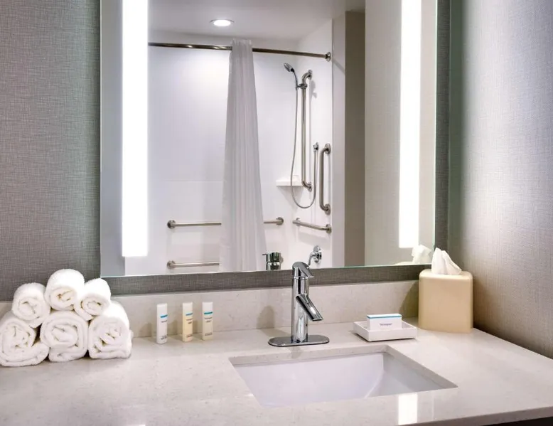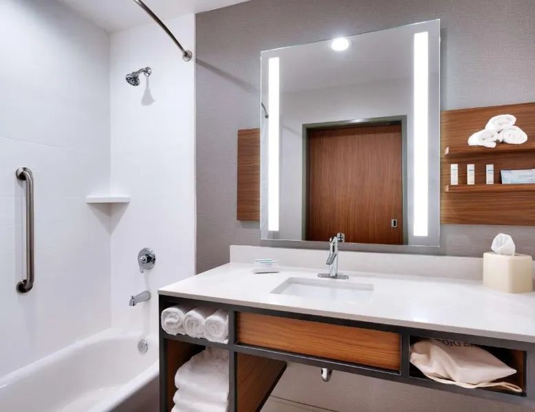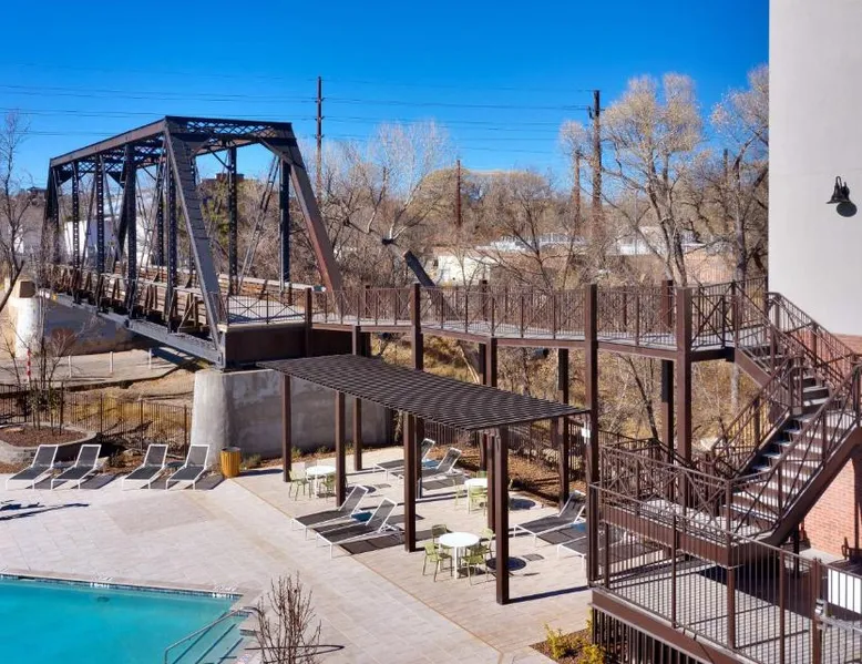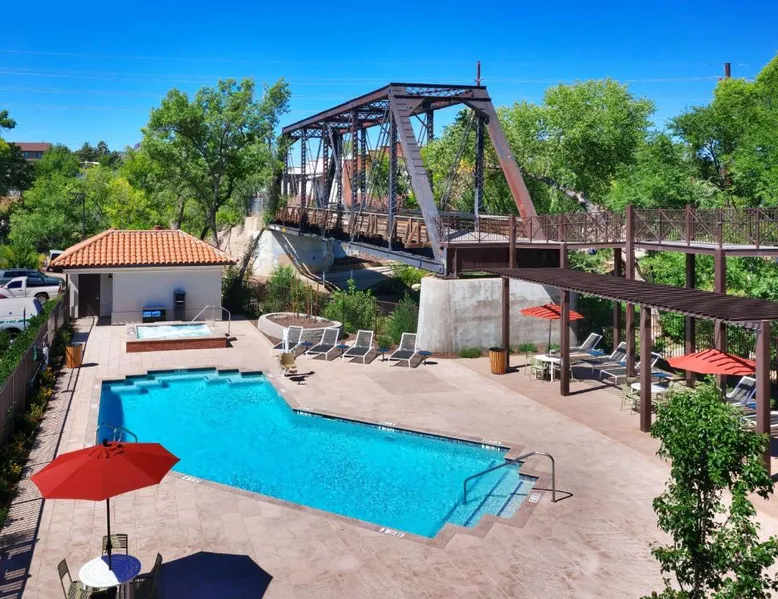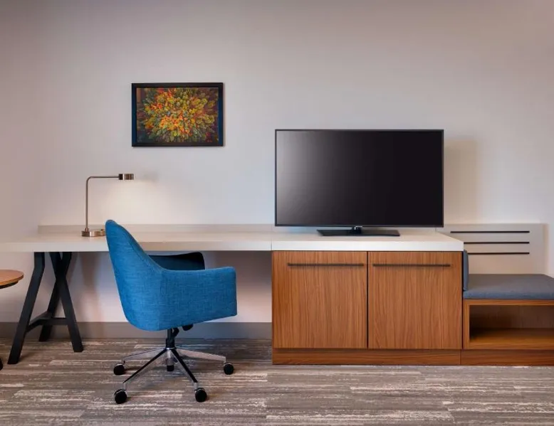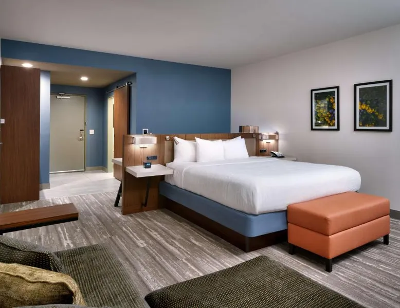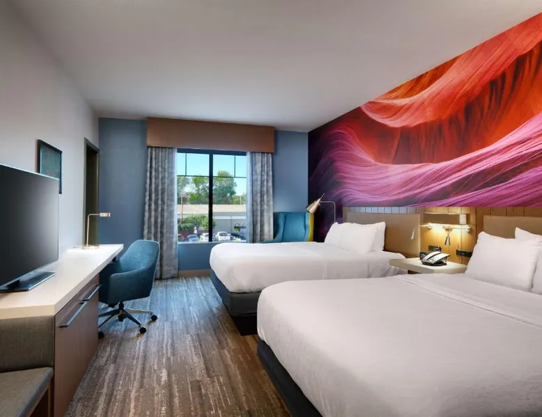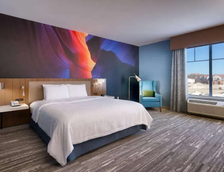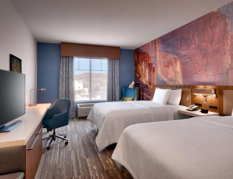 Comfortable Accommodations: Hilton Garden Inn Prescott Downtown, Az in Prescott offers family rooms with air-conditioning, balconies, and free WiFi. Each room includes a refrigerator, microwave, tea and coffee maker, and a work desk. Dining and Leisure: The hotel features a swimming pool with a view, restaurant, and bar. Guests can enjoy American cuisine at the family-friendly restaurant, offering lunch and dinner. An outdoor fireplace, fitness room, hot tub, and outdoor seating enhance the leisure experience. Convenient Location: Located 8.7 mi from Ernest A Love Field Airport, the hotel is less than 0.6 mi from Prescott College. Nearby attractions include Prescott College and the Prescott Courthouse. Free on-site private parking is available. Guest Services: The hotel offers a 24-hour front desk, minimarket, business area, and full-day security. Additional amenities include an electric vehicle charging station, outdoor play area, and picnic area. Guests appreciate the convenient location, attentive staff, and room cleanliness. The spacious double room features air conditioning, a tea and coffee maker, heating and a flat-screen TV. The unit has 1 bed.