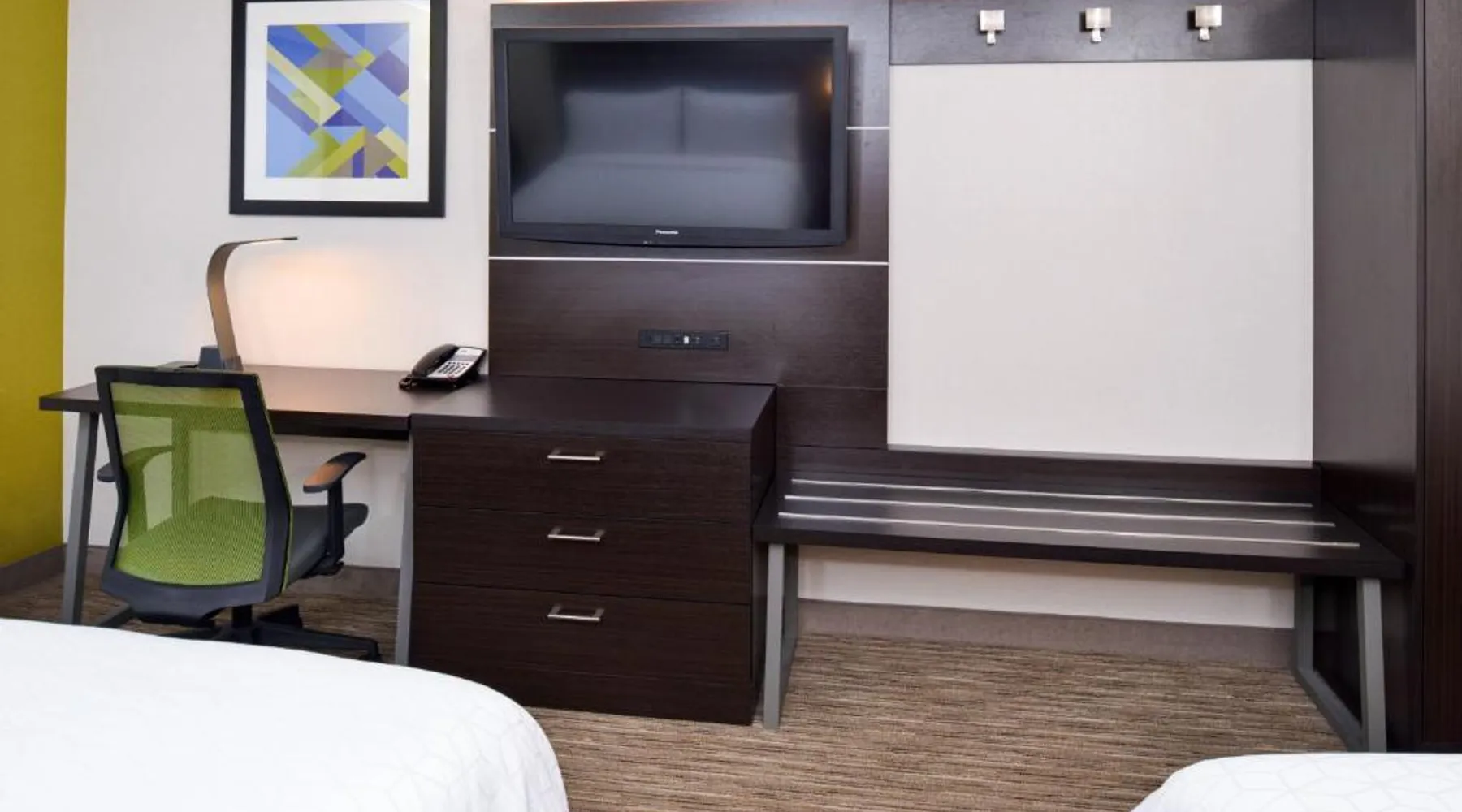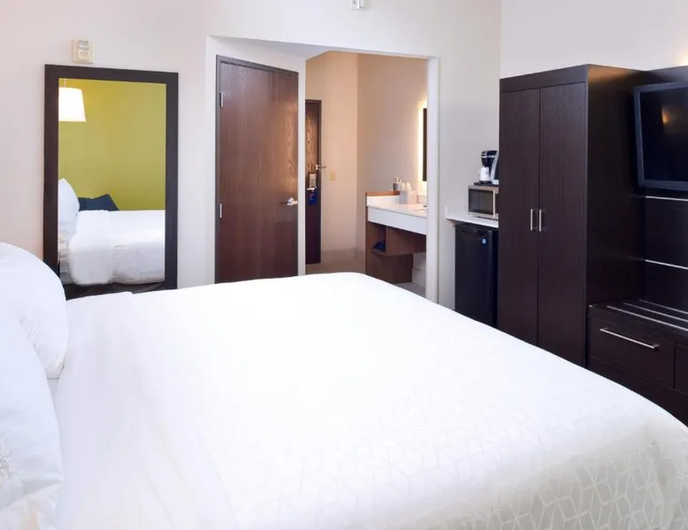 Comfortable Accommodations: Holiday Inn Express Wixom by IHG in Wixom offers family rooms with air-conditioning, private bathrooms, and free WiFi. Each room includes a work desk, TV, and complimentary toiletries. Leisure Facilities: Guests can enjoy a spa and wellness center, indoor swimming pool, fitness center, sun terrace, and hot tub. Additional amenities include a lounge, fitness room, and outdoor seating area. Dining Options: A variety of breakfast options are available, including continental, American, buffet, vegetarian, vegan, gluten-free, and Asian. Breakfast includes warm dishes, fresh pastries, pancakes, and more. Convenient Location: Located 27 mi from Detroit Metro Airport, the hotel is near attractions such as Royal Oak Music Theater (22 mi) and Ann Arbor Hands-On Museum (30 mi). Free on-site parking is provided. This air-conditioned double room includes a flat-screen TV with cable channels and a private bathroom. The unit offers 1 bed.