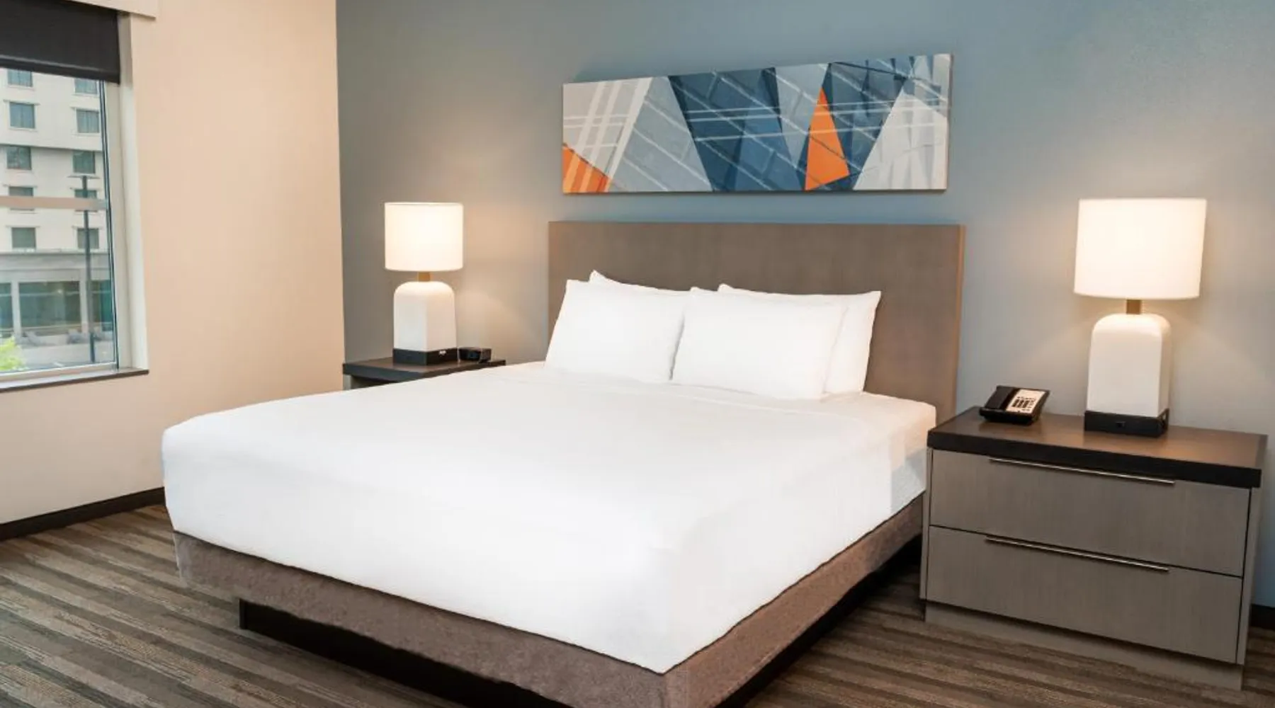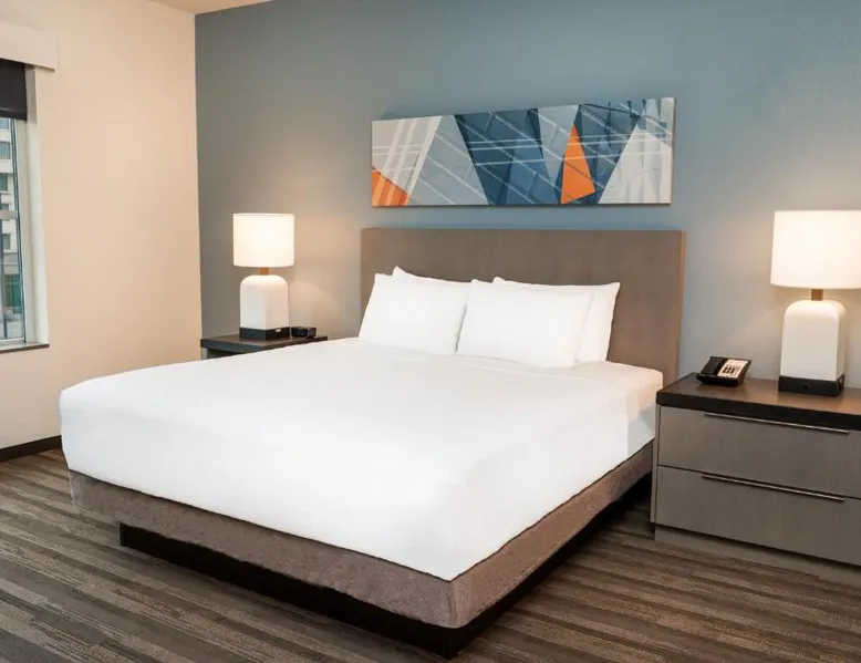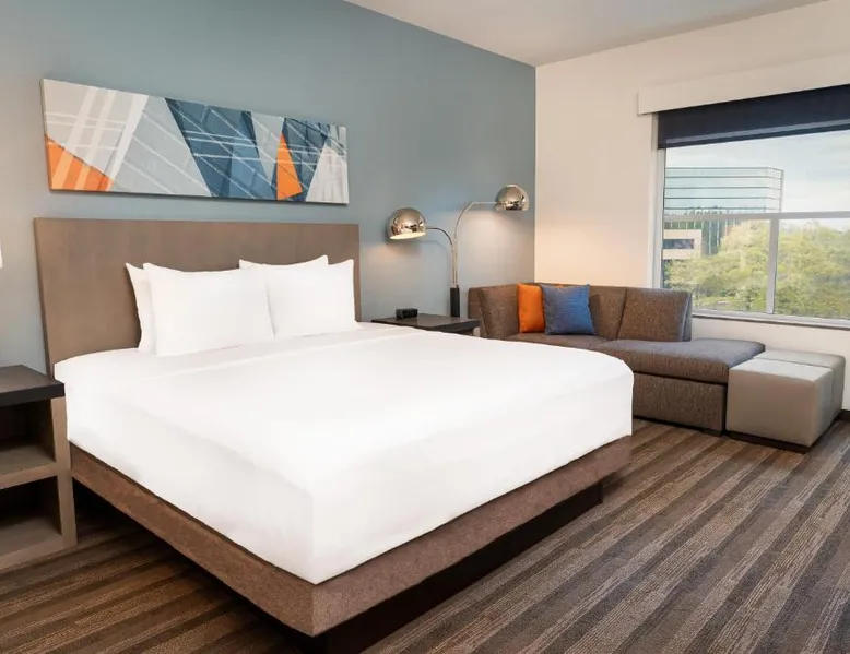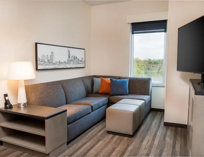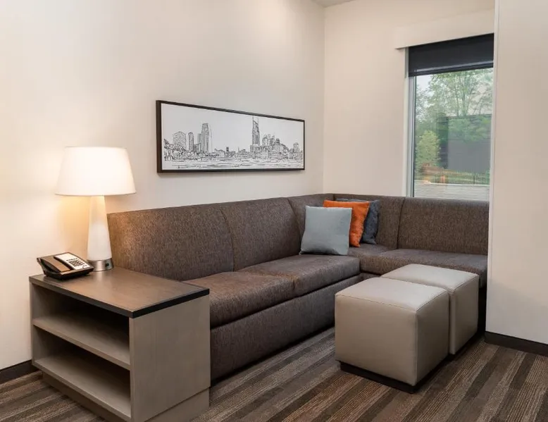 Comfortable Accommodations: Hyatt House Nashville Airport in Nashville offers rooms with air-conditioning, private bathrooms, tea and coffee makers, and free WiFi. Each room includes a TV, sofa, and modern amenities for a pleasant stay. Exceptional Facilities: Guests can enjoy a sun terrace, indoor swimming pool, and bar. Additional facilities include a fitness room, outdoor fireplace, and outdoor seating area. The hotel provides a free airport shuttle service and paid off-site private parking. Convenient Location: Located 0.6 mi from Nashville International Airport, the hotel is near attractions such as Lane Motor Museum (4.3 mi), Grand Ole Opry (5.6 mi), and Johnny Cash Museum (6.8 mi). Guests appreciate the room cleanliness, breakfast provided by the property, and attentive staff. The spacious double room features air conditioning, a tea and coffee maker, as well as a private bathroom boasting a shower and a hairdryer. This double room provides a safe deposit box and a TV with cable channels. The unit has 1 bed.