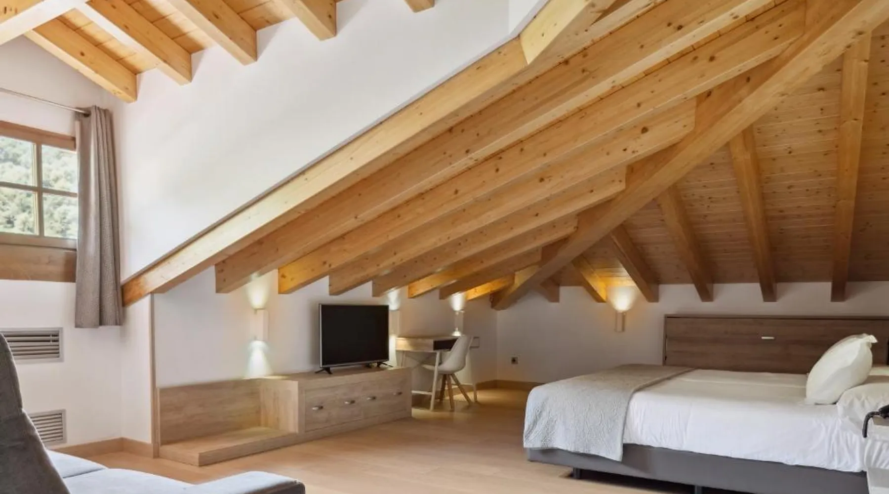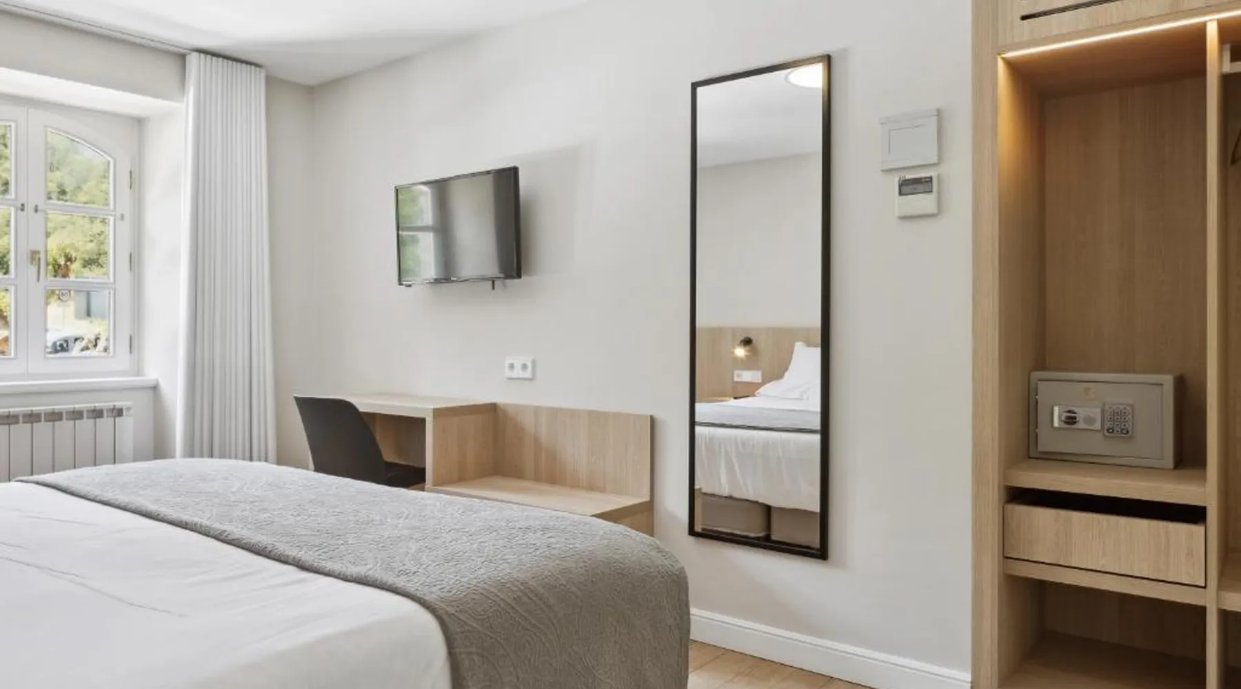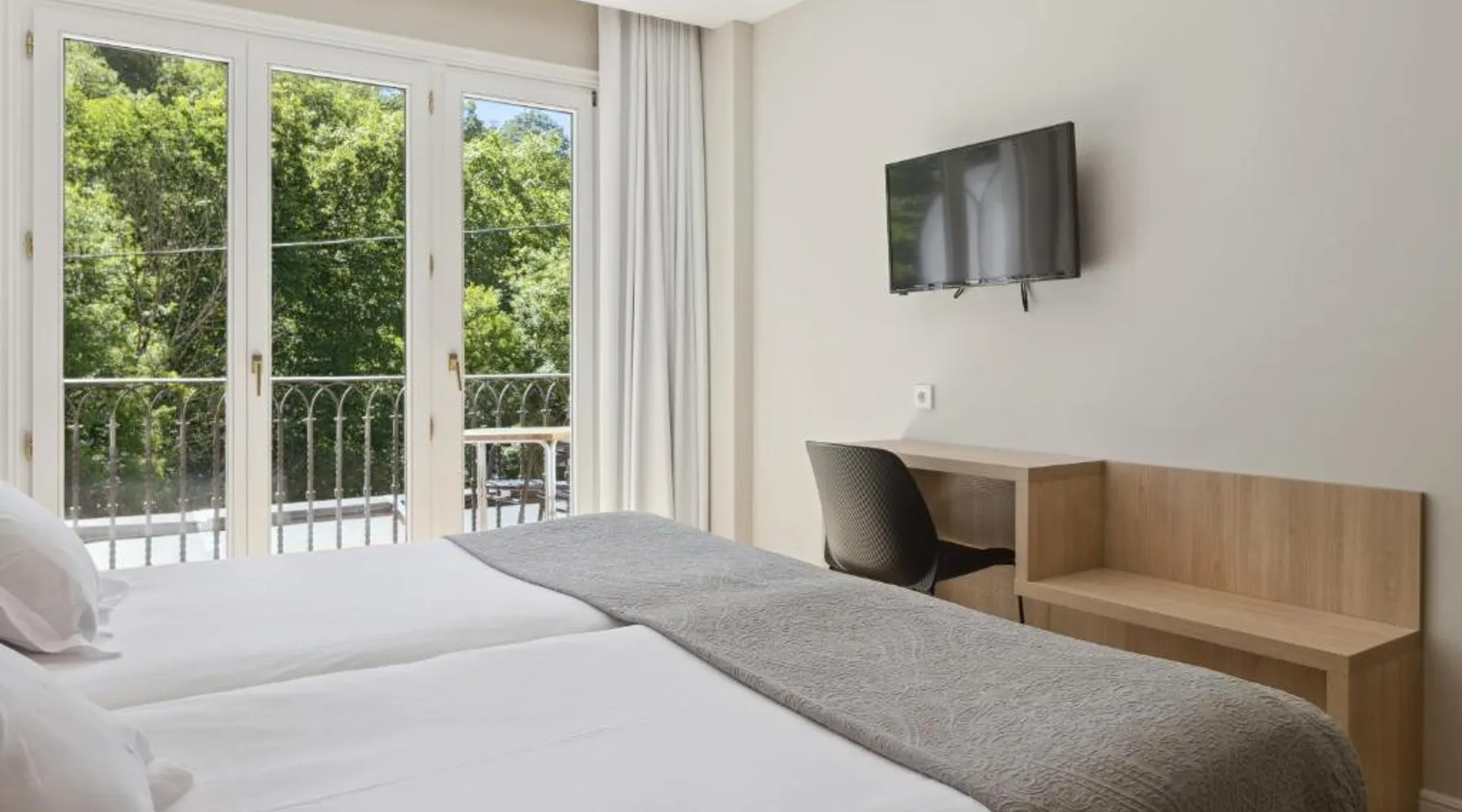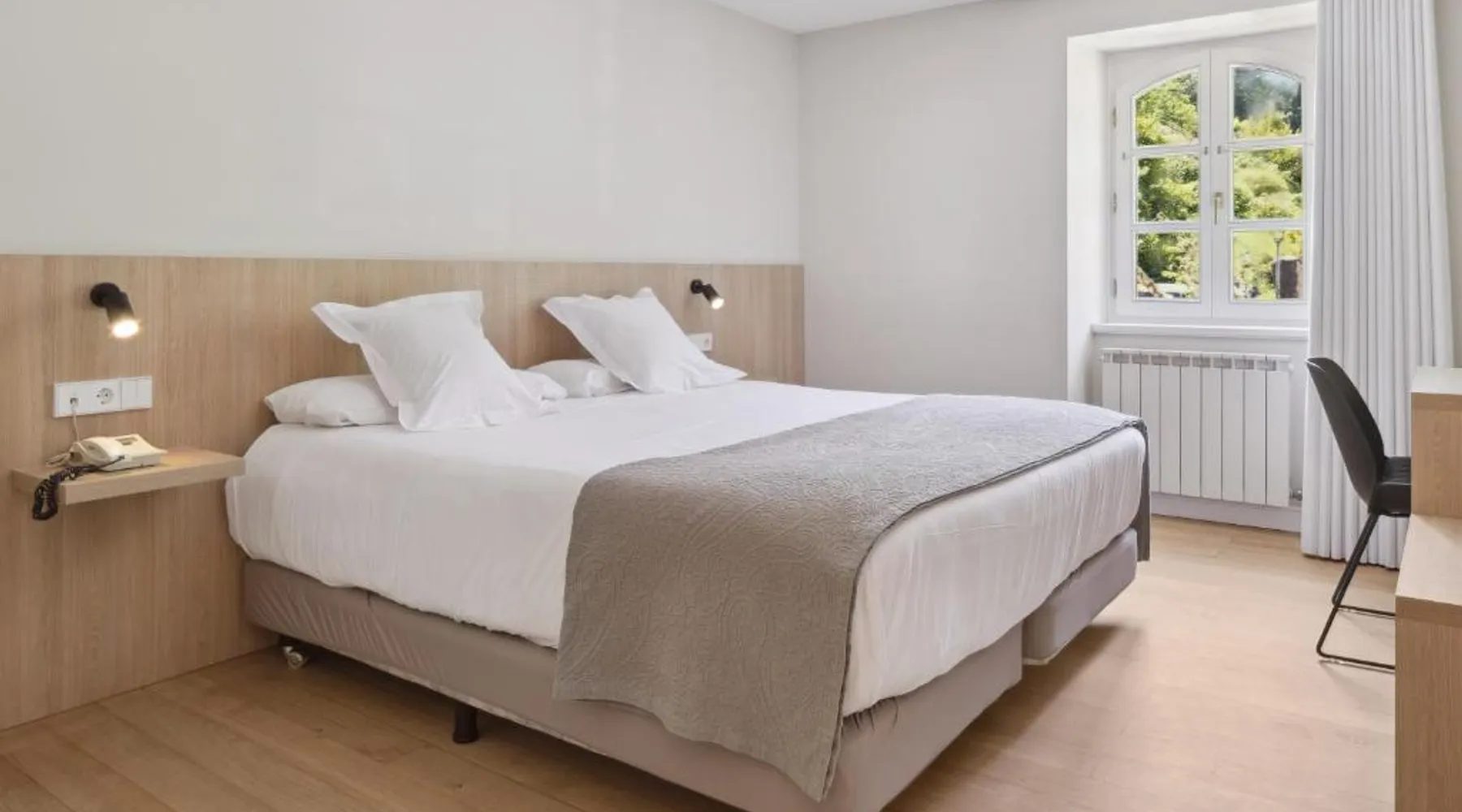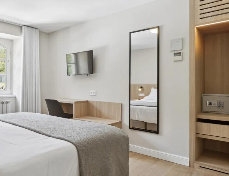 Surrounded by the wonderful mountain landscape of northern Navarra, this country house offers a range of facilities for a relaxing, rural getaway – including a restaurant. The Venta de Etxalar lies close to the Bidasoa River, in among stunning scenery of mountains, green fields and forests. The hotel’s wood-and-stone building is traditional in style, fitting in perfectly with these tranquil surroundings. During the summer you can enjoy the fresh air on the hotel’s terraces or on the paddle court while children play in the playground. The hotel’s own restaurant serves delicious á la carte dishes from the surrounding region – famous for its fine, natural cuisine. This single room features air conditioning and satellite TV.