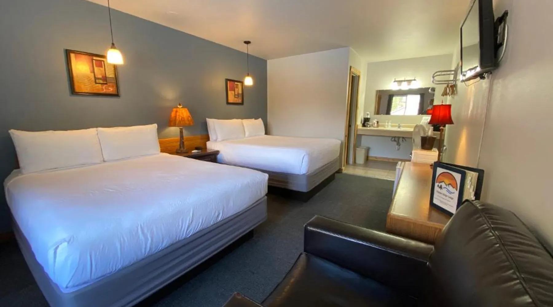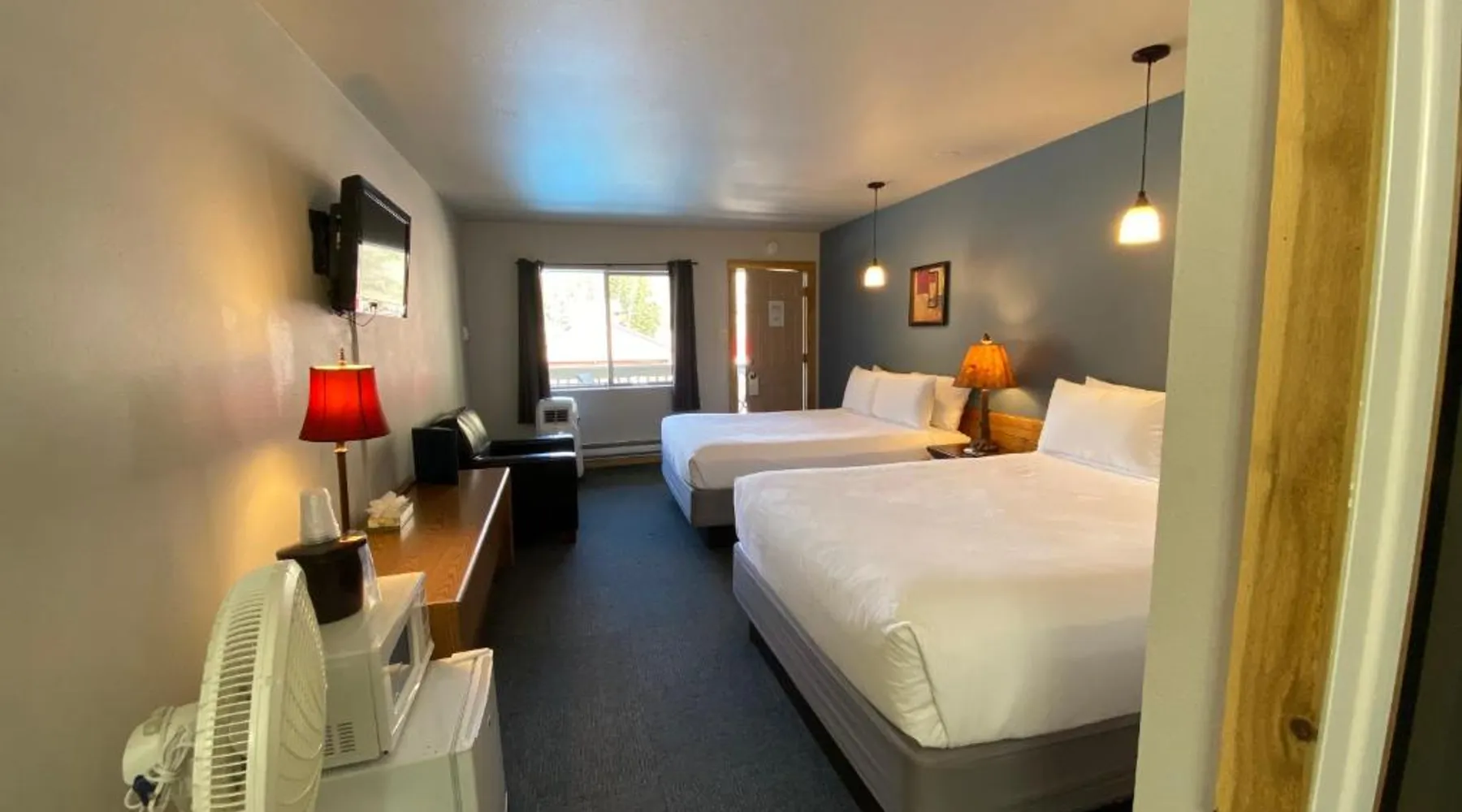 Offering ice climbing, hiking, whitewater rafting and summer canyoning opportunities, this lodge is just 0.5 miles from Ouray town center and 5 minutes’ walk away from Ouray Hot Springs pools. Free Wi-Fi is provided in all rooms. Each room at Timber Ridge Lodge Ouray includes a microwave, refrigerator, and coffee maker. A TV with satellite channels is also offered. This lodge offers BBQ facilities. The tour desk can assist with planning a variety of outdoor activities including Jeep and ATV rentals, tours and excursions. Guests have access to a picnic area with gas grills and a fire pit. There are nightly bonfires and s'mores provided year round. The frozen waterfall of Uncompahgre Gorge is 1 mile from this lodge. Ironton ghost town is located 9 miles from the lodge. Animas Forks ghost town is less than 30 minutes' drive. Featuring a private entrance, this air-conditioned suite is consisted of of 1 living room, 2 separate bedrooms and 1 bathroom with a bath and a shower. Guests will find a stovetop, a refrigerator, kitchenware and an oven in the well-fitted kitchenette. The suite also has a barbecue. Boasting an outdoor dining area, this suite also offers a coffee machine, a seating area and a flat-screen TV with satellite channels. The unit offers 3 beds.