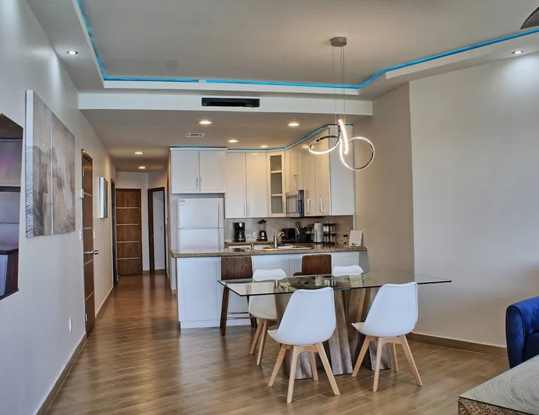 Paradise awaits you in our family oceanfront condo. Sip your coffee in the mornings on the balcony and margaritas into the afternoon and evening. No one will judge you if margaritas are also your drink of choice in the morning. You're on vacation! Check out our other reviews as well to gain piece of mind that we strive to offer the best guest experience possible. Book with us and let us help you to "EXPERIENCE ROCKY POINT"! We look forward to taking your vacation to a next level of service. The space The entire 2 bedroom 2 bath condo is your own private space. Also enjoy the shared community amenities such as the gym, palapas (thatch umbrellas) on the beach, Ramon's Restaurant, community coffee shop, an on-site convenience store, and tennis/pickleball courts. We even provide tennis rackets and pickleball paddles you are welcome to use! We are located on the 8th floor, in the West building. Guest access For sleeping arrangements, we offer a king bed in the master bedroom, a king bed in the guest bedroom, and 2 roll away cots/beds located in the guest bedroom closet. They are on wheels and can be moved around to wherever you see fit. Visitors are not permitted. Only guest registered in your reservation are permitted. The maximum number allowed guests (including adults children and infants) is 6 people. Other things to note Taxis and food deliveries are permitted up to the guard house. They are not permitted inside the resort. Please note that the front desk charges a $15 fee at check in to issue resorts wristbands to your group. These are required and is a one time charge for the group (not per person). We do not offer TV programming (no satellite, no cable TV, no standard TV channels). We offer a Roku TV in the living room and each bedroom. It has app's on it for which you can log into your own streaming accounts (such as Amazon Prime and Netflix) . We do not offer Fox News, CNN, ESPN, ABC, NBC, Football/NFL ticket etc. You MUST be 25 or older to book. There are no exceptions. This rule is strictly enforced by the resort. Addressing heating dates of the pool in the winter. There is not a set date that the heated pool begins being heated and when it is turned off in the spring. It varies every year and depends on the air and water temperature. If a heated pool is of material importance to booking your stay, please message me and the absolute best I can tell you is if it is currently being heated. We have the checkbox that the pool is heated in the winter but the winter season varies, so please inquire first before booking. Please note: only 1 pool at the resort is heated in the winter. Beach towels are NOT provided. Guests need to provide their own. A car EV charger is available for pay-per-use at the resort. Rates and policies are posted at the charging station. Our homeowners association covenants codes and restrictions do not permit renters to have animals of any kind including but not limited to service animals nor emotional support animals. As we are located in Mexico, ADA rules and governances do not apply in this case. ADA rules and governance apply to properties in the United States. Airbnb is aware of this situation specific to our community and has requested us to provide you with this information with this statement. Code for spindle spacing on balcony railings in Mexico is 15cm. Our railings are within code. If you have little ones and this spacing is of concern, our listing maybe no be suitable for your needs.