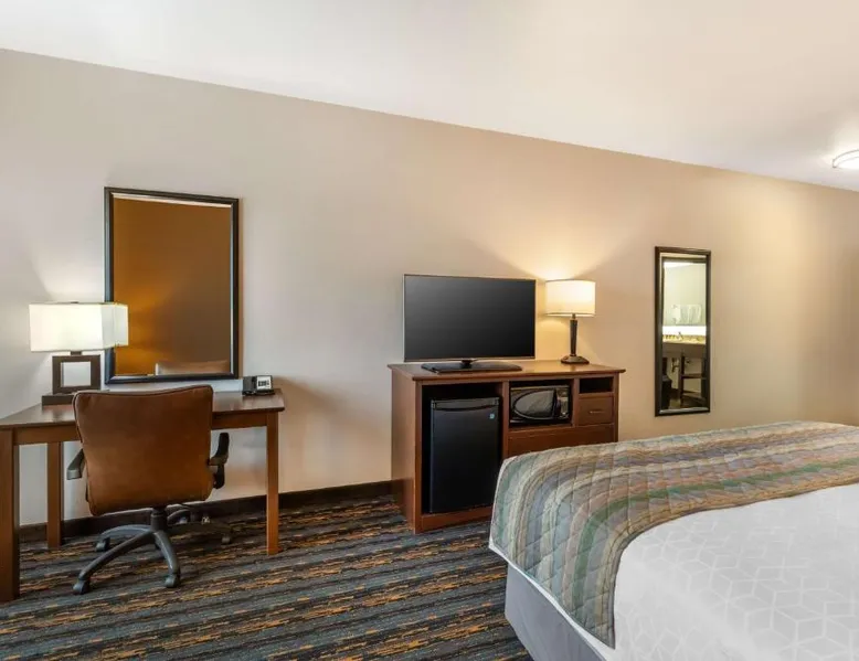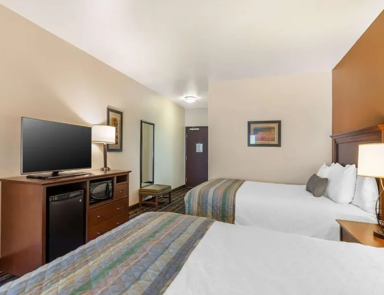 Comfortable Accommodations: Best Western PLUS Casper Inn & Suites in Casper offers comfortable rooms with air-conditioning, ensuring a pleasant stay. Guests appreciate the room cleanliness and comfort. Exceptional Facilities: The hotel features a fitness center, indoor swimming pool, and free WiFi. Additional amenities include a lounge, hot tub, and 24-hour front desk. Convenient Services: Free on-site private parking, a minimarket, and express check-in and check-out services enhance the guest experience. Delicious Breakfast: A complimentary American buffet breakfast is served daily, providing a great start to the day. Prime Location: Located 16 mi from Casper-Natrona County International Airport, the hotel is highly rated for its excellent services and facilities. The suite offers air conditioning.
