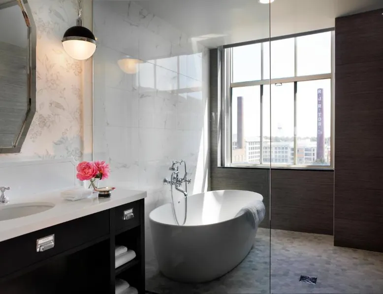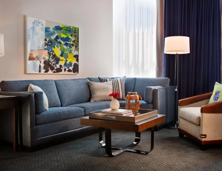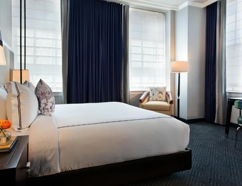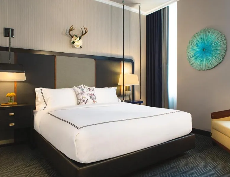 Located in the historic R.J. Reynolds building, Kimpton Cardinal Hotel provides accommodations in downtown Winston-Salem. The hotel offers amenities such as a fitness center, in-room spa services, and a recreation center. A full-service French-inspired restaurant is available on site. M C Benton Jr Convention Center is a 4 minutes' walk from the property. Rooms feature a flat-screen TV with cable channels and a mini-bar. A private bathroom with complimentary toiletries is provided. Guests can get a quick stretch on the in-room yoga mat. Select rooms feature additional amenities such as a spa bath and a separate seating area. The Rec Room offers a variety of games such as a bowling, basketball, and table tennis. 6 flat-screen TVs and a 2-story spiral slide are also included for added excitement. Complimentary morning coffee and tea are offered daily. The Katharine is an elegant French-inspired bar and restaurant open for breakfast, lunch, and dinner. It features a raw bar and brasserie-style cuisine. A nightly evening wine hour is also available at the hotel. The nearest airport is Piedmont Triad Airport, 17 mi from the accommodations. This room features separate seating area with a sofa bed, premium bedding and linens, air conditioning, bathrobes, and luxurious bath amenities.