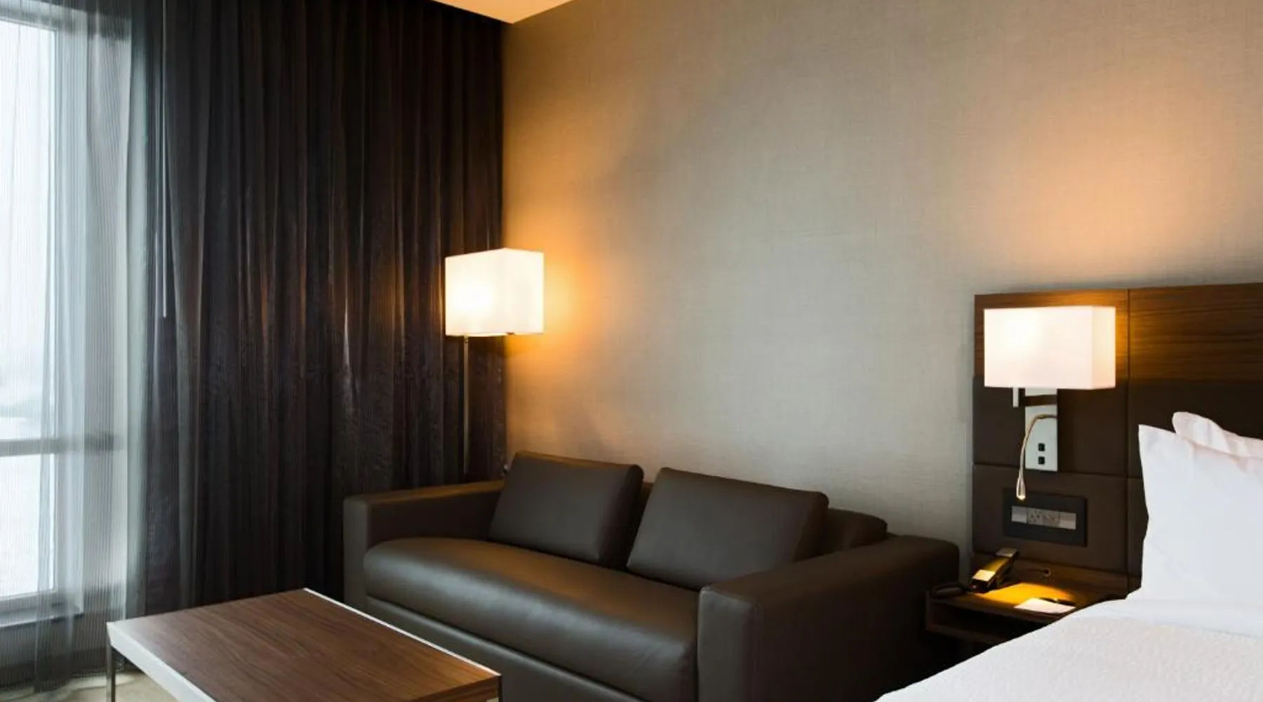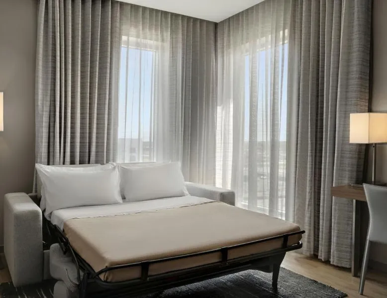 Within walking distance of the Liberty Center, this AC Hotel by Marriott is located in North/West Chester. The hotel features an indoor pool and fitness center. Free WiFi access is available. Every room at AC Hotel by Marriott Cincinnati North/West Chester provides a cable TV with satellite channels, a refrigerator and a coffee maker. Private bathrooms come complete with a bathrobe and a hairdryer. Ironing facilities are also included. Guests can enjoy a meal at the AC Kitchen or grab a drink at the lounge. Other amenities offered at the hotel include meeting and banquet facilities. The property offers free parking. The nearest airport is Northern Kentucky Airport, 27 mi from the property. This room features a pull-out sofa, a mini fridge and a smart TV with streaming services such as Netflix, Hulu, YouTube and Crackle. Several bottles of water and a coffee machine are provided.
