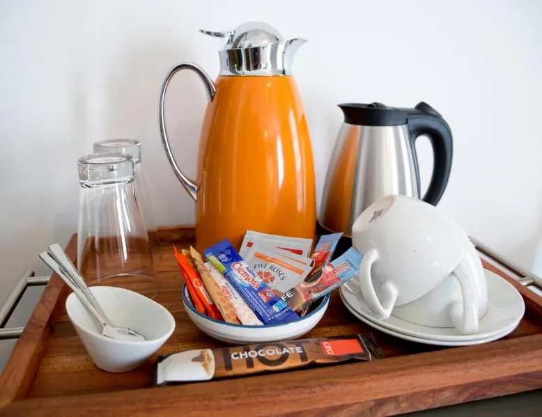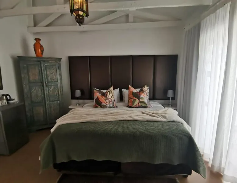 Comfortable Accommodations: The Rez Guest house in Walvis Bay offers comfortable rooms with air-conditioning, private bathrooms, and modern amenities. Each room includes a work desk, TV, and soundproofing for a pleasant stay. Exceptional Facilities: Guests can enjoy a bar and free WiFi, an outdoor fireplace, and an outdoor seating area. Additional facilities include a business area, tour desk, and free on-site private parking. Delicious Breakfast: A variety of breakfast options are available, including continental, buffet, à la carte, and full English/Irish. Breakfast includes warm dishes, fresh pastries, cheese, fruits, and juice. Prime Location: Located 11 mi from Walvis Bay Airport, the guest house is near attractions such as Dune 7 (9.9 mi) and Walvis Bay Golf Course (1.2 mi). Highly rated for its attentive staff, excellent breakfast, and comfortable rooms. This air-conditioned double room includes a flat-screen TV with streaming services, a private bathroom as well as a patio.