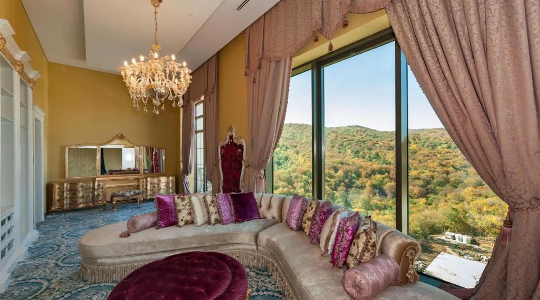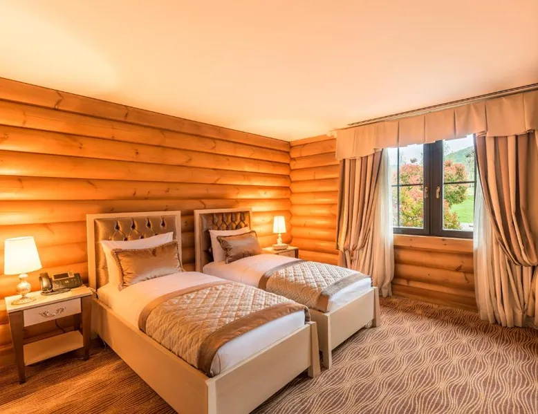 Quba Palace Hotel & Golf Resort features a spa and wellness center, outdoor pool, sauna, hammam and fitness center. Free parking is available on site. The rooms offer air conditioning, a seating area, fridge and flat-screen TV with satellite channels. The bathrooms provide a hairdryer and bathrobes. Guests can dine in one of the 3 on-site restaurants, serving national, international and European cuisine, or use property’s barbecue facilities. There is also a bar in the hotel. Room service and breakfasts in the room are provided upon request. A range of activities are offered on site or in the surroundings, including tennis, table tennis, golf and mini football. A Bus Station is 5.6 mi from the hotel, and shuttle service is provided at surcharge. Baku Train Station is 102 mi away, and Heydar Aliyev International Airport is 119 mi from Quba Palace Hotel & Golf Resort. All payments should be made when the reservation is confirmed. Cardholders need to present the card mentioned in the reservation at check-in time. This villa features a pool with a view, sauna and fireplace. Boasting a private entrance, this air-conditioned villa features 2 living rooms, 4 separate bedrooms and 4 bathrooms with a bath and a shower. The kitchen has a refrigerator, kitchenware and an oven. The spacious villa features soundproof walls, a mini-bar, a tea and coffee maker, a flat-screen TV with satellite channels, as well as pool views. The unit has 6 beds.
