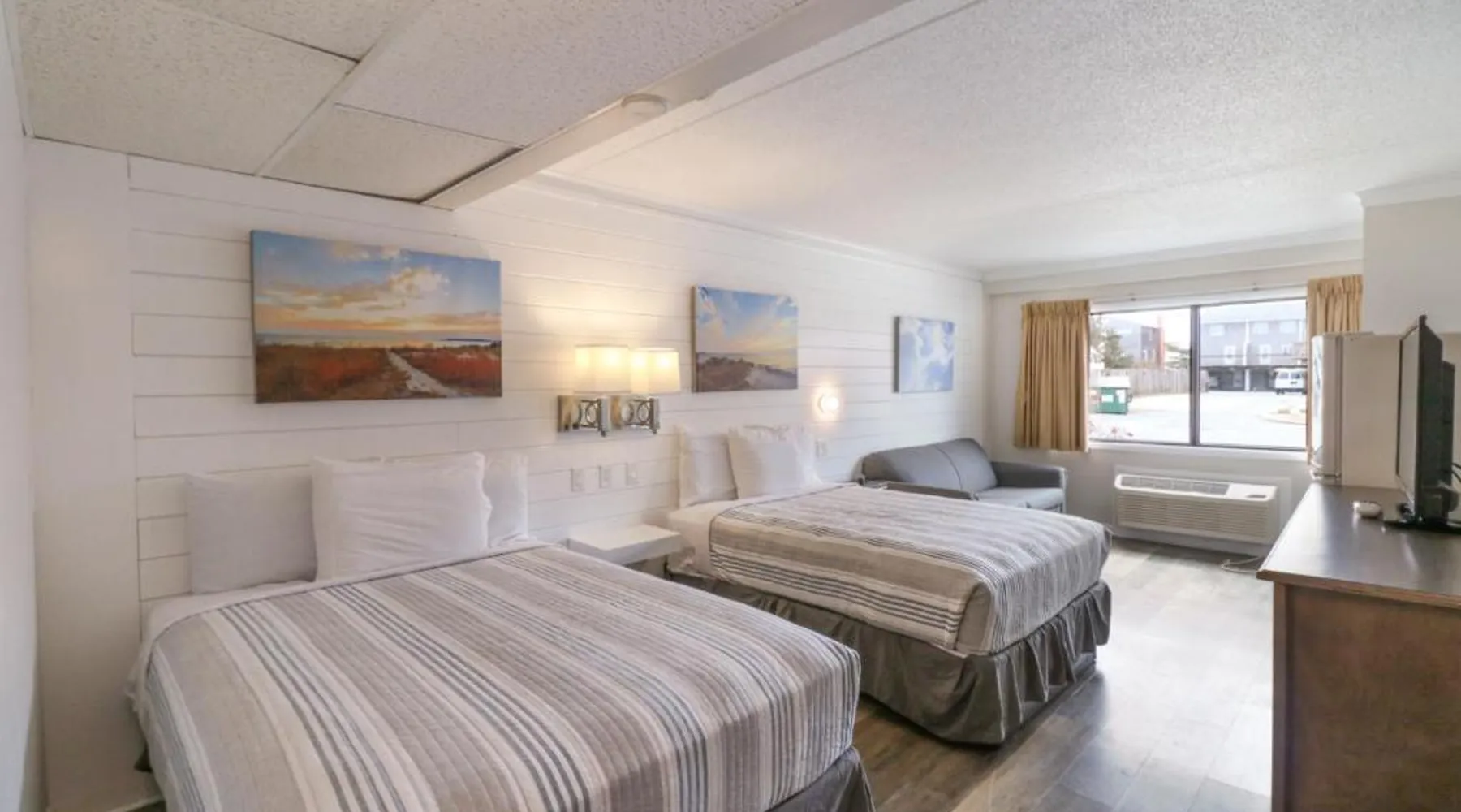 Facing the seafront in Dewey Beach, Atlantic Oceanside Dewey features a seasonal outdoor pool and a fitness center. Featuring a 24-hour front desk, this property also provides guests with a sun terrace. Delaware Seashore State Park is 5.6 mi from the hotel. All guest rooms in the hotel are equipped with a flat-screen TV, microwave and refrigerator. Select rooms offer a kitchenette with an oven. The nearest airport is Salisbury-Ocean City Wicomico Regional Airport, 34 mi from Atlantic Oceanside Resort. Featuring free toiletries, this double room includes a private bathroom with a bath, a shower and a hairdryer. The spacious air-conditioned double room features a flat-screen TV with streaming services, a seating area, a wardrobe, a sofa as well as a quiet street view. The unit has 3 beds.