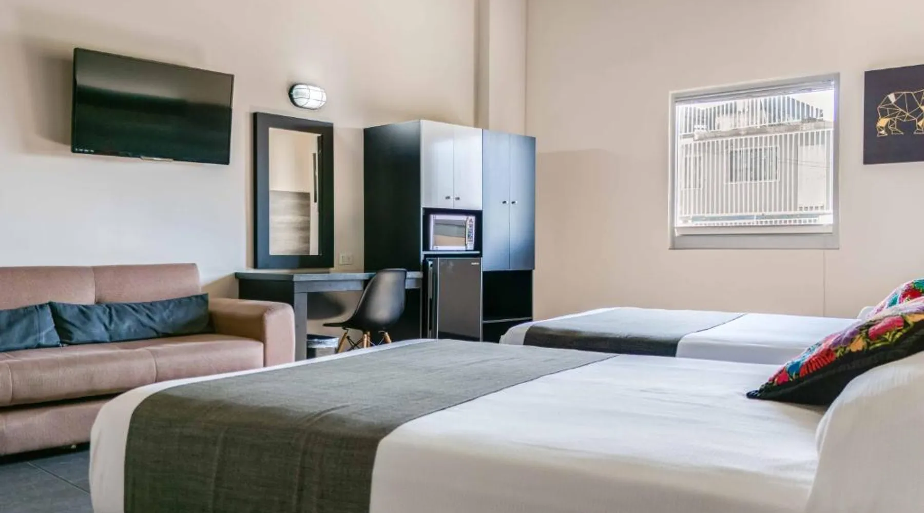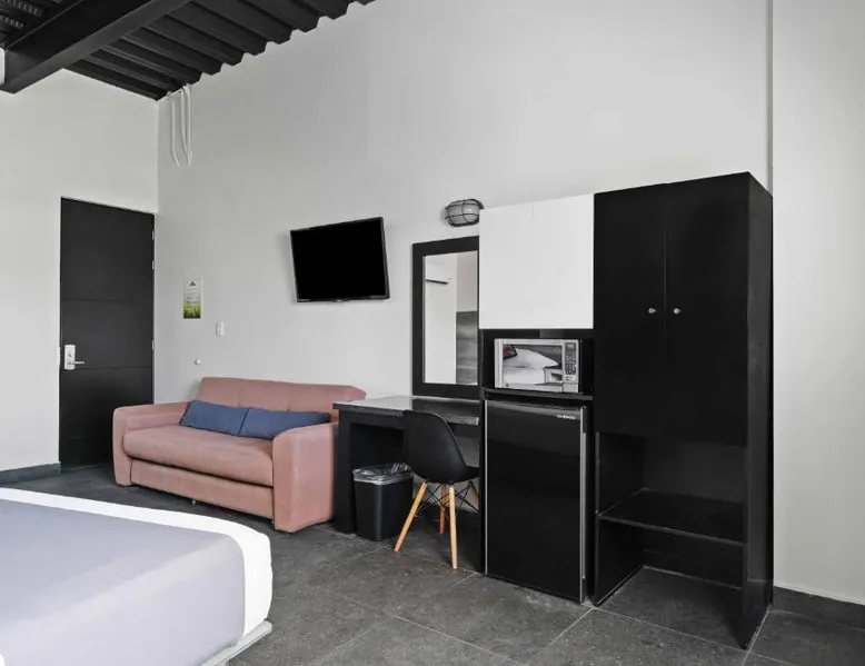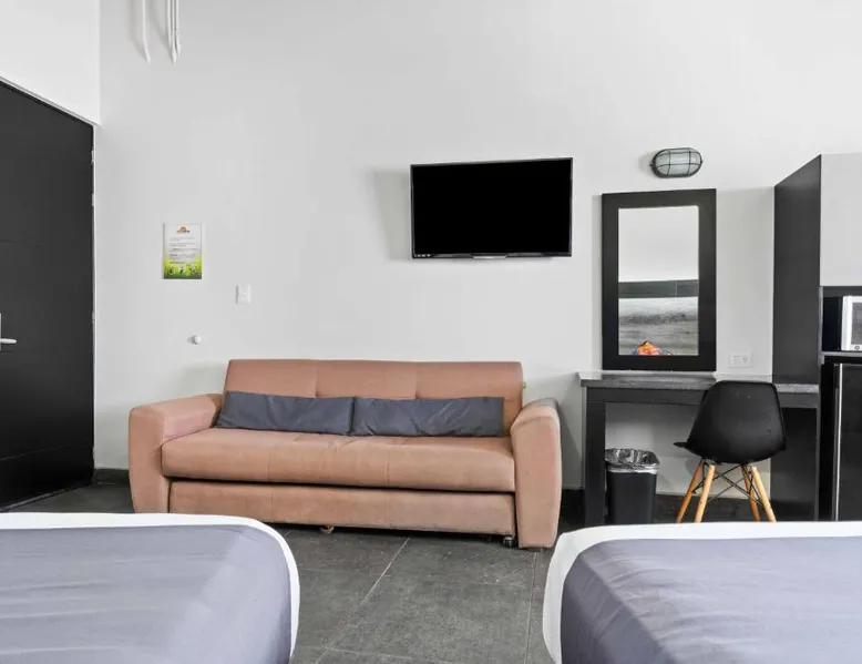 Comfortable Accommodations: Homesuites Malecon in Culiacán offers comfortable rooms with air-conditioning, private bathrooms, and mountain or city views. Each room includes a work desk, free toiletries, and a TV. Essential Facilities: Guests enjoy free WiFi, private check-in and check-out, a 24-hour front desk, and a concierge service. Additional amenities include a public bath, elevator, and free on-site parking. Convenient Location: Located 6.2 mi from Culiacán International Airport and 2.1 mi from Banorte Stadium, the hotel provides easy access to local attractions. Guest Satisfaction: Highly rated for its convenient location, room cleanliness, and comfort, Homesuites Malecon ensures a pleasant stay for all visitors. Boasting a private entrance, this air-conditioned suite features 1 living room, 1 separate bedroom and 1 bathroom with a shower and a hairdryer. The suite features a flat-screen TV with cable channels, a seating area, a wardrobe, a sofa as well as mountain views. The unit has 2 beds.