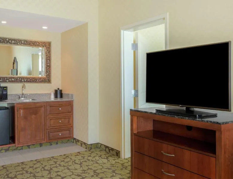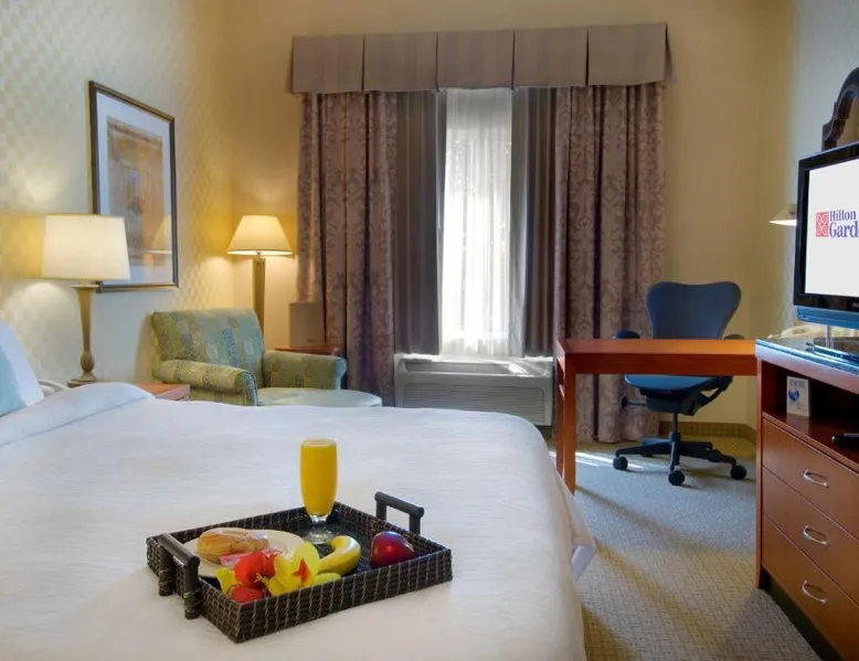 Located in the Laguna Pointe Business Park, within driving distance of Sacramento, this Elk Grove, California hotel offers guestrooms with free wireless internet access and an on-site restaurant. Hilton Garden Inn Sacramento Elk Grove features an outdoor pool and state-of-the-art fitness center. Guests can work in the 24-hour business center, then relax in the hot tub. All guestrooms at the Elk Grove Hilton Garden Inn offer hospitality centers with coffeemakers, microwaves and refrigerators. Guests will also enjoy flat-screen TVs and self-adjusting Garden Sleep System beds. The Great American Grill at the Sacramento Hilton Garden Inn Elk Grove is open daily for breakfast and dinner. Guests can also purchase a snack anytime in the 24-hour convenience center. Free Wi-Fi, a spa bath, a coffee machine, a microwave, a refrigerator and a flat-screen TV are all included in this room. This room is hearing accessible.