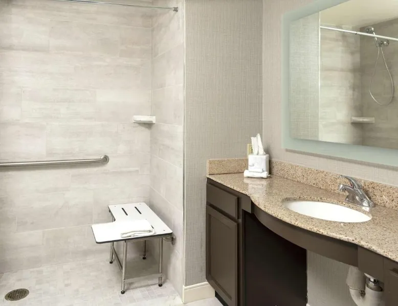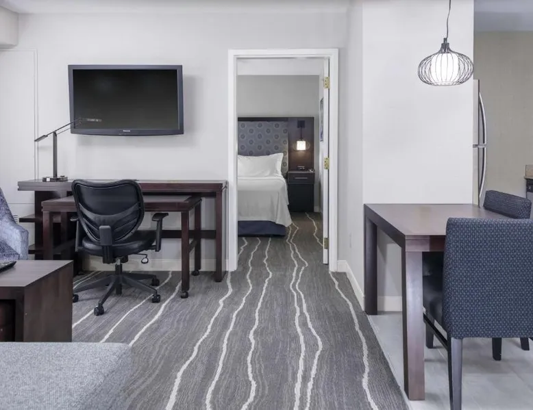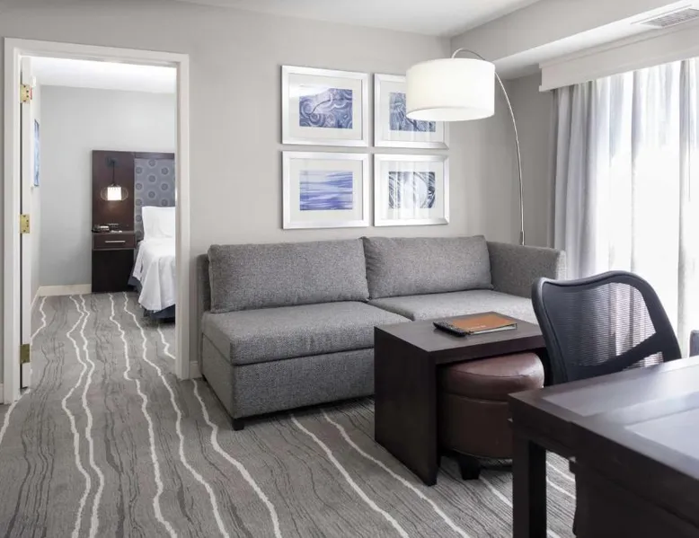 Comfortable Accommodations: Homewood Suites by Hilton Columbia in Columbia offers family rooms with air-conditioning, kitchen facilities, and free WiFi. Each room includes a refrigerator, microwave, and work desk. Outstanding Facilities: Guests enjoy an outdoor swimming pool, fitness room, and 24-hour front desk. Additional amenities include a elevator, free on-site parking, and a business center. Delicious Breakfast: A complimentary American buffet breakfast is served daily, featuring warm dishes, fresh pastries, pancakes, fruits, and juice. Prime Location: Located 9.3 mi from Baltimore - Washington International Airport, the hotel is near attractions such as Carroll Park (13 mi) and Inner Harbor (15 mi). Highly rated for family-friendliness, room comfort, and bathroom comfort. The suite provides air conditioning. The unit offers 2 beds.