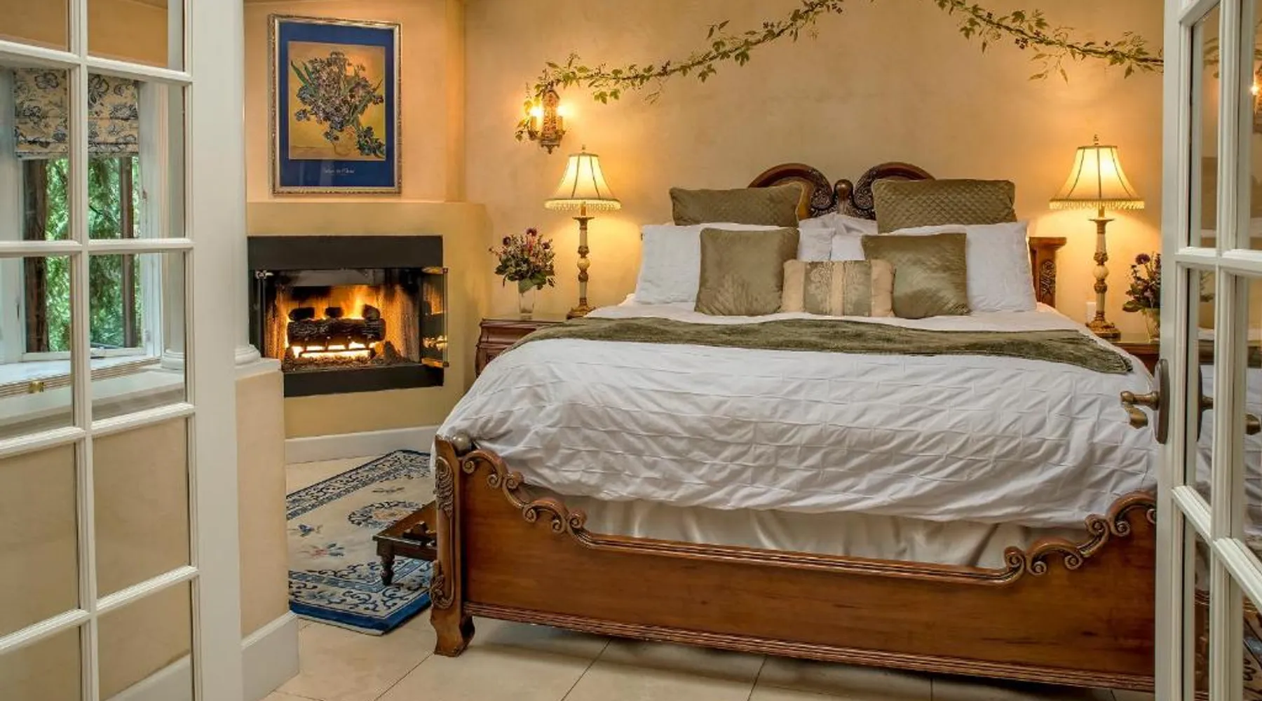 Set in a 1929 English Tudor inn, this adults-only (21+) Napa Valley bed and breakfast offers spacious, unique rooms and a three-course breakfast. Guests may enjoy the outdoor pool and patio. Each room offers an individual classic design, but all include a private bath with bathrobe. Rooms are also equipped with free WiFi and a flat-screen TV with DVD. A three course breakfast is served each morning in a Napa Valley-style breakfast area. The first course offers fresh fruits and the second course offers something sweet like pancake or french toast dishes. The final course features gourmet egg creations such as a spinach and mushroom strata with tarragon The innkeepers are happy to provide dining recommendations and help plan a day in wine country. Free newspapers, beverages, and snacks are also available throughout the day. The Candlelight Inn Napa Valley is less than 3 mi from the Napa Valley Wine Train and less than 5 mi from the Napa Municipal Golf Course. A two-person spa bath, a fireplace and pillow-top bedding are featured in this room. A seating area is offered. A maximum of 2 adult guest are allowed in this room.