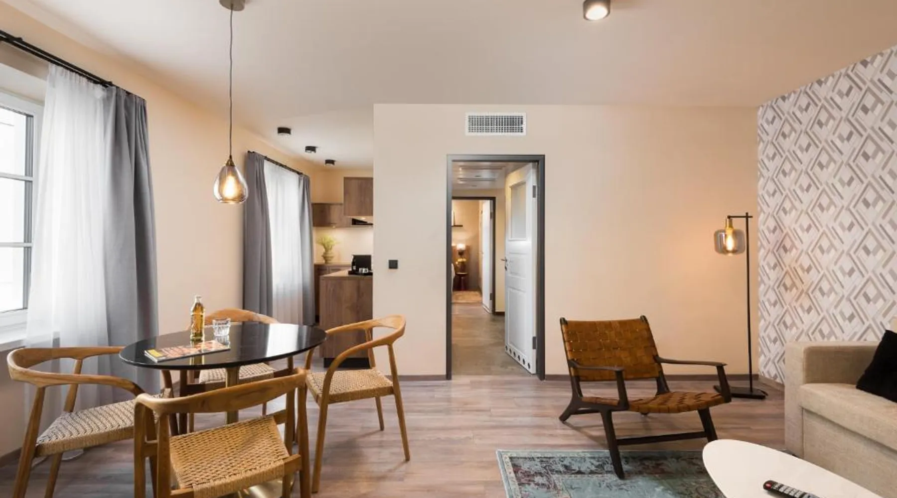 Modern Comforts: master Linzergasse in Salzburg offers a recently renovated aparthotel with free WiFi, air-conditioning, and a fully equipped kitchenette. Each unit includes a private bathroom with a walk-in shower, tea and coffee maker, and free toiletries. Convenient Facilities: Guests benefit from a elevator, laundry service, express check-in and check-out, and luggage storage. Additional amenities include a balcony, dining area, and parquet floors. Prime Location: Located 3.7 mi from Salzburg W. A. Mozart Airport, the aparthotel is near Mirabell Palace (less than 0.6 mi), Salzburg Central Station (14-minute walk), and Mozart's Birthplace (9-minute walk). Nearby attractions include Getreidegasse and Salzburg Cathedral. Guest Satisfaction: Highly rated for nearby shops, well-equipped kitchen, and room cleanliness. Featuring a private entrance, this air-conditioned apartment consists of 1 living room, 1 separate bedroom and 1 bathroom with a walk-in shower and a hairdryer. In the well-fitted kitchen, guests will find a stovetop, a refrigerator, a dishwasher and kitchenware. The apartment features parquet floors, a seating area with a flat-screen TV with streaming services, a tea and coffee maker, a dining area, as well as a wardrobe. The unit offers 1 bed.