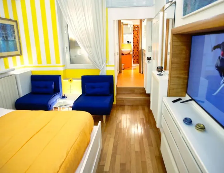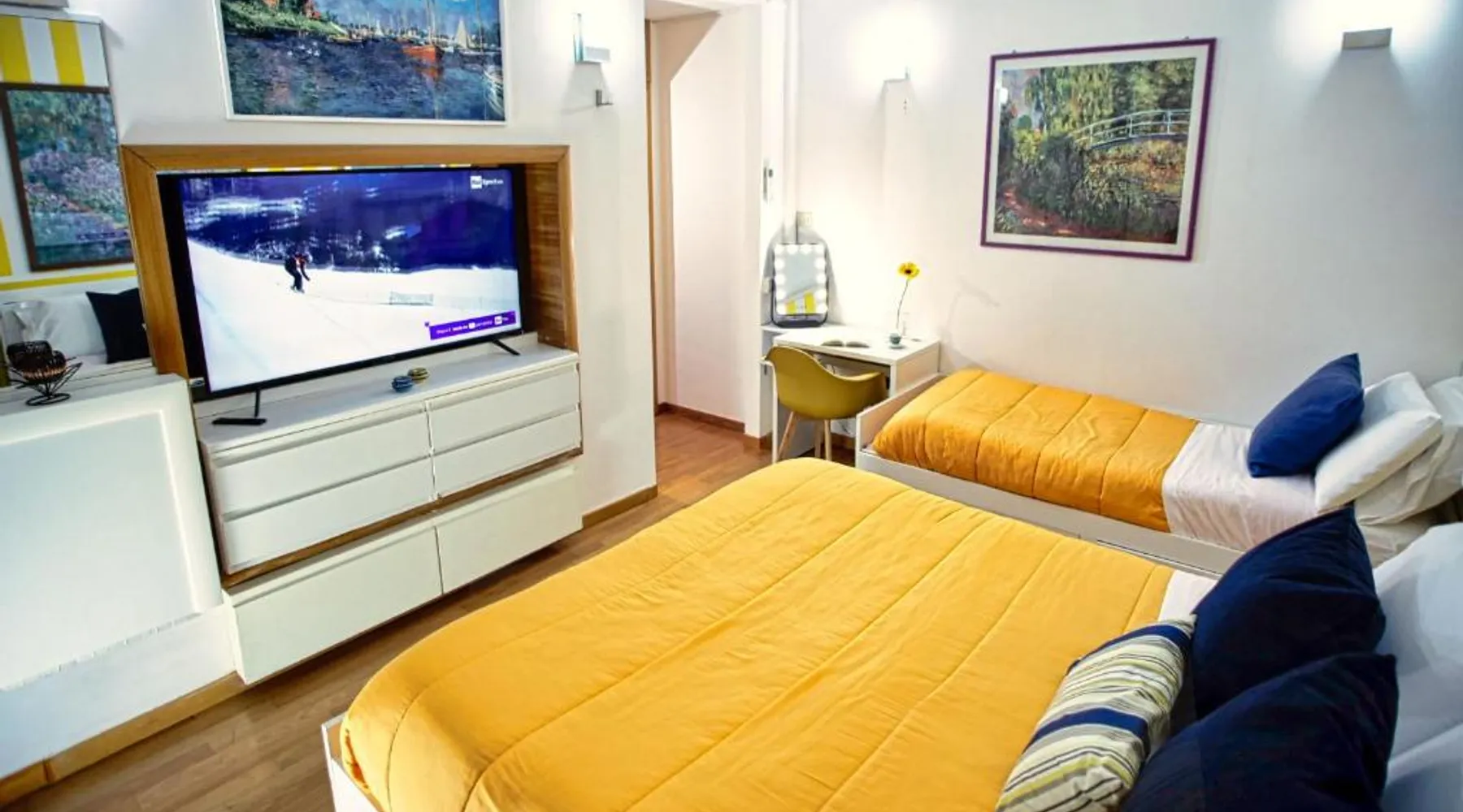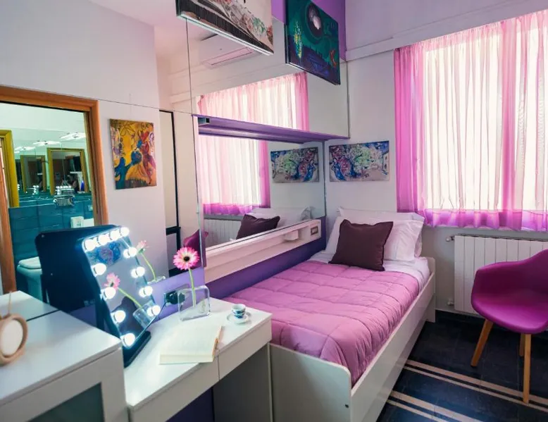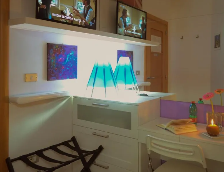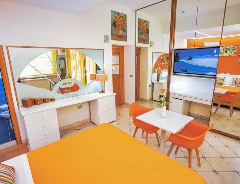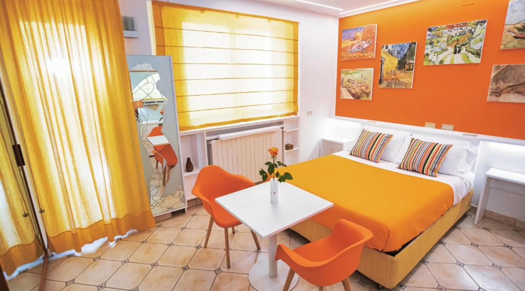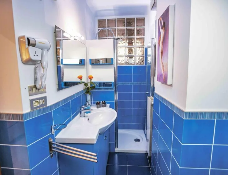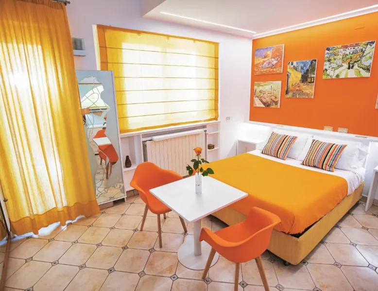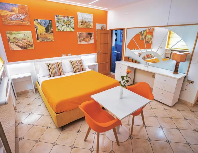 Comfortable Accommodations: B&B degli Artisti in Palmi offers family rooms with air-conditioning, private bathrooms, and free WiFi. Each room includes a work desk, TV, and wardrobe. Dining and Amenities: Guests can enjoy a buffet breakfast with Italian options, including fresh pastries, fruits, and juice. The property features a minimarket, coffee shop, and luggage storage. Convenient Location: Located 30 mi from Reggio di Calabria Tito Minniti Airport, the bed and breakfast is near attractions such as the Archaeological Museum (27 mi) and Aragonese Castle (28 mi). Providing free toiletries, this triple room includes a private bathroom with a shower, a bidet and a hairdryer. The air-conditioned triple room provides a flat-screen TV with cable channels, a wardrobe, parquet floors, heating as well as an inner courtyard view. The unit offers 2 beds.