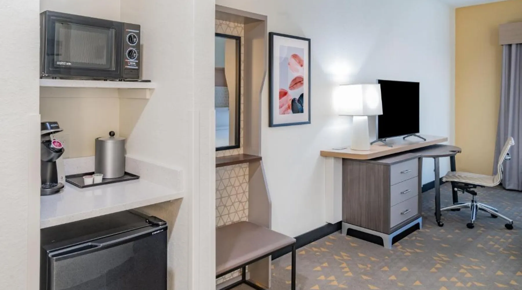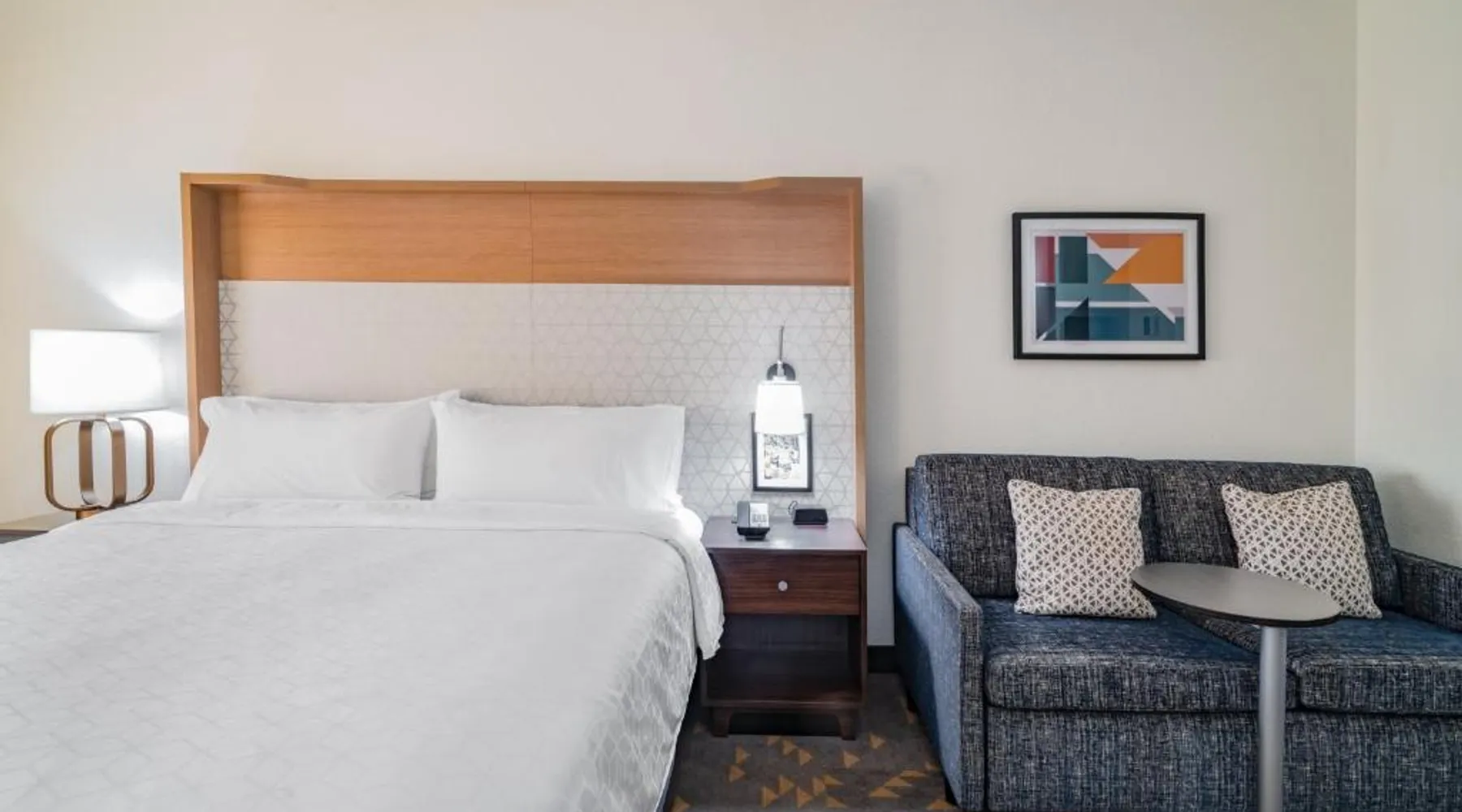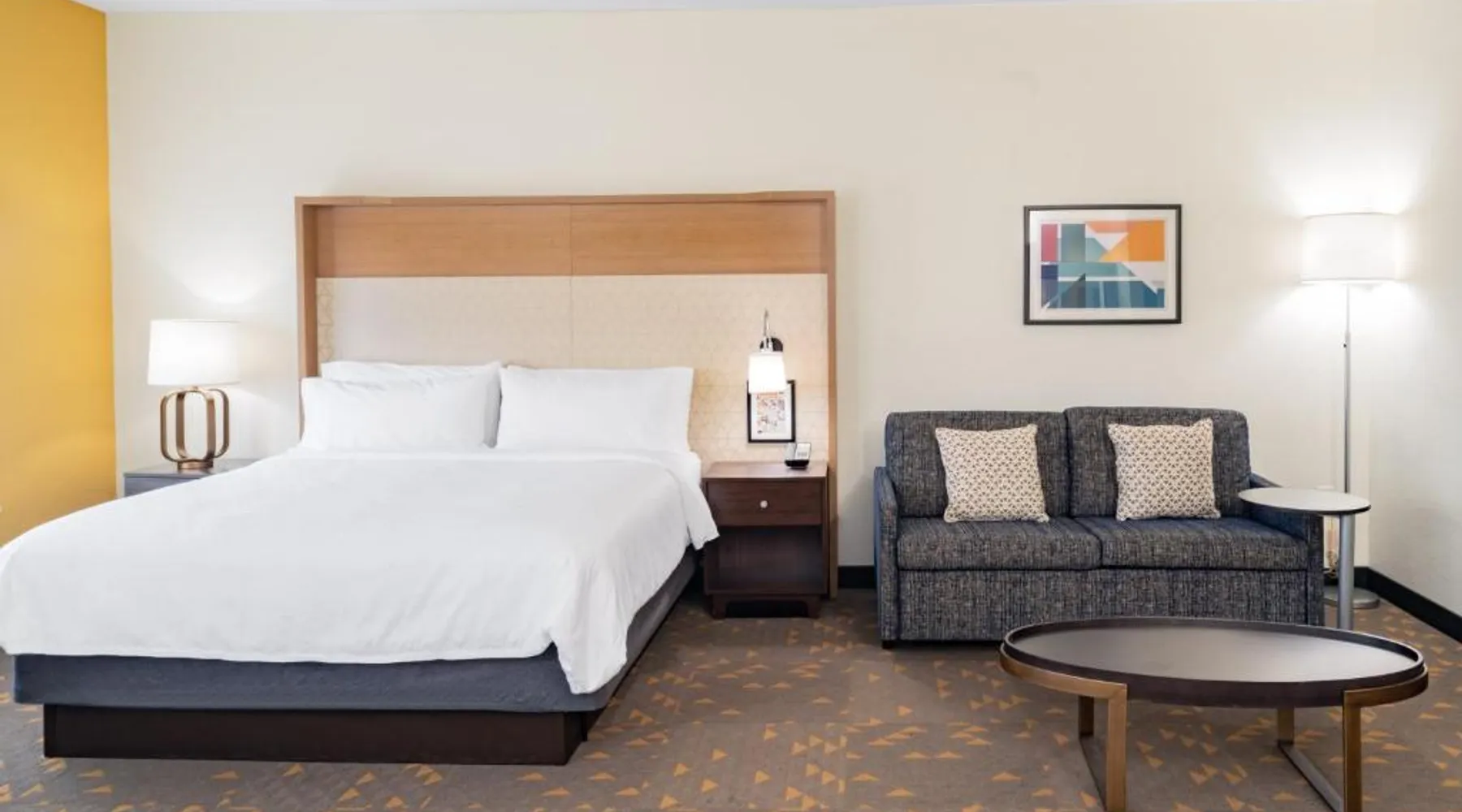 This Southaven hotel features an on-site restaurant, heated indoor pool and modern fitness center. Located 20 minutes’ drive from Memphis International Airport, it offers a 32-inch flat-screen cable TV in every room. A microwave, fridge and coffee-making facilities are provided in the warmly decorated rooms at Holiday Inn Southaven Central - Memphis. They include free Wi-Fi and a desk. 302 Bar and Grill serves American cuisine for breakfast and dinner and offers outdoor dining. Room service is available. Located just off Interstate 55, Southaven Holiday Inn is 15 minutes’ drive from Graceland, the former home of Elvis Presley. Whitehaven Golf Course is 6 miles away. The spacious double room features air conditioning, a tea and coffee maker, heating and a flat-screen TV with cable channels. The unit has 2 beds.
