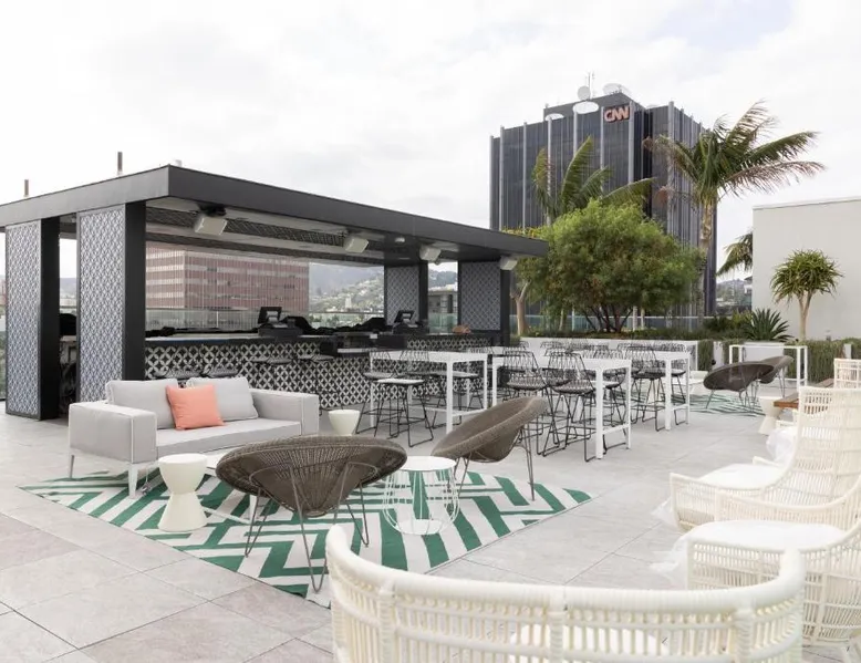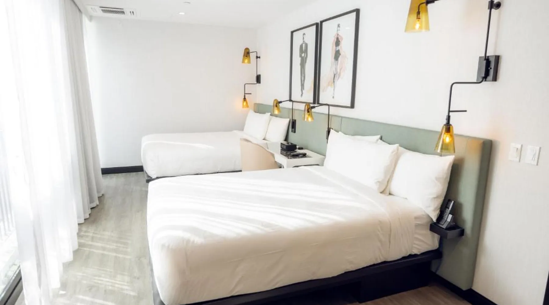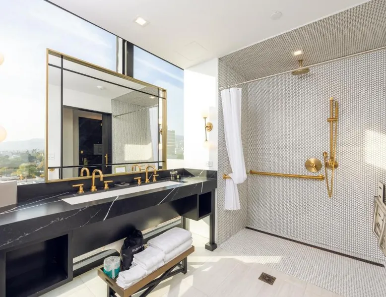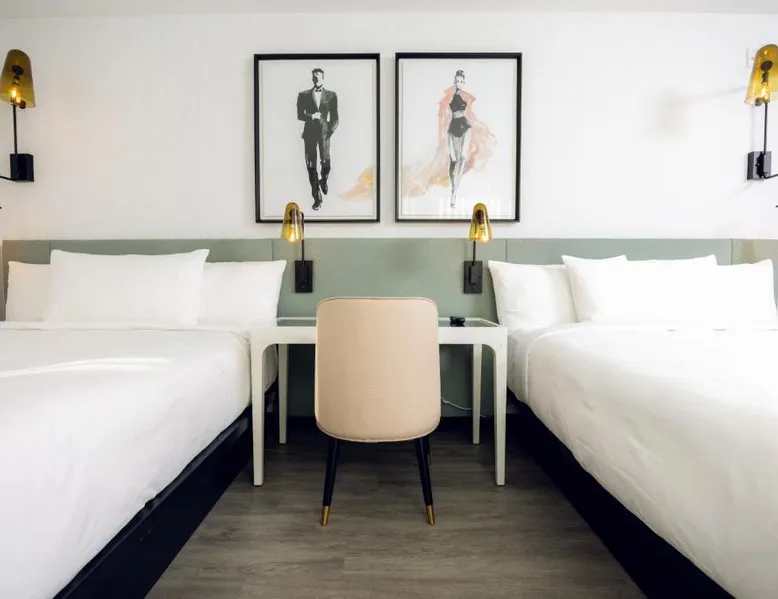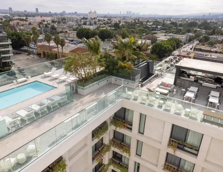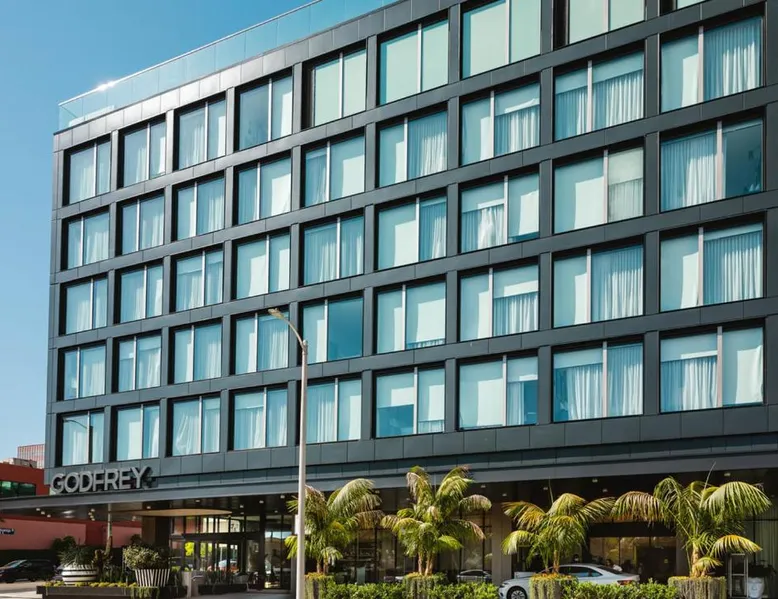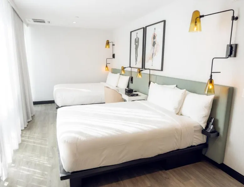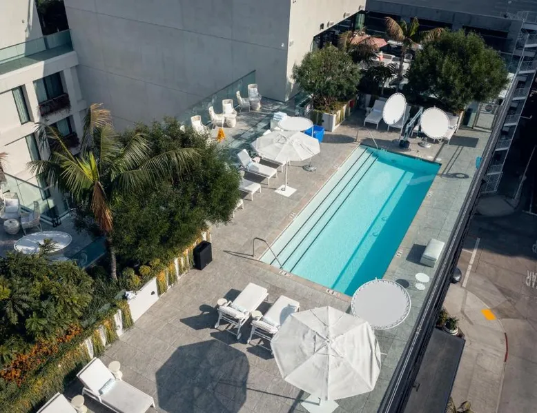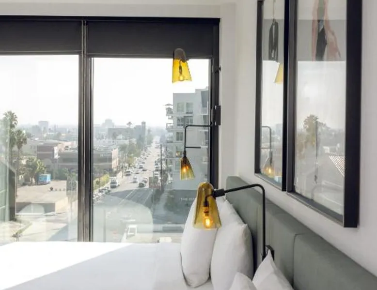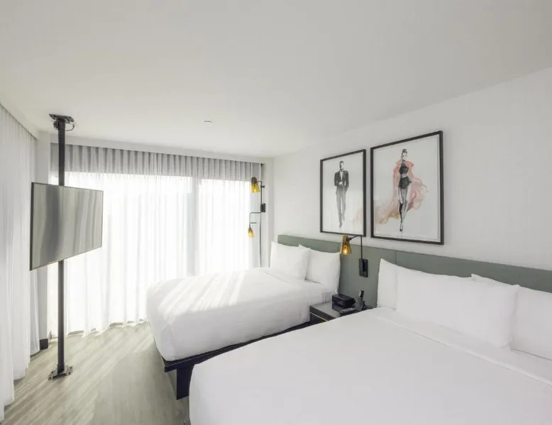 Elegant Accommodations: The Godfrey Hotel Hollywood in Los Angeles offers stylish rooms with air-conditioning, balconies, and modern amenities. Each room includes a private bathroom, work desk, and free WiFi. Exceptional Facilities: Guests can enjoy a swimming pool with a view, fitness center, sun terrace, restaurant, and bar. Additional facilities include a fitness room, 24-hour front desk, concierge service, and free toiletries. Dining Experience: The modern, family-friendly restaurant serves American cuisine for lunch and dinner, complemented by cocktails. Outdoor seating areas provide relaxing spaces. Prime Location: Located 7.5 mi from Hollywood Burbank Airport, the hotel is near attractions such as Capitol Records Building (less than 0.6 mi) and Dolby Theater (1.2 mi). Guests appreciate the rooftop pool, bar, and convenient location. Featuring free toiletries and bathrobes, this quadruple room includes a private bathroom with a walk-in shower and a hairdryer. The air-conditioned quadruple room features a flat-screen TV, a tea and coffee maker, a safe deposit box, tumble dryer as well as city views. The unit has 2 beds.