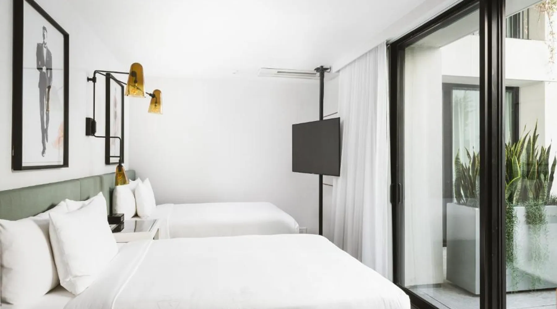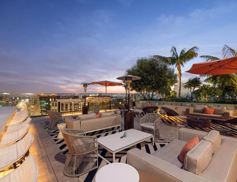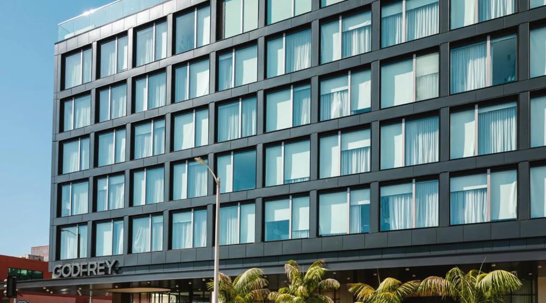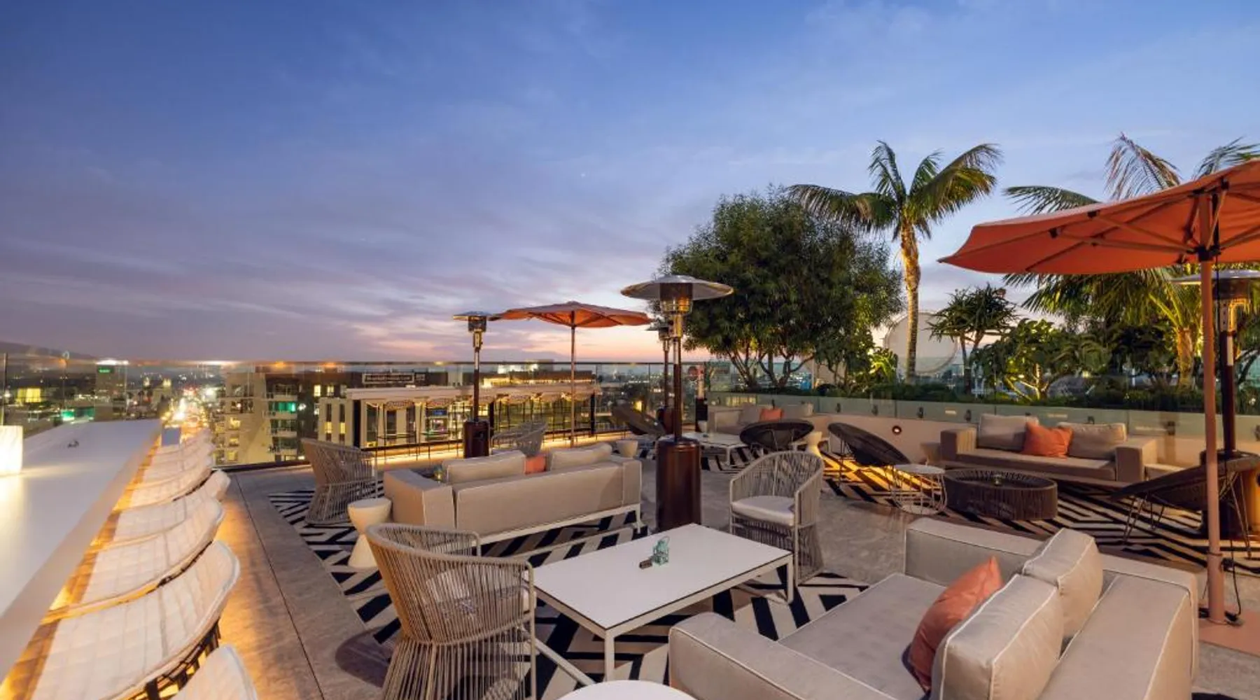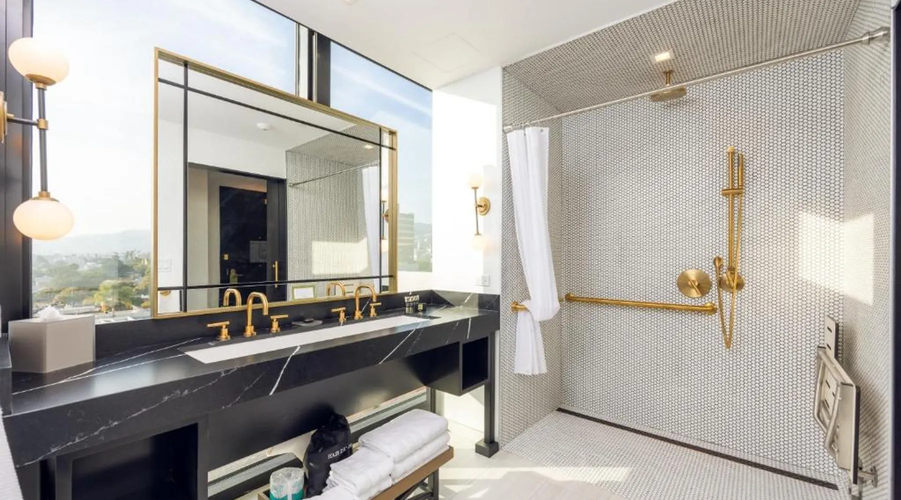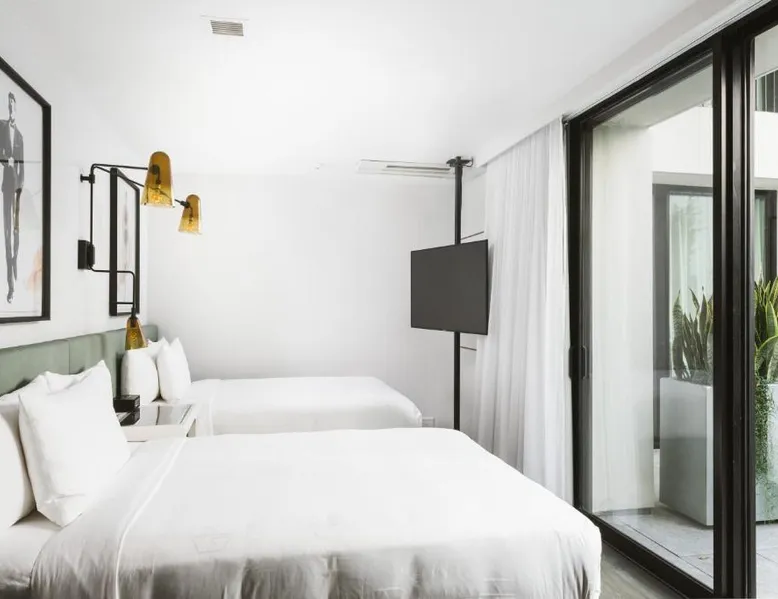 Elegant Accommodations: The Godfrey Hotel Hollywood in Los Angeles offers stylish rooms with air-conditioning, balconies, and modern amenities. Each room includes a private bathroom, work desk, and free WiFi. Exceptional Facilities: Guests can enjoy a swimming pool with a view, fitness center, sun terrace, restaurant, and bar. Additional facilities include a fitness room, 24-hour front desk, concierge service, and free toiletries. Dining Experience: The modern, family-friendly restaurant serves American cuisine for lunch and dinner, complemented by cocktails. Outdoor seating areas provide relaxing spaces. Prime Location: Located 7.5 mi from Hollywood Burbank Airport, the hotel is near attractions such as Capitol Records Building (less than 0.6 mi) and Dolby Theater (1.2 mi). Guests appreciate the rooftop pool, bar, and convenient location. Featuring free toiletries and bathrobes, this quadruple room includes a private bathroom with a walk-in shower and a hairdryer. The air-conditioned quadruple room features a flat-screen TV, a tea and coffee maker, a safe deposit box, tumble dryer as well as city views. The unit has 2 beds.