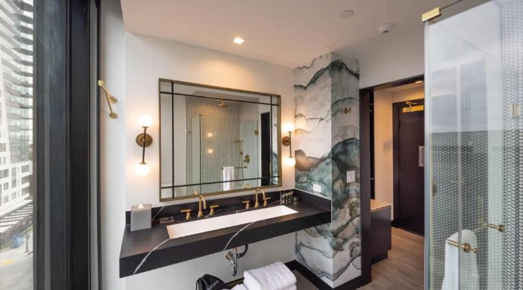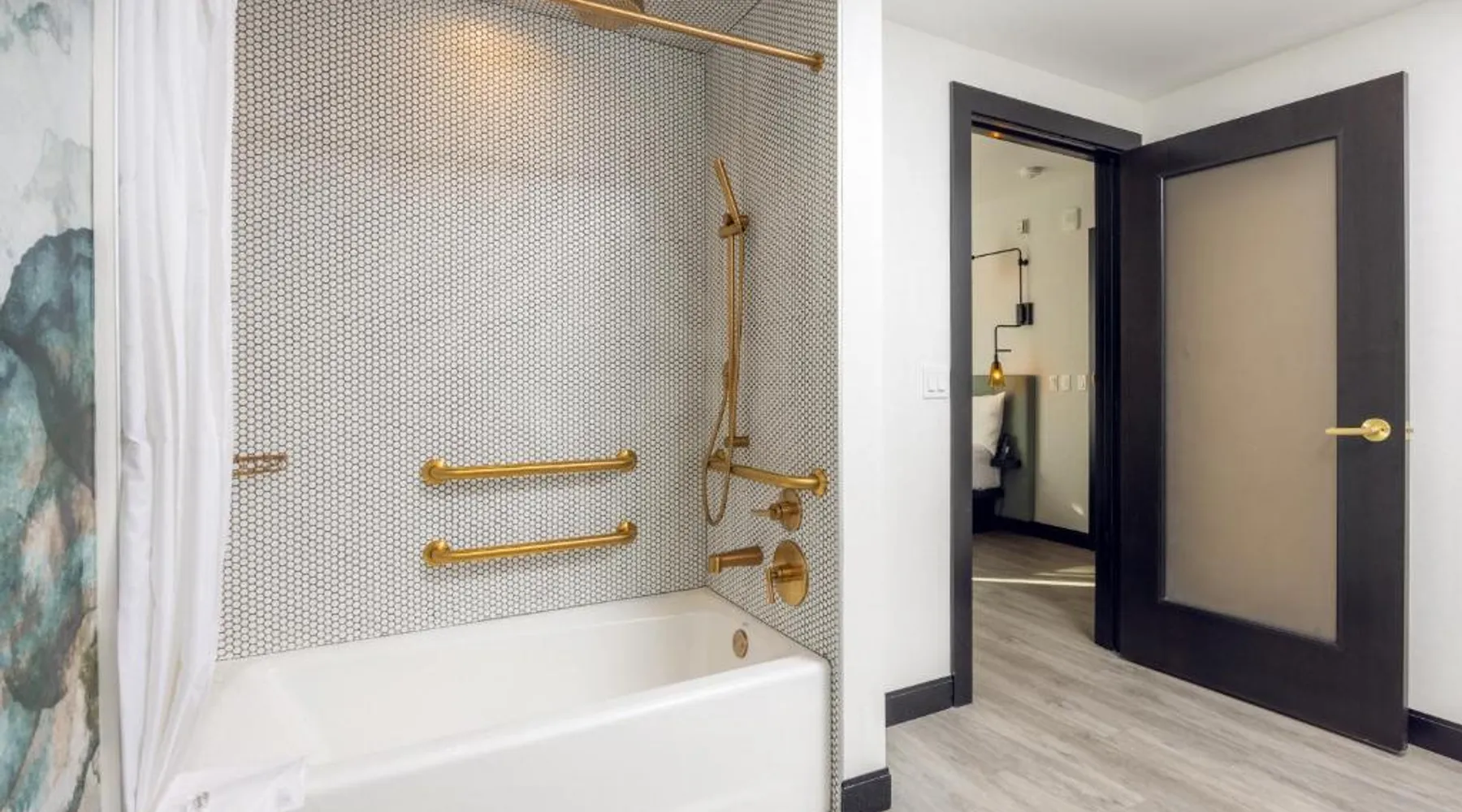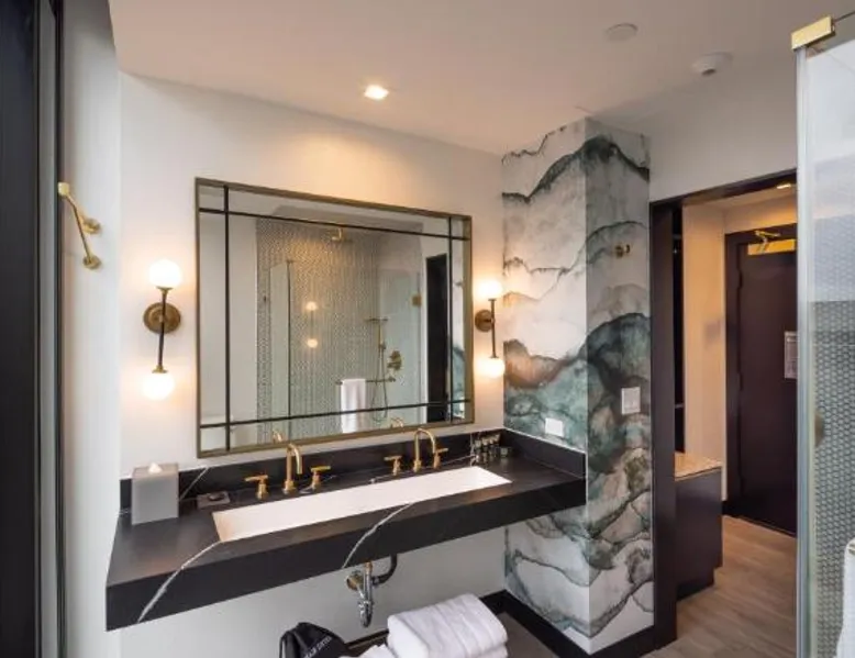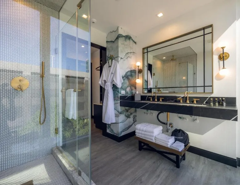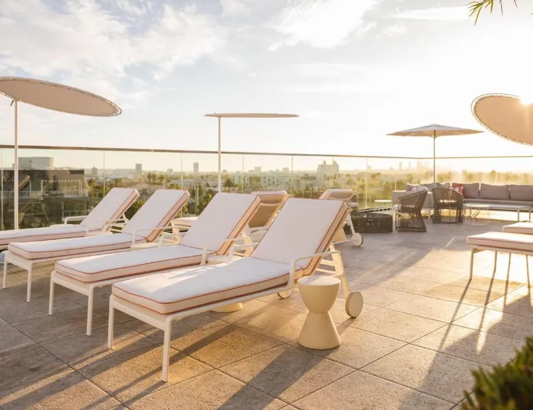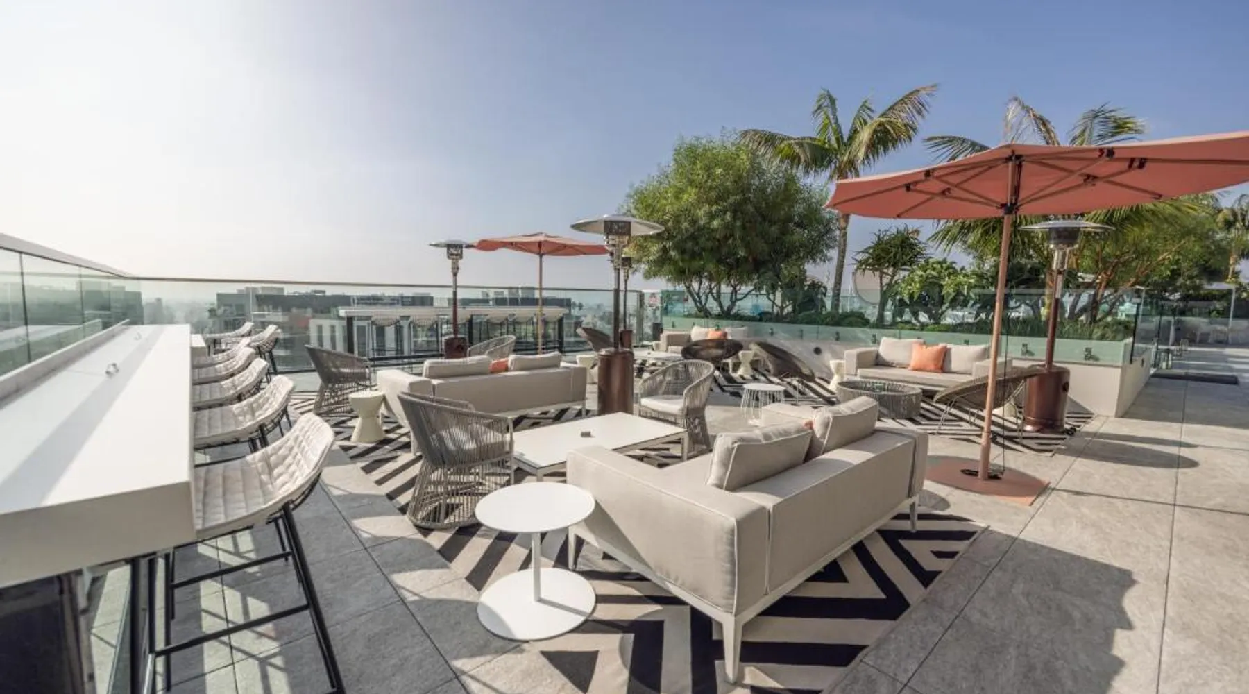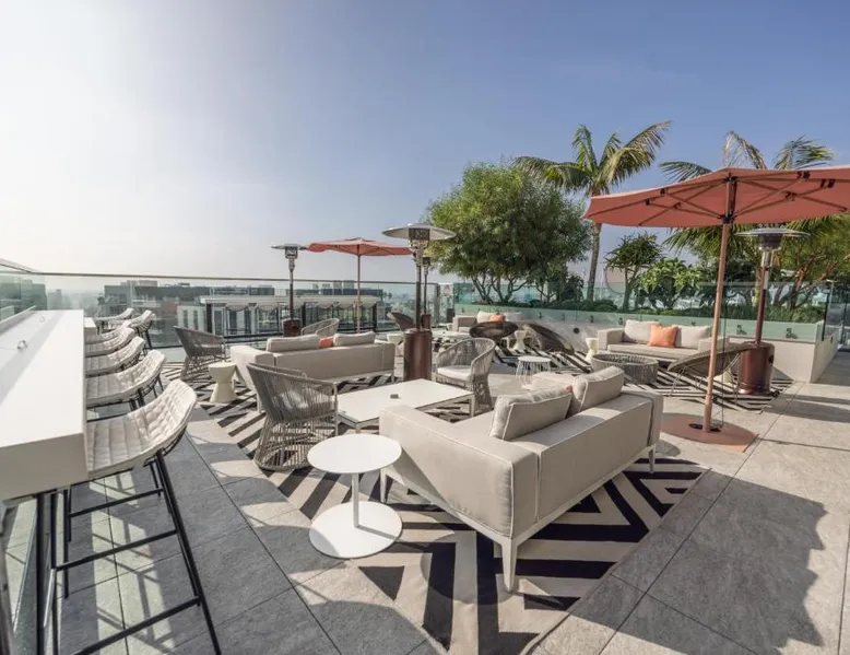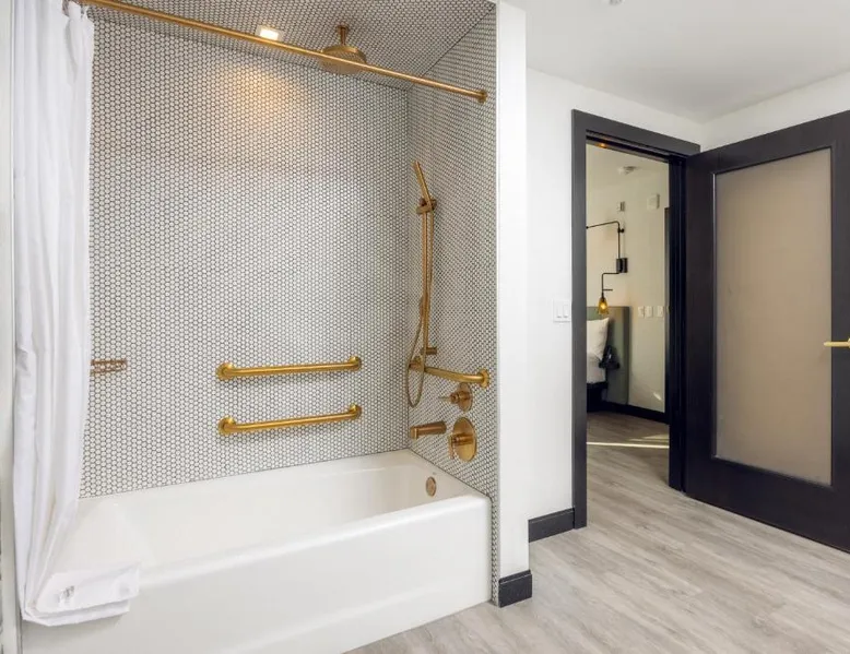 Elegant Accommodations: The Godfrey Hotel Hollywood in Los Angeles offers stylish rooms with air-conditioning, balconies, and modern amenities. Each room includes a private bathroom, work desk, and free WiFi. Exceptional Facilities: Guests can enjoy a swimming pool with a view, fitness center, sun terrace, restaurant, and bar. Additional facilities include a fitness room, 24-hour front desk, concierge service, and free toiletries. Dining Experience: The modern, family-friendly restaurant serves American cuisine for lunch and dinner, complemented by cocktails. Outdoor seating areas provide relaxing spaces. Prime Location: Located 7.5 mi from Hollywood Burbank Airport, the hotel is near attractions such as Capitol Records Building (less than 0.6 mi) and Dolby Theater (1.2 mi). Guests appreciate the rooftop pool, bar, and convenient location. Featuring free toiletries and bathrobes, this quadruple room includes a private bathroom with a walk-in shower and a hairdryer. The air-conditioned quadruple room features a flat-screen TV, a tea and coffee maker, a safe deposit box, tumble dryer as well as city views. The unit has 2 beds.