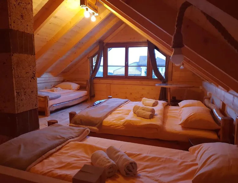 Comfortable Accommodations: Apartments Šekler in Kraljevo offers a 3-star apartment with a garden, terrace, restaurant, and free WiFi. Guests enjoy private bathrooms, fully equipped kitchens, and garden or mountain views. Dining Experience: The traditional restaurant serves local cuisine with continental breakfast featuring local specialties. Outdoor dining areas provide relaxing spaces for meals. Leisure Facilities: The property includes a children's playground, bike hire, and free on-site private parking. Additional amenities include a barbecue, fireplace, and outdoor furniture. Location and Activities: Located 48 mi from Morava Airport, the apartment is ideal for hiking and cycling. Free WiFi ensures connectivity during the stay. Featuring a private entrance, this apartment is consisted of of 1 living room, 3 separate bedrooms and 2 bathrooms with a shower and slippers. Guests will find a stovetop, a refrigerator, kitchenware and an oven in the fully equipped kitchen. The apartment also has a barbecue. The apartment features parquet floors, a seating area with a TV, a dining area, a wardrobe as well as garden views. The unit offers 7 beds.