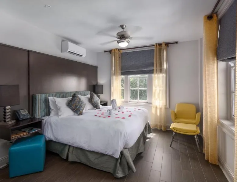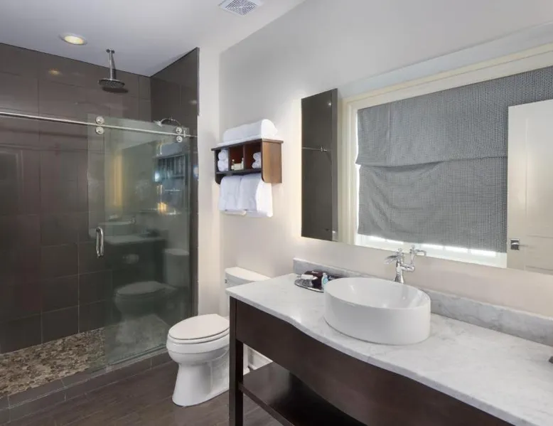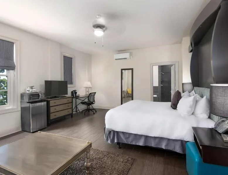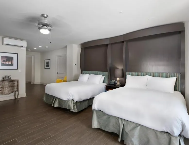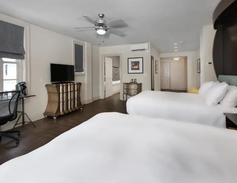 This historic Biloxi hotel features an expansive outdoor pool surrounded by towering trees and chic patio furniture. Just 5 minutes’ drive from Keesler Air Force Base, the White House Hotel offers free WiFi access in each room and throughout the property. A flat-screen satellite TV and a desk are included in each spacious room at the White House Hotel. Free toiletries and a bath or shower are provided in the private bathrooms. An on-site restaurant and bar is available at the White House Hotel, an Ascend Hotel Collection Member. A furnished rooftop terrace offers scenic beachfront views. A fully-equipped fitness center and 24-hour desk are also provided. Bay Breeze Golf Course is 8 minutes’ drive from the property. Mississippi Coast Coliseum and Convention Center is also 8 minutes’ drive away. This room features highly rated comfortable double queen beds, and an oversize walk-in shower.
