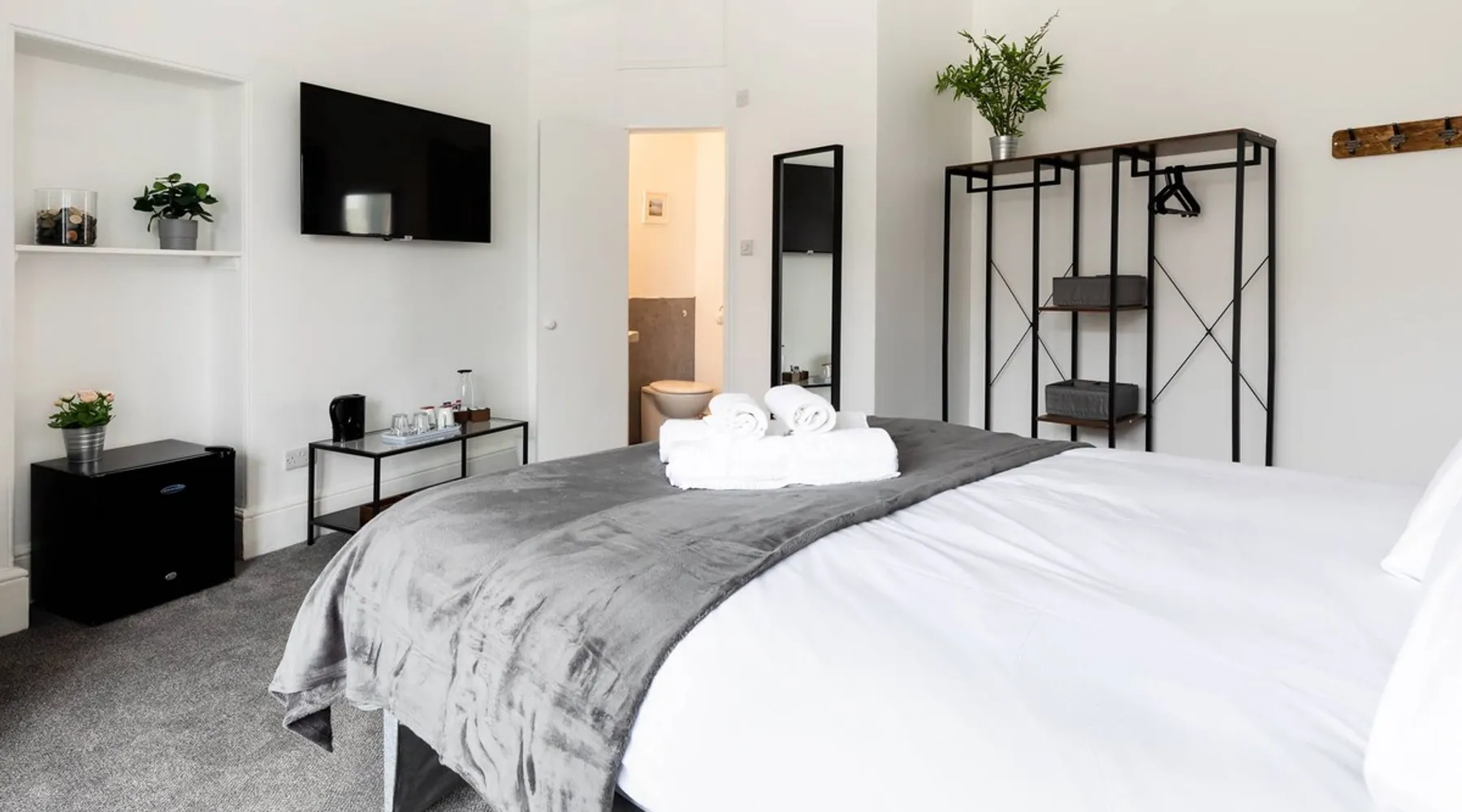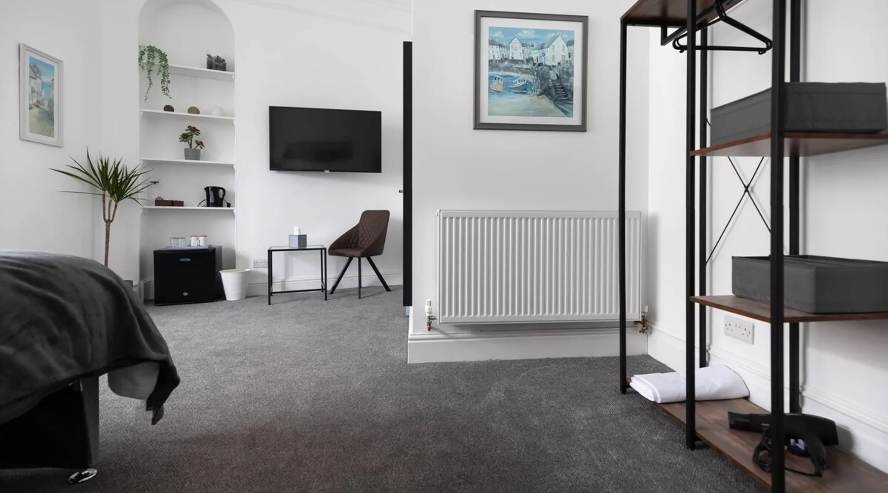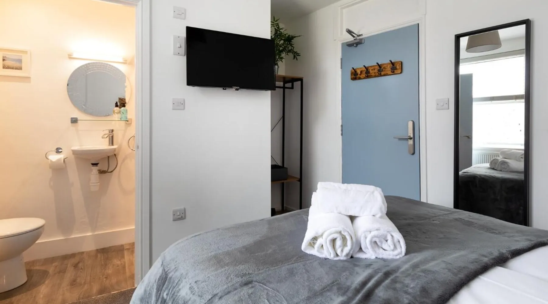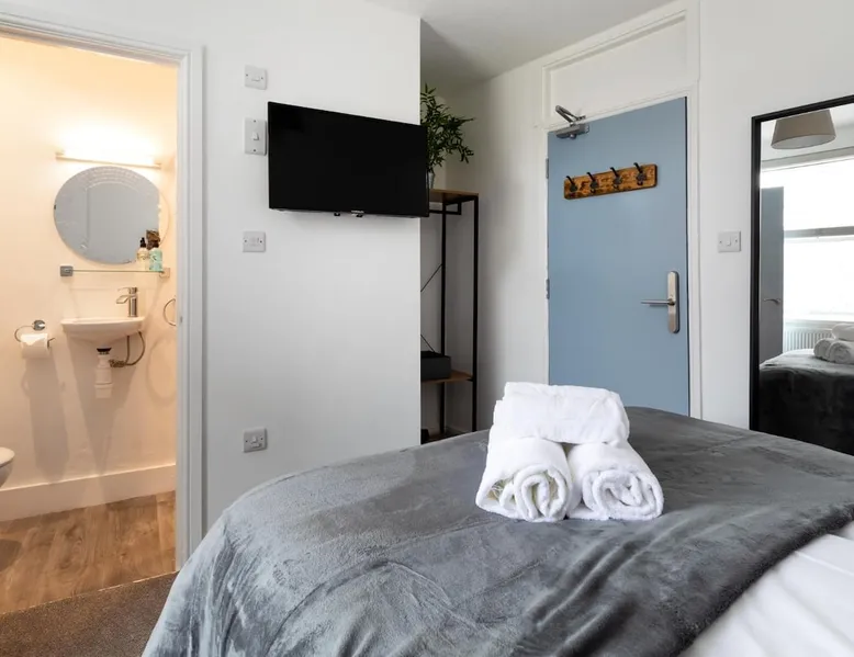 A cosy second-floor double room, perfect for a seaside getaway. As with all our rooms, a kettle, en suite bathroom and Smart TV are included. En suite bathroom tea and coffee superfast Wi-Fi massive smart TV reading lamps clothes storage bedside tables USB chargers. Guest access All the essential arrival information e.g door code is sent out the day before arrival. Other things to note If you have a general question please read all the property information on Airbnb. If you still can't find an answer to your question, please message us, we will respond within 24hrs.