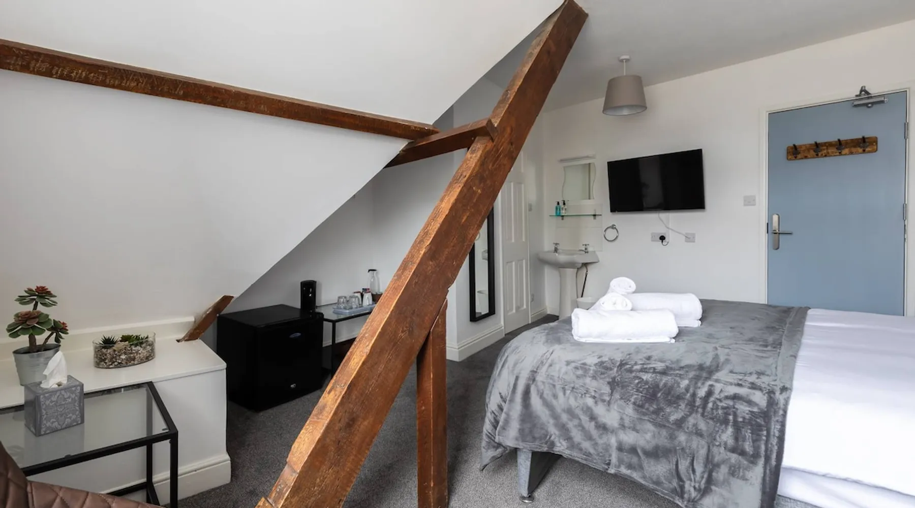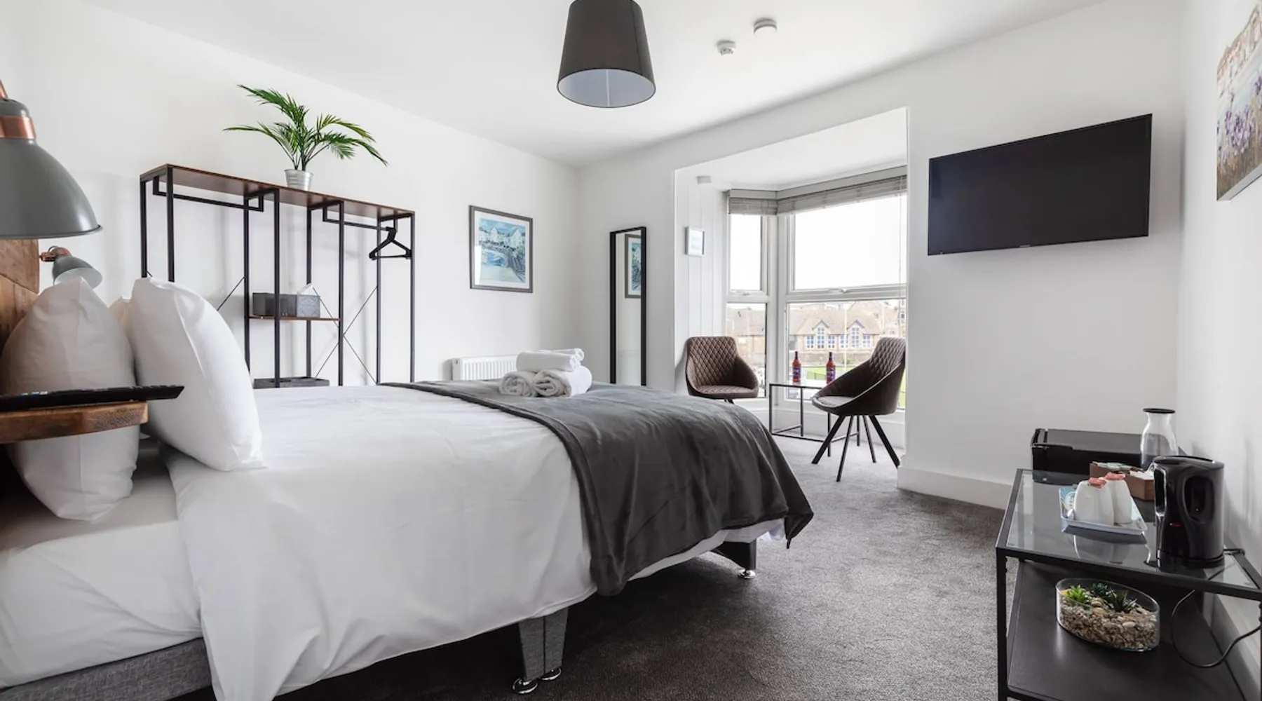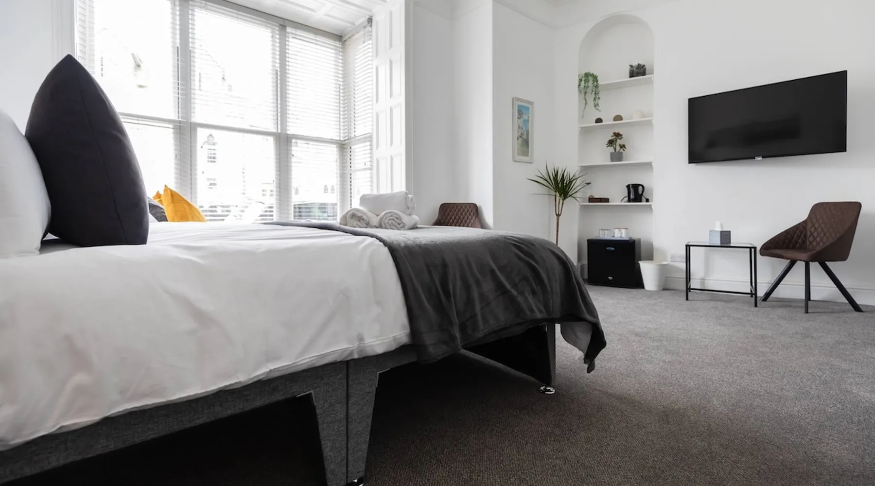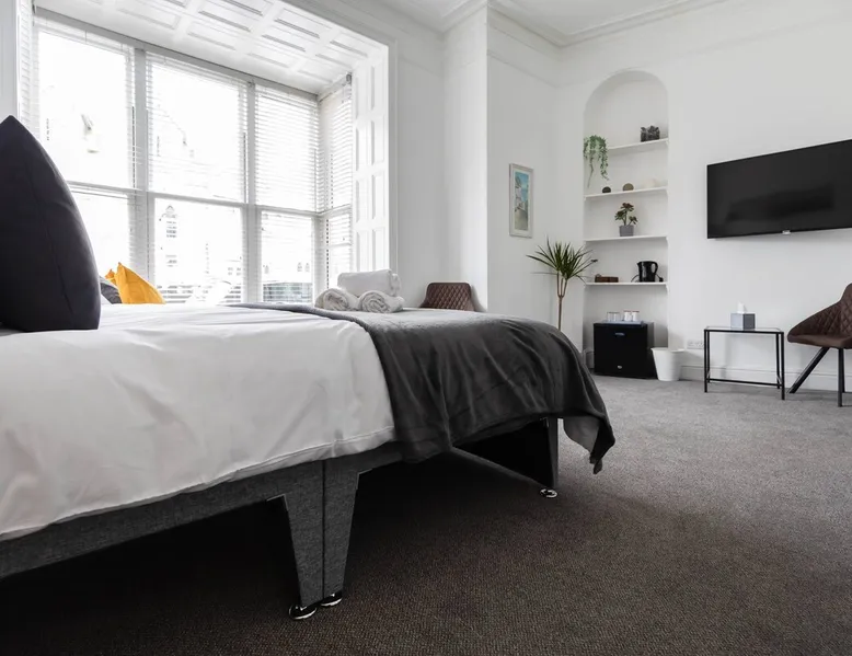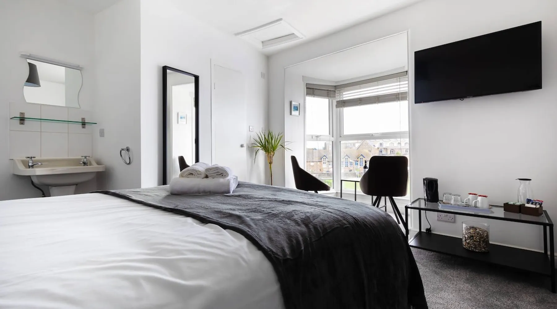 A cosy second-floor double room, perfect for a seaside getaway. As with all our rooms, a kettle, en suite bathroom and Smart TV are included. En suite bathroom tea and coffee superfast Wi-Fi massive smart TV reading lamps clothes storage bedside tables USB chargers. Guest access All the essential arrival information e.g door code is sent out the day before arrival. Other things to note If you have a general question please read all the property information on Airbnb. If you still can't find an answer to your question, please message us, we will respond within 24hrs.