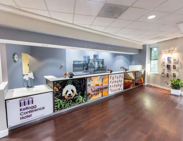 Located in campus of Gallaudet University, the hotel is located in an area listed in the National Register of Historic Places, with architecture dating back to the early 1800’s and beautiful grounds. During your stay you can take a stroll through the 99-acre campus or spend the day sightseeing on Capitol Hill. Alternatively you can go shopping in DuPont Circle or explore the historic homes, fine restaurants and stores, and lively nightclubs of Georgetown. As one of the few Washington, DC hotels just minutes away from Union Station, the hotel is also just 1.9 mi from the United States Capitol, the Library of Congress, the Washington Monument, the Lincoln Memorial and the Smithsonian Institute. The Standard Queen Suite comes with multiple sleeping options, with a cozy Queen bed along with a sofa bed. In Kellogg Conference Hotel’s standard 325 square foot rooms, it’s still offered with the beautiful convenience of a marble-topped desk with an ergonomic chair, mini-fridge, in-room safe, two phones and a 27-inch flat-screen TV with cable channels. These rooms are also equipped with High-speed Internet access, Coffee maker with complimentary coffee, Free local phone calls, Hairdryer, Iron/ironing board, Light flashing doorbells and bed vibrating alarm clocks. Self parking available in our Parking Garage (additional fee)