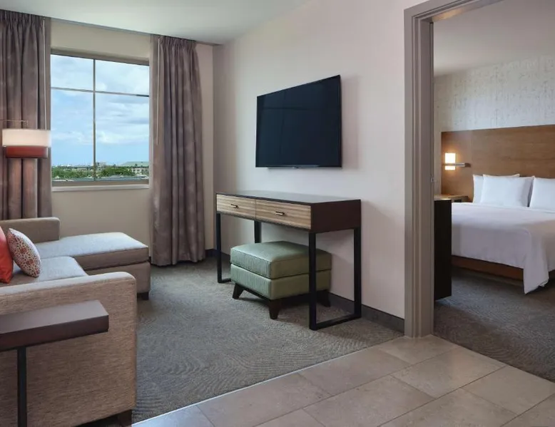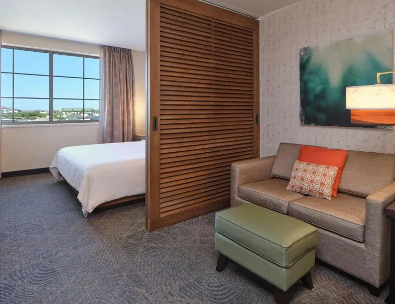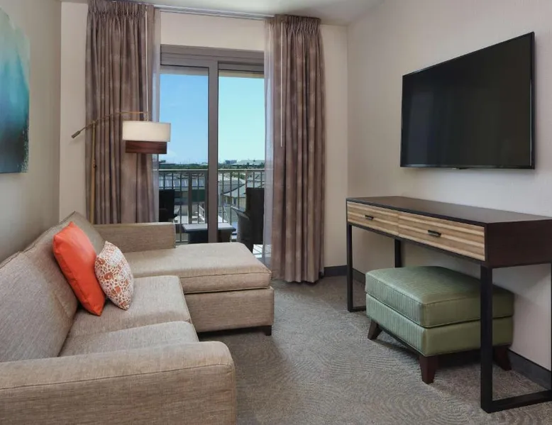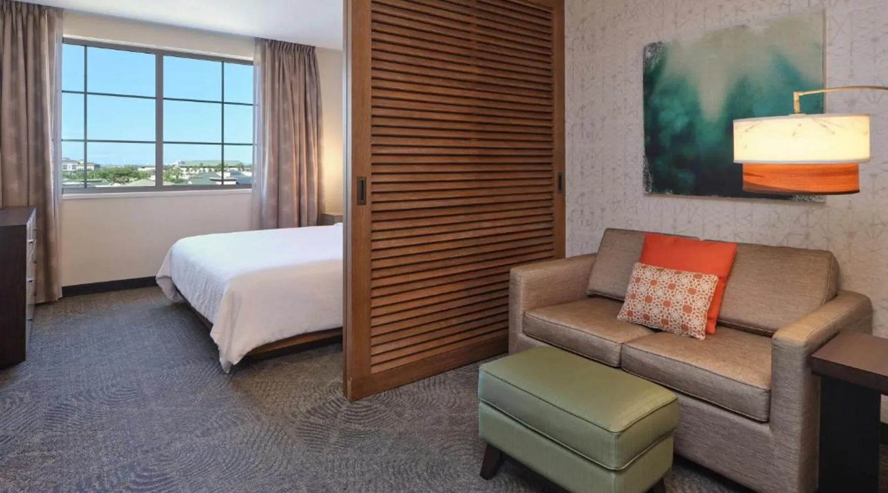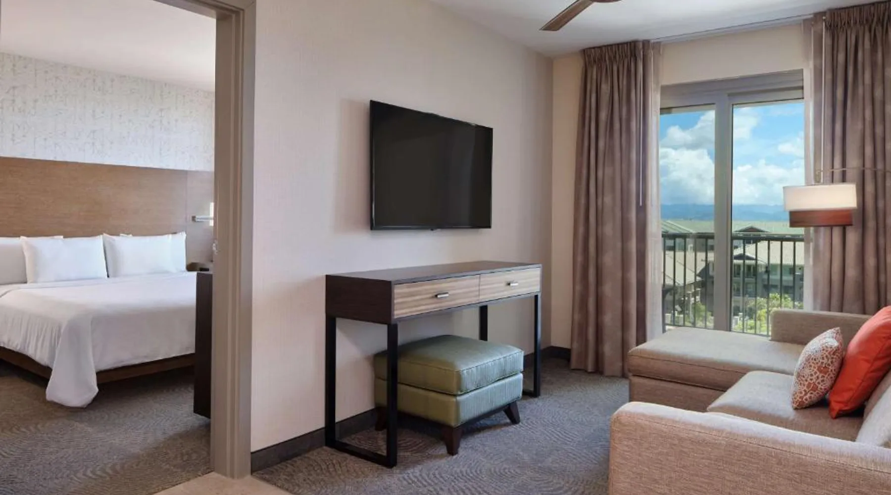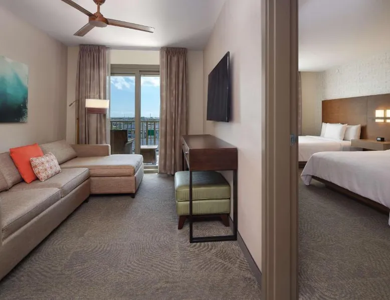 Comfortable Accommodations: Embassy Suites By Hilton Oahu Kapolei in Kapolei offers family rooms with balconies, private bathrooms, and modern amenities. Each room includes air-conditioning, a work desk, and free WiFi. Dining and Leisure: Guests can enjoy a swimming pool with a view, fitness center, restaurant, and bar. The family-friendly restaurant serves American, Japanese, and local cuisines, offering lunch, dinner, and cocktails. Breakfast includes local specialties, fresh pastries, and a hot tub. Convenient Location: Located 17 mi from Honolulu International Airport, the hotel is near attractions such as USS Bowfin Submarine Museum & Park (14 mi) and Pearl Harbor (14 mi). Free on-site parking and a 24-hour front desk enhance the stay. This studio is air-conditioned and features a flat-screen TV with cable channels, a tea and coffee maker, a seating area and a safe deposit box. The unit offers 2 beds.