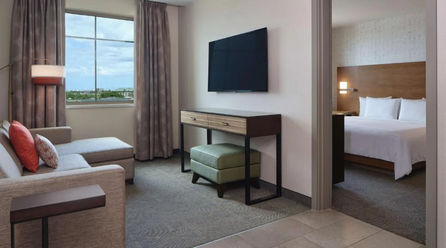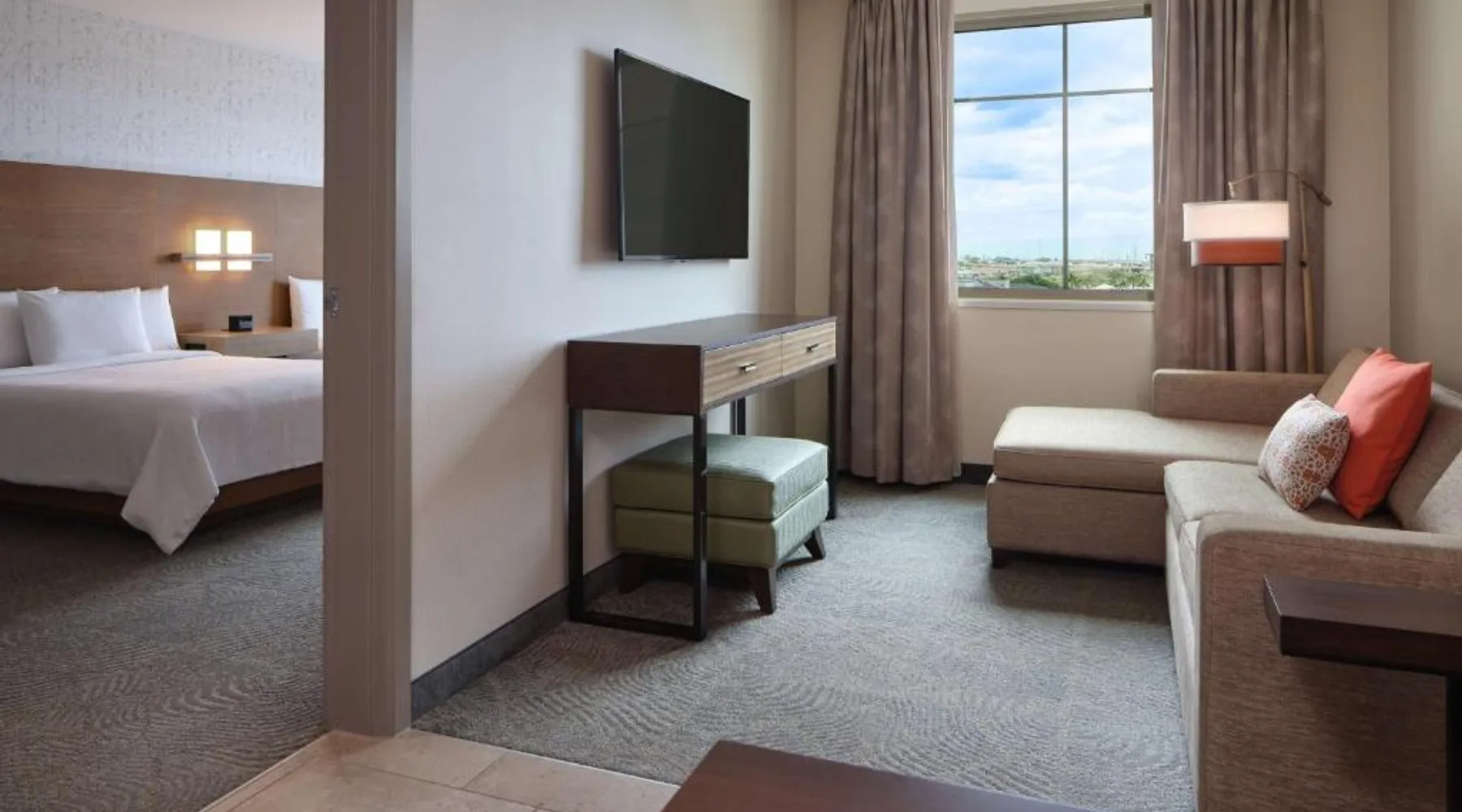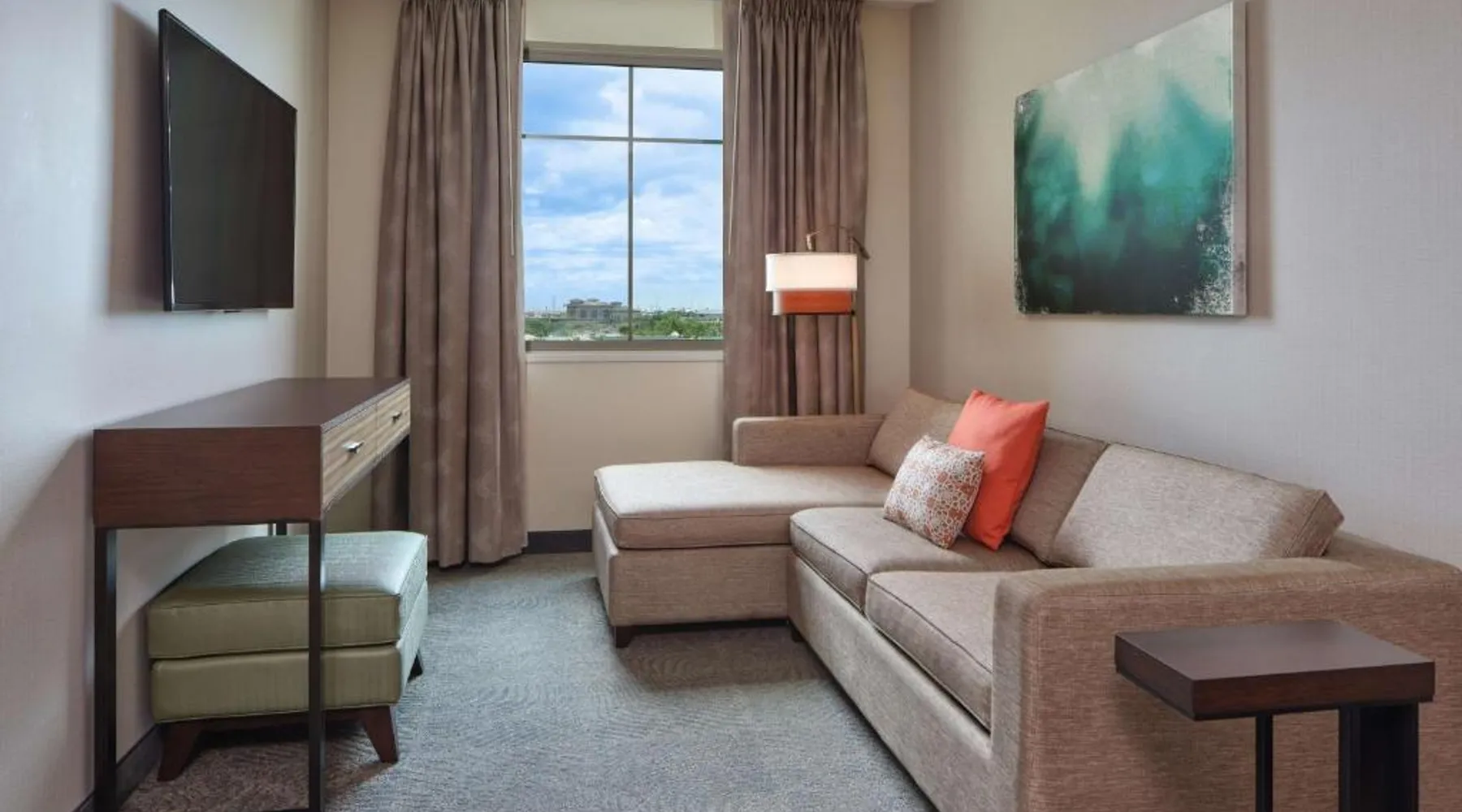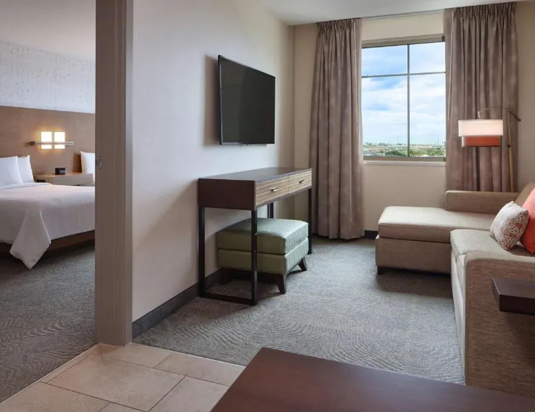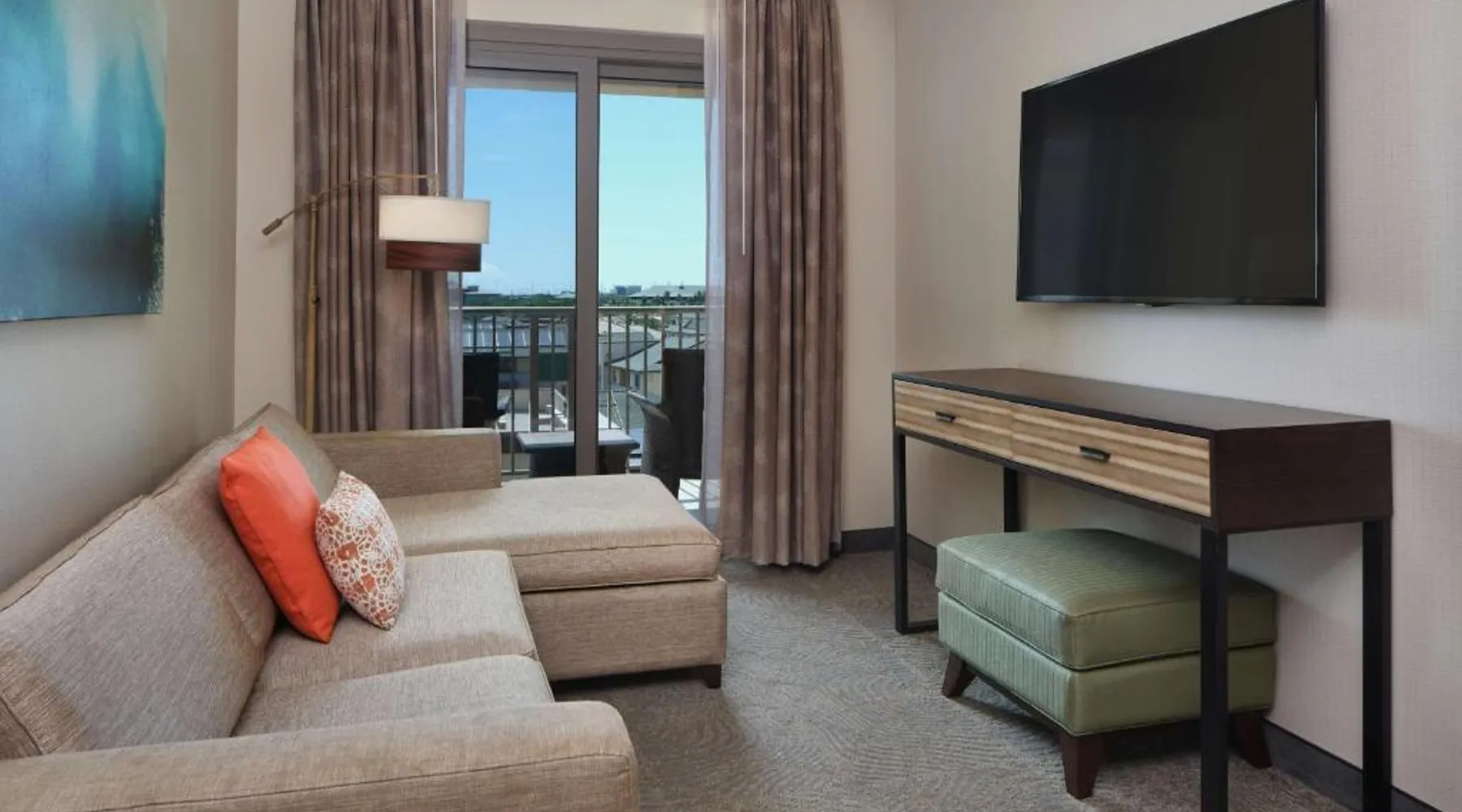 Comfortable Accommodations: Embassy Suites By Hilton Oahu Kapolei in Kapolei offers family rooms with balconies, private bathrooms, and modern amenities. Each room includes air-conditioning, a work desk, and free WiFi. Dining and Leisure: Guests can enjoy a swimming pool with a view, fitness center, restaurant, and bar. The family-friendly restaurant serves American, Japanese, and local cuisines, offering lunch, dinner, and cocktails. Breakfast includes local specialties, fresh pastries, and a hot tub. Convenient Location: Located 17 mi from Honolulu International Airport, the hotel is near attractions such as USS Bowfin Submarine Museum & Park (14 mi) and Pearl Harbor (14 mi). Free on-site parking and a 24-hour front desk enhance the stay. This studio is air-conditioned and features a flat-screen TV with cable channels, a tea and coffee maker, a seating area and a safe deposit box. The unit offers 2 beds.