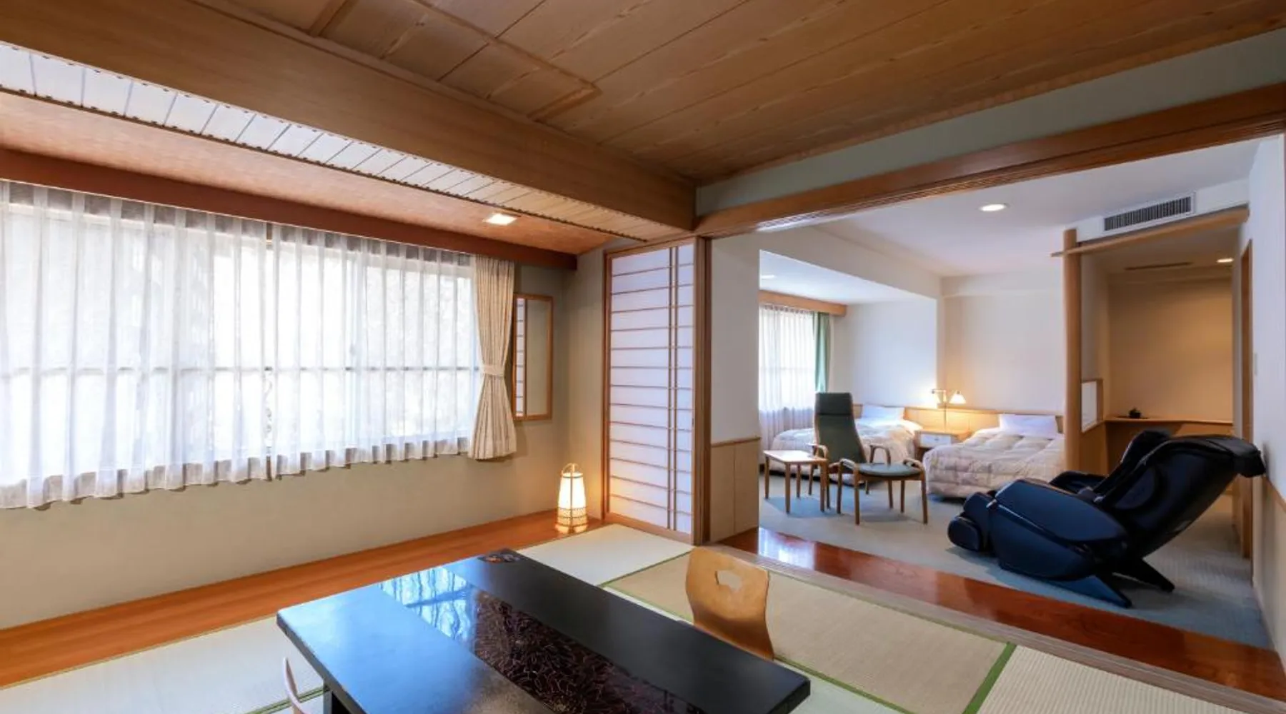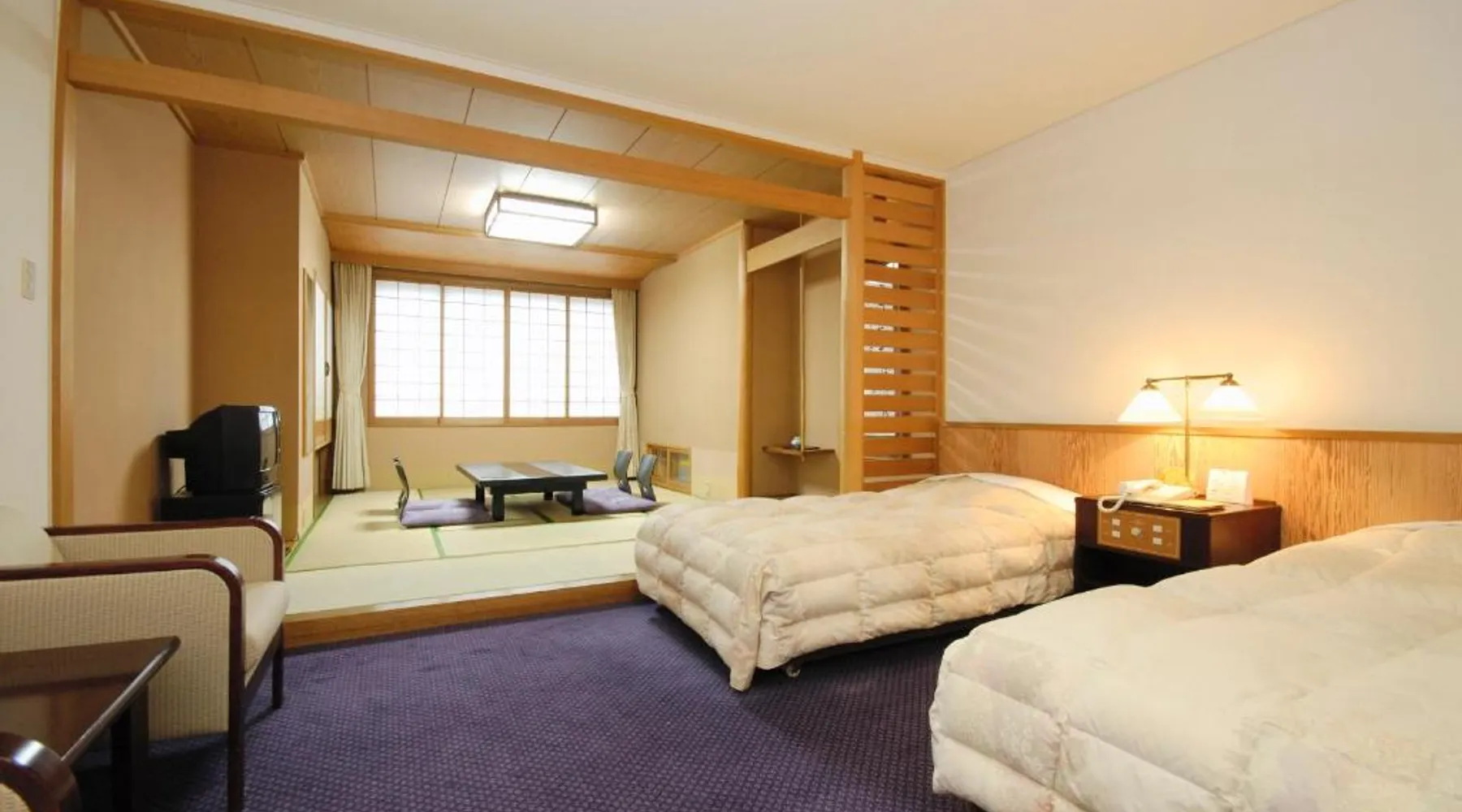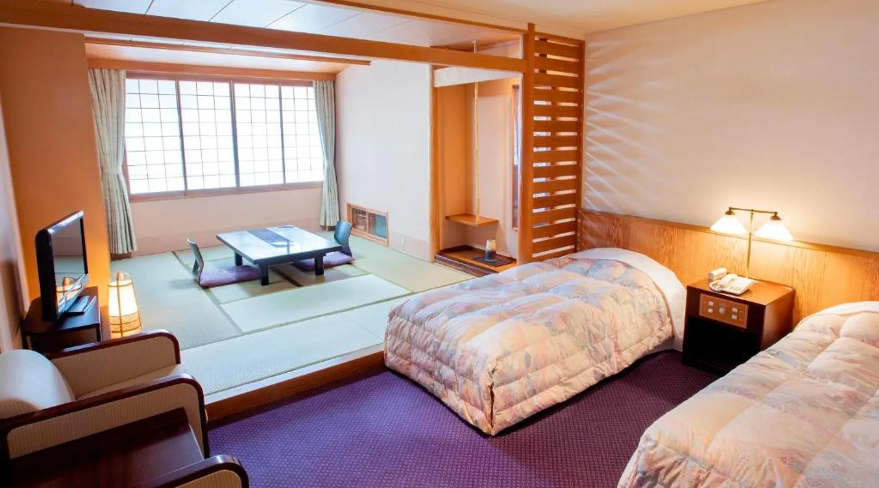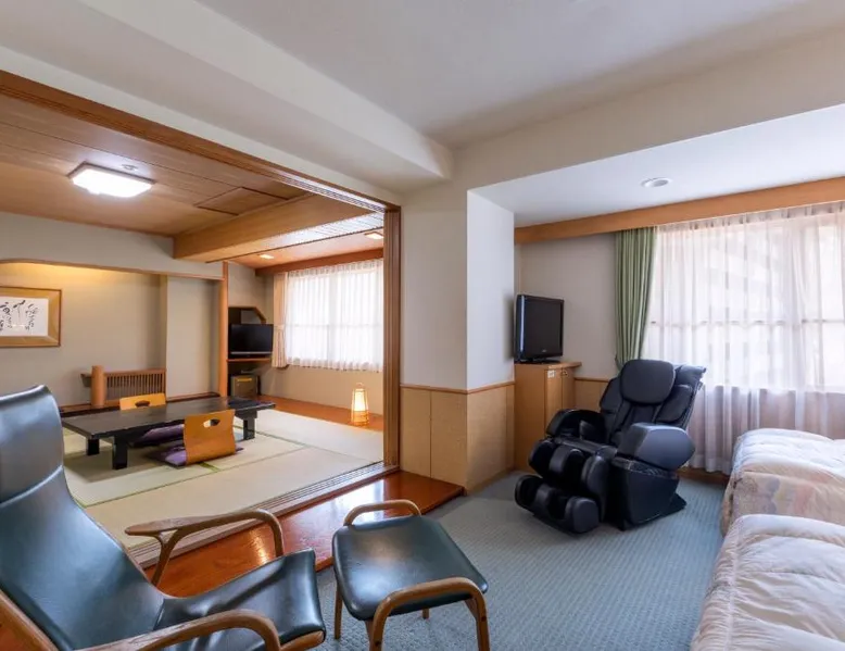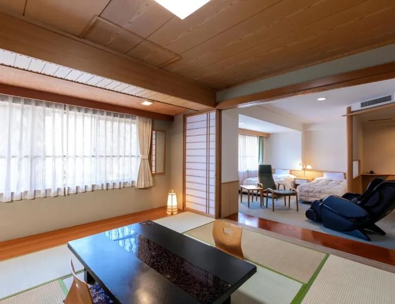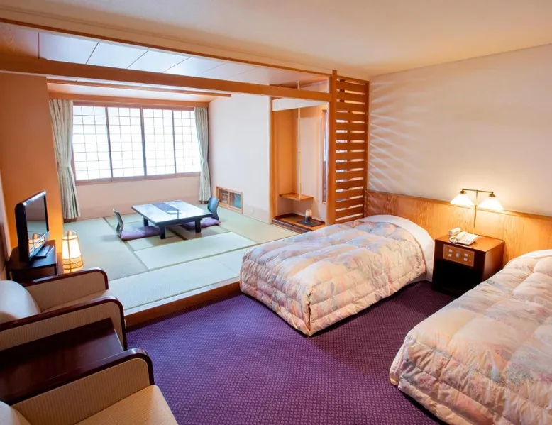 Noboribetsu Sekisui Tei is a 20-minute drive from JR Noboribetsu Station, and a 15-minute walk from the Jigokudani Valley. It offers 3 public hot-spring baths, free parking on site and free internet in public areas. The hotel is a 1-hour drive from the New Chitose Airport and a 2-hour drive from JR Sapporo station. A 2-way shuttle service is available with an advance reservation on a chargeable basis. Japanese-style guest rooms feature tatami (woven straw) flooring with traditional futon bedding. Each room is equipped with a fridge and a flat-screen TV with satellite channels. Sekisui Tei Noboribetsu offers both indoor and outdoor hot-spring baths. Some can be reserved for private use at a cost. Guests can also unwind in the sauna room or enjoy duty-free shopping at on-site shops. Guests can enjoy both breakfast and dinner at the dining room. Offering free toiletries, this quadruple room includes a private bathroom with a bath, a shower and a hairdryer. The air-conditioned quadruple room offers a flat-screen TV with satellite channels, a seating area, a wardrobe, an electric kettle as well as mountain views. The unit offers 2 beds.