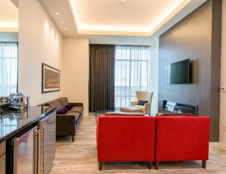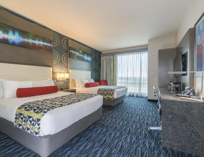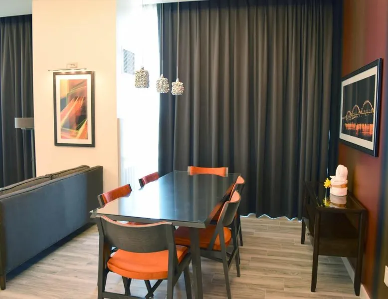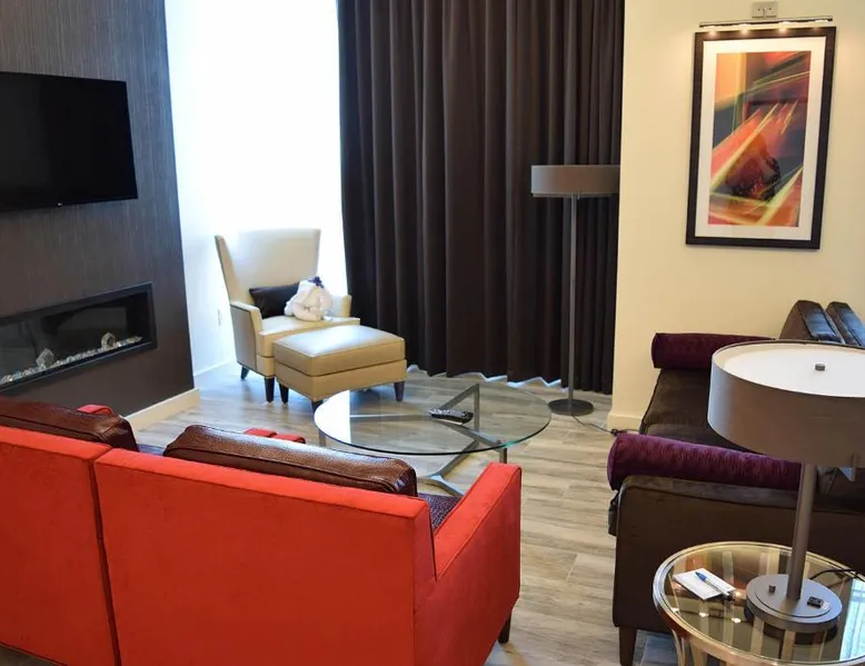 Comfortable Accommodations: Rooms feature air-conditioning, private bathrooms, city views, and modern amenities. Guests enjoy free WiFi, flat-screen TVs, and comfortable beds. Dining and Leisure: The resort offers a family-friendly restaurant serving American, pizza, seafood, steakhouse, local, and barbecue grill cuisines. Additional facilities include a fitness center, indoor swimming pool, spa, and casino. Convenient Location: Located in Davenport, the resort is 11 mi from Quad City International Airport and near attractions such as Fryxell Geology Museum (8.7 mi) and Adler Theater (8.7 mi). Free on-site parking is available. This suite features a fireplace. This spacious suite features 1 bedroom, a seating area and 2 bathrooms with a bath and a shower. The air-conditioned suite features a flat-screen TV with cable channels, a coffee machine, a dining area, a wardrobe as well as city views. The unit has 1 bed.