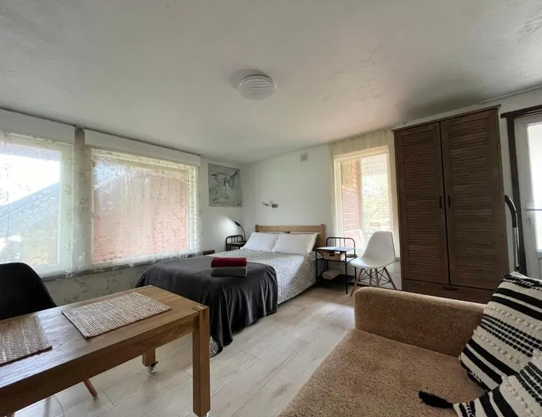 Comfortable Accommodations: Vila Junda in Neringa offers a spacious apartment with a garden and terrace. Free WiFi is available throughout the property. Outdoor Amenities: Guests can enjoy an outdoor fireplace, seating area, and picnic spots. The terrace provides lake and garden views, perfect for relaxation. Convenient Facilities: The apartment includes air-conditioning, a kitchenette, and a private bathroom. Additional amenities include bicycle parking, bike hire, and barbecue facilities. Local Attractions: Pervalka Beach is 1.9 mi away, while the Amber Gallery and Thomas Mann Memorial Museum are 9.9 mi from the property. Palanga International Airport is 45 mi distant. This apartment has a balcony and a fully equipped kitchenette.