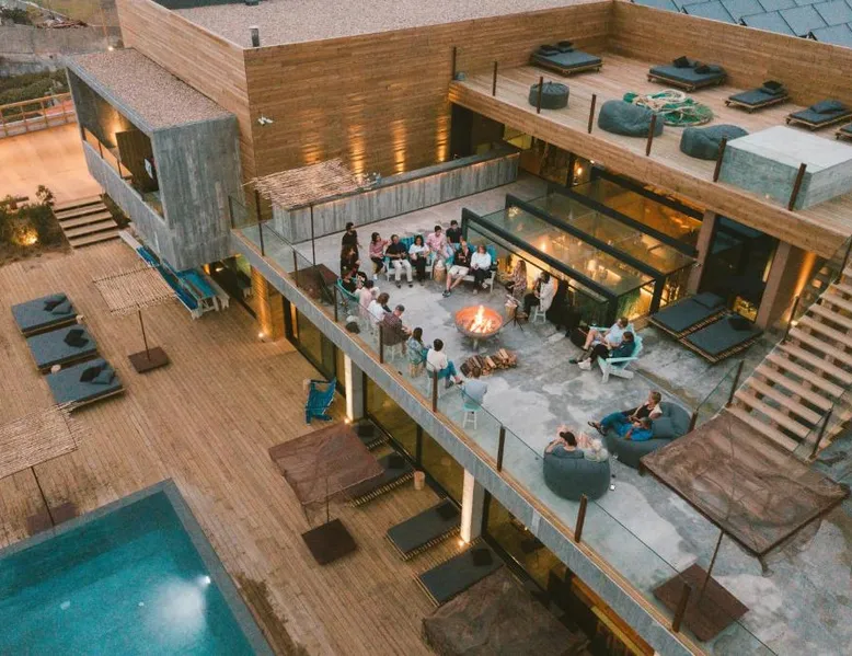 Beachfront Location: Noah Surf House Portugal in Torres Vedras offers direct beachfront access with Praia do Centro just yards away. Guests enjoy a sun terrace, open-air bath, and a year-round outdoor swimming pool. Comfortable Accommodations: Rooms feature private bathrooms, balconies, and terraces. Additional amenities include free WiFi, sofa beds, and modern conveniences such as electric kettles and fireplaces. Dining and Leisure: The hotel provides a restaurant and bar, offering a variety of dining options. Guests can also participate in yoga and fitness classes, pub crawls, and film nights. Nearby Attractions: Located 36 mi from Humberto Delgado Airport, the property is close to attractions like Baleal (21 mi) and Obidos Castle (29 mi). Free on-site private parking is available. This double room features a pool with a view. The spacious double room features a wardrobe, a safe deposit box, as well as a private bathroom boasting a shower and a hairdryer. The double room provides heating and a terrace. The unit has 5 beds.