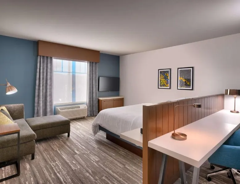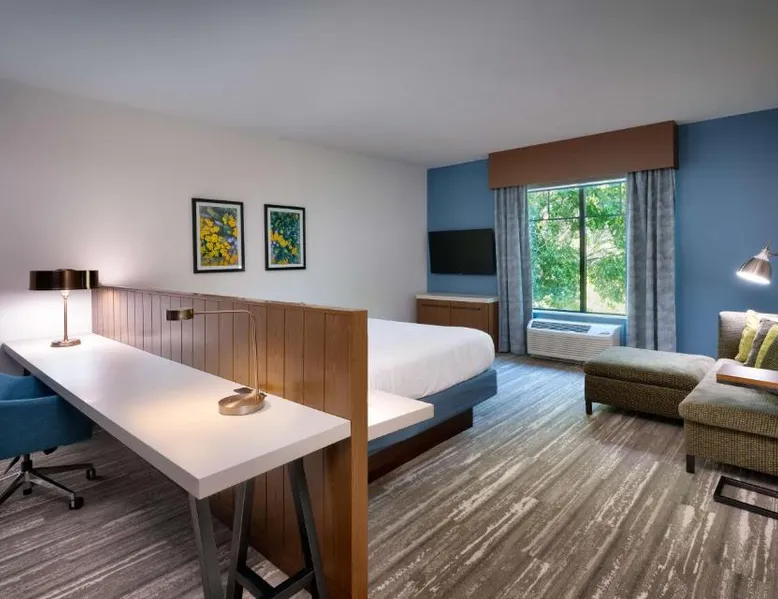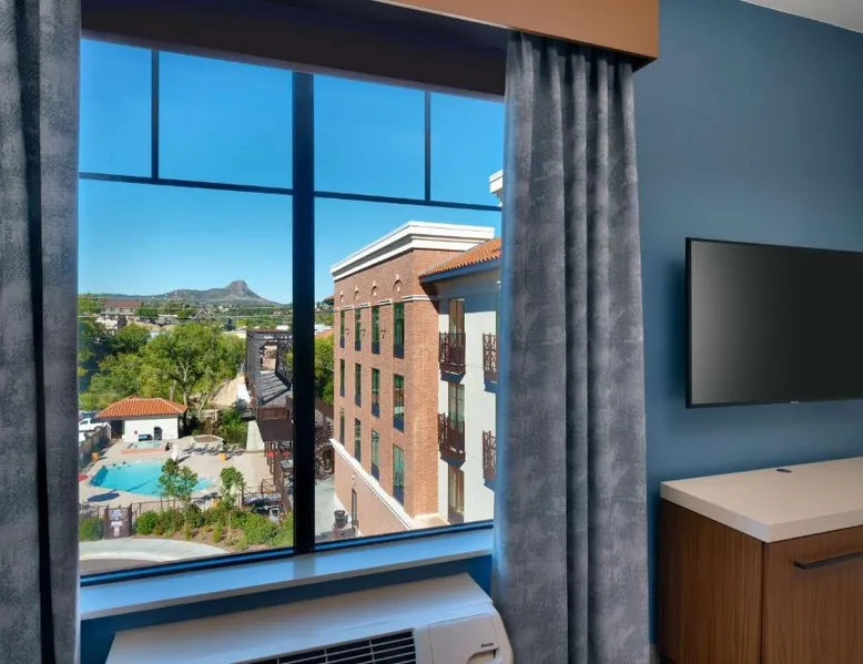 Comfortable Accommodations: Hilton Garden Inn Prescott Downtown, Az in Prescott offers family rooms with air-conditioning, balconies, and free WiFi. Each room includes a refrigerator, microwave, tea and coffee maker, and a work desk. Dining and Leisure: The family-friendly restaurant serves American cuisine for lunch and dinner. Guests can relax by the swimming pool with a view, outdoor fireplace, hot tub, and fitness room. Additional amenities include a bar, outdoor seating, and picnic area. Convenient Location: Located 8.7 mi from Ernest A Love Field Airport, the hotel is near Prescott College (less than 0.6 mi), Huckeba Art Gallery (5-minute walk), and Bucky O'Neill Monument (5-minute walk). Guests appreciate the convenient location, attentive staff, and room cleanliness. This suite is air-conditioned and has a flat-screen TV, a tea and coffee maker, a seating area and heating. The unit has 2 beds.