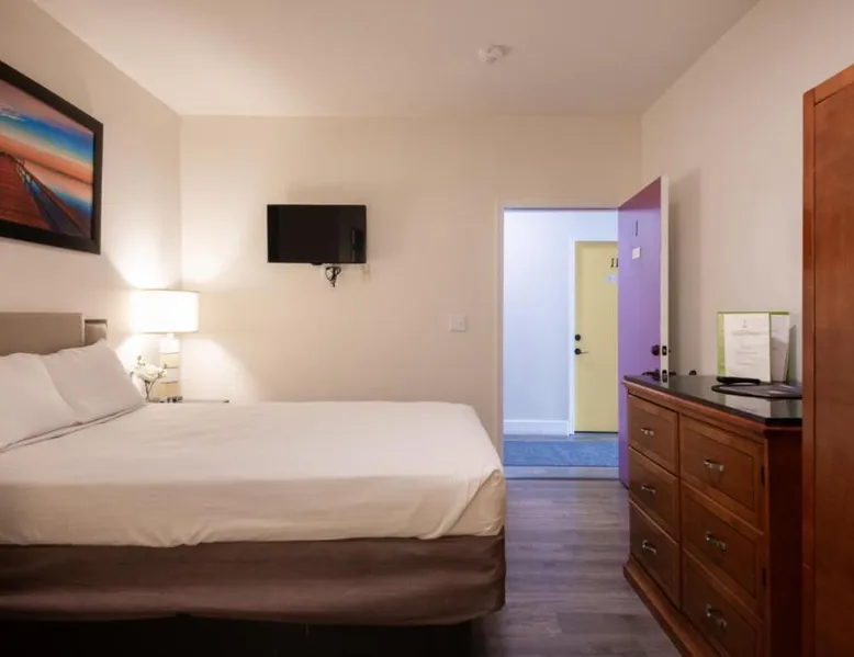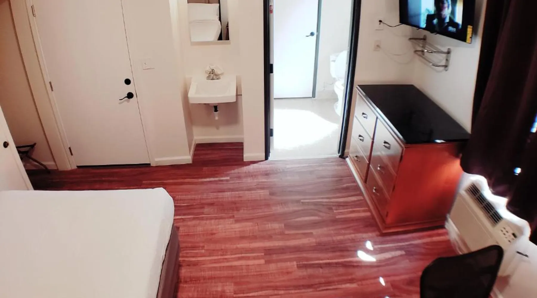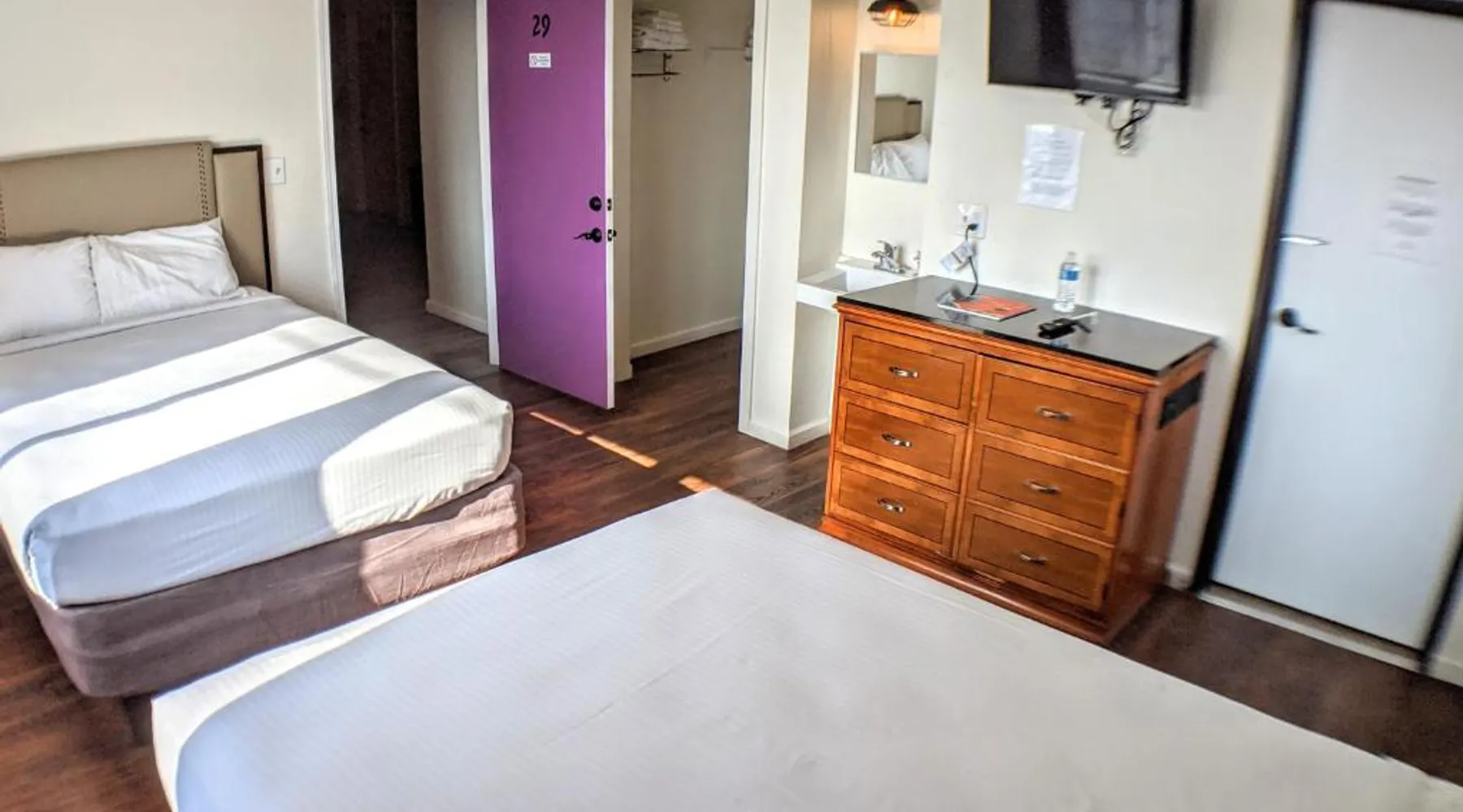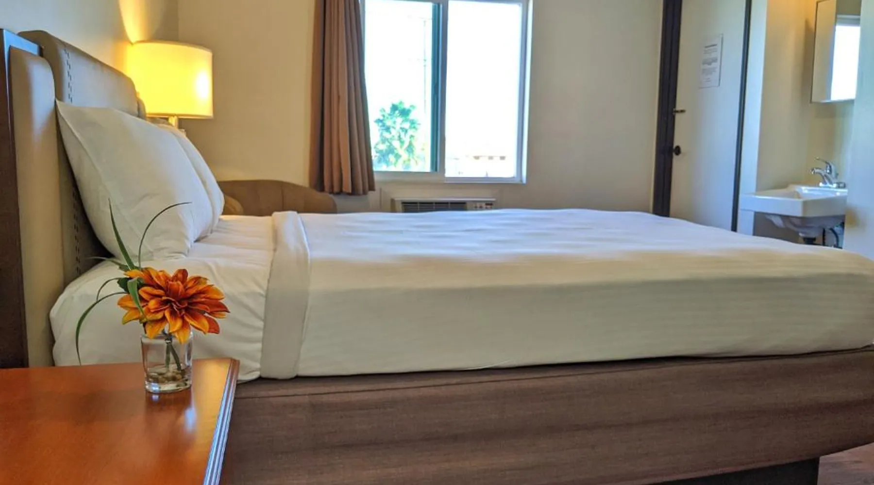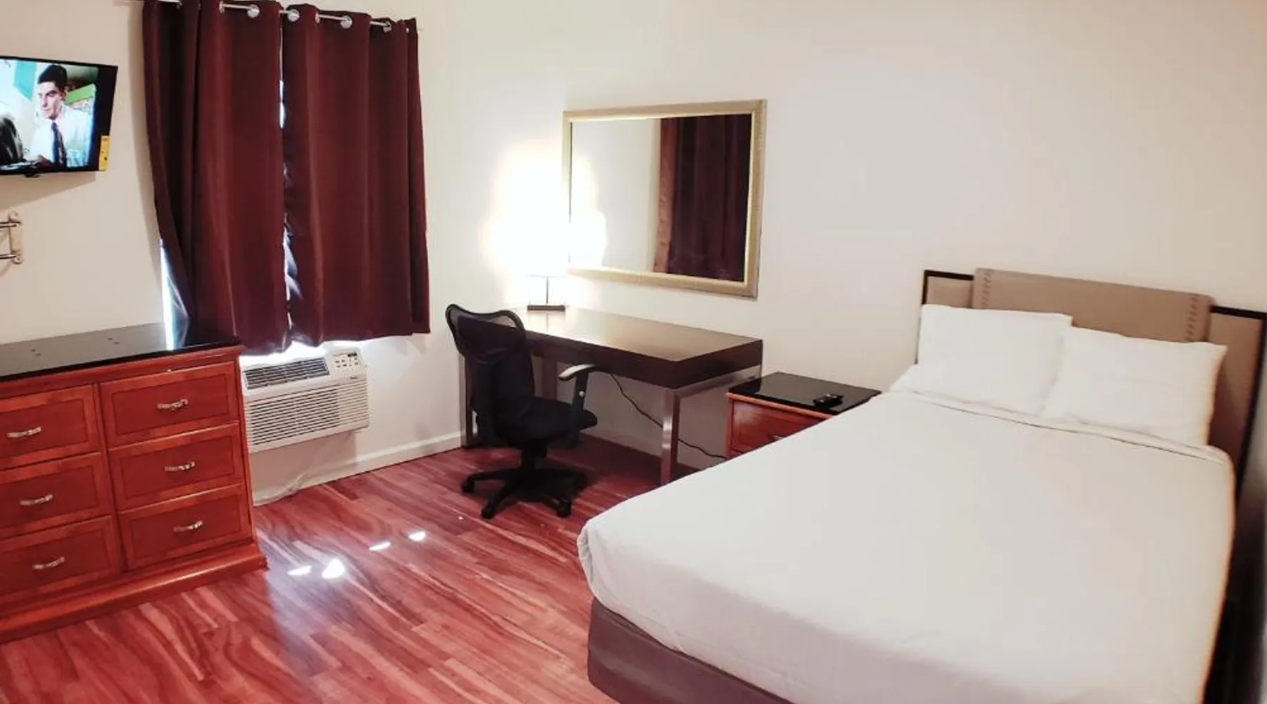 Comfortable Accommodations: Anchor Pointe Inn in Los Angeles offers air-conditioned rooms with private bathrooms, free WiFi, and parquet floors. Each room includes a refrigerator, TV, and wardrobe. Convenient Facilities: Guests can enjoy a lounge, outdoor seating area, and express check-in and check-out services. Additional amenities include a washing machine, work desk, and dressing room. Prime Location: Located 8.7 mi from Long Beach Airport, the inn is near attractions such as Battleship Iowa Museum (4.3 mi), Queen Mary (6.2 mi), and Venice Beach Boardwalk (25 mi). Guest Satisfaction: Guests appreciate the attentive staff, room cleanliness, and excellent value for money. This double room features a flat screen TV and air conditioning. Free coffee in morning at front desk.