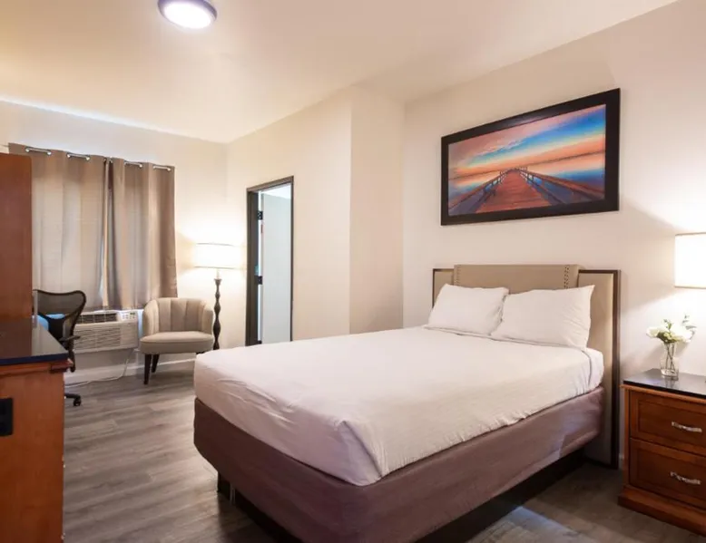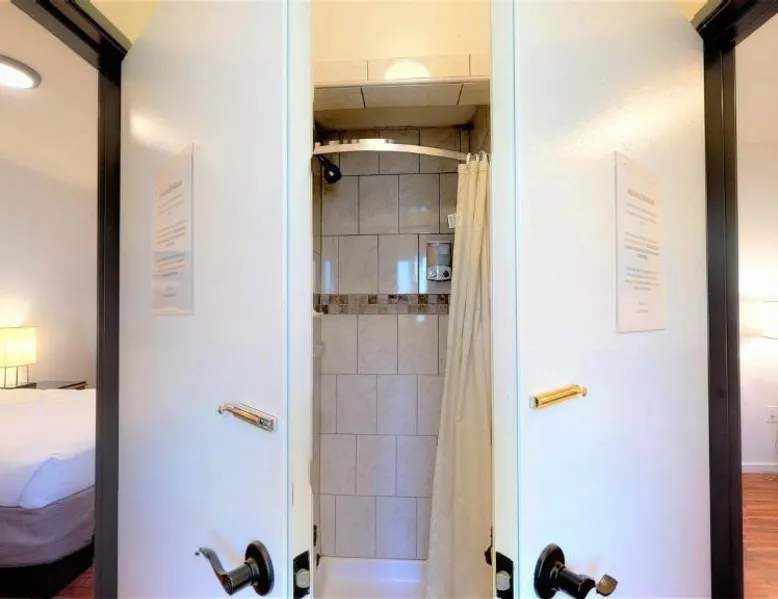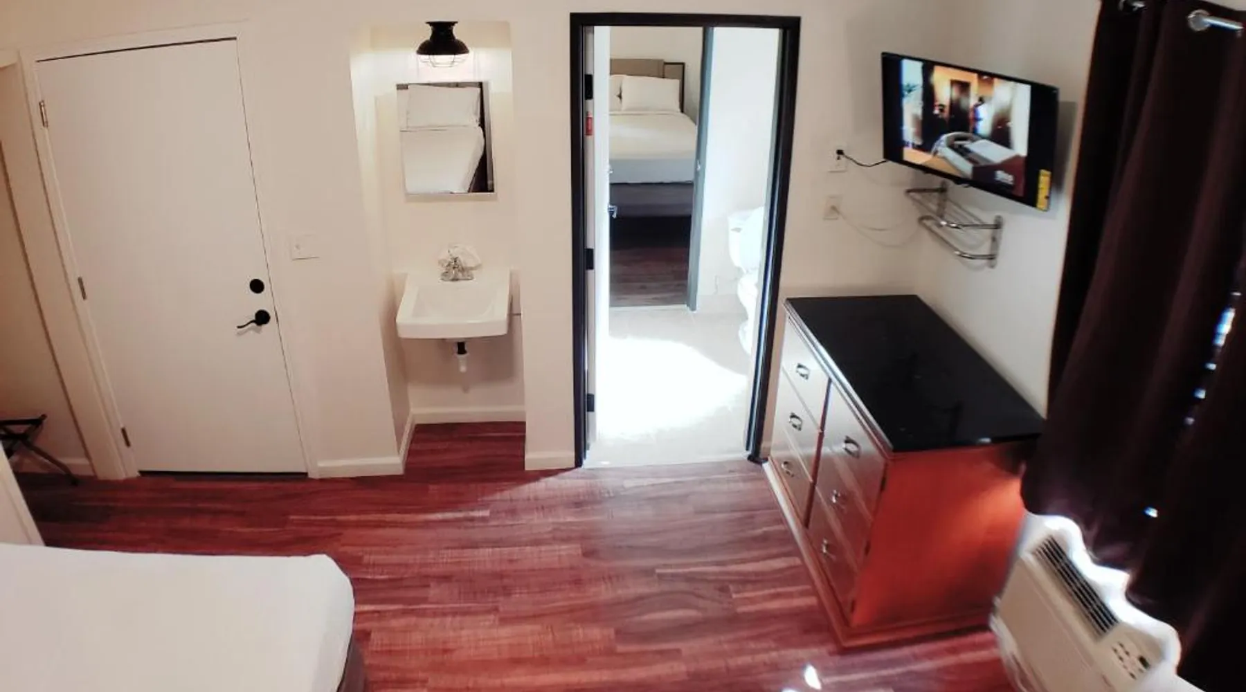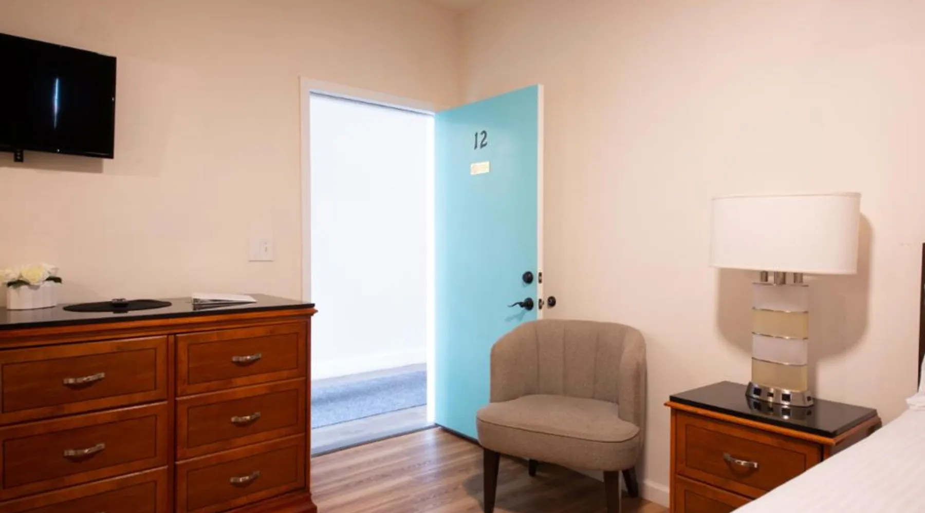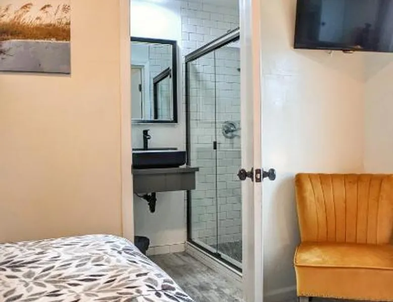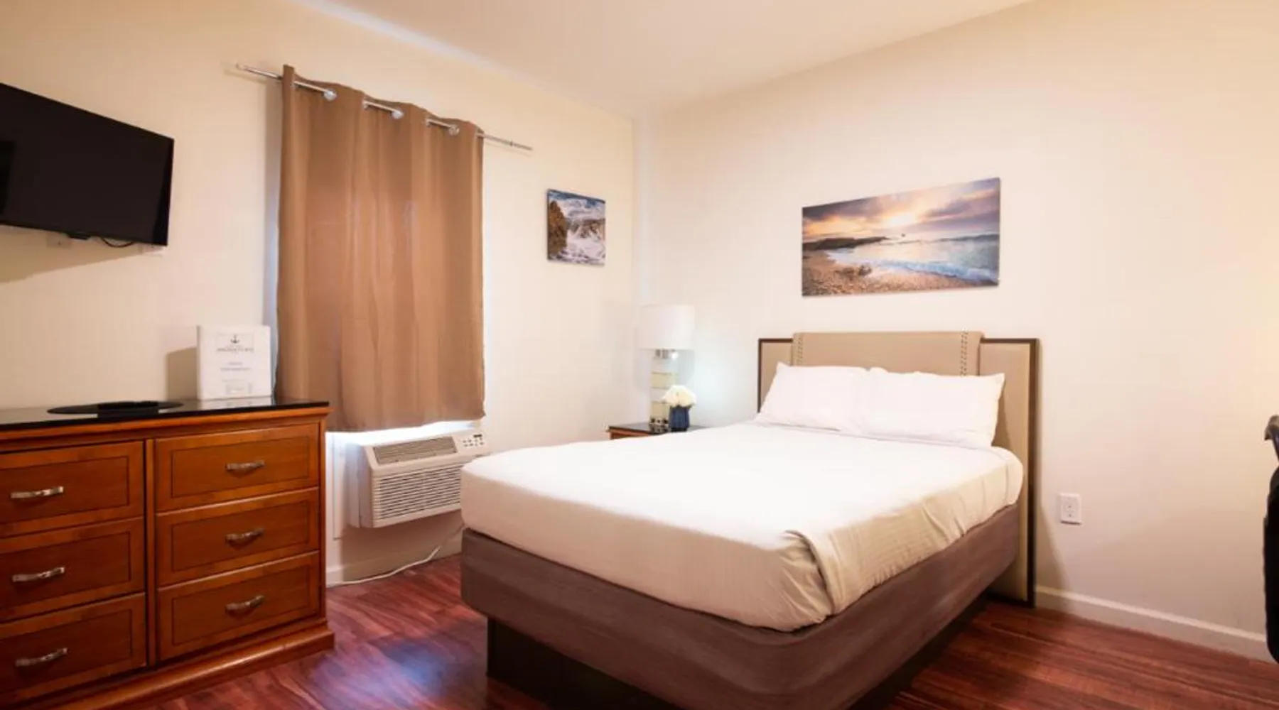 Comfortable Accommodations: Anchor Pointe Inn in Los Angeles offers air-conditioned rooms with private bathrooms, free WiFi, and parquet floors. Each room includes a refrigerator, TV, and wardrobe. Convenient Facilities: Guests can enjoy a lounge, outdoor seating area, and express check-in and check-out services. Additional amenities include a washing machine, work desk, and dressing room. Prime Location: Located 8.7 mi from Long Beach Airport, the inn is near attractions such as Battleship Iowa Museum (4.3 mi), Queen Mary (6.2 mi), and Venice Beach Boardwalk (25 mi). Guest Satisfaction: Guests appreciate the attentive staff, room cleanliness, and excellent value for money. This double room features a flat screen TV and air conditioning. Free coffee in morning at front desk.