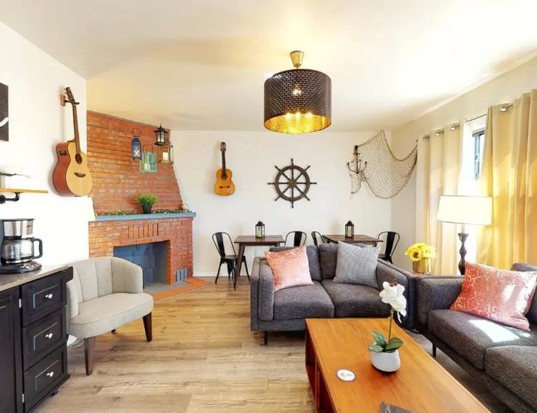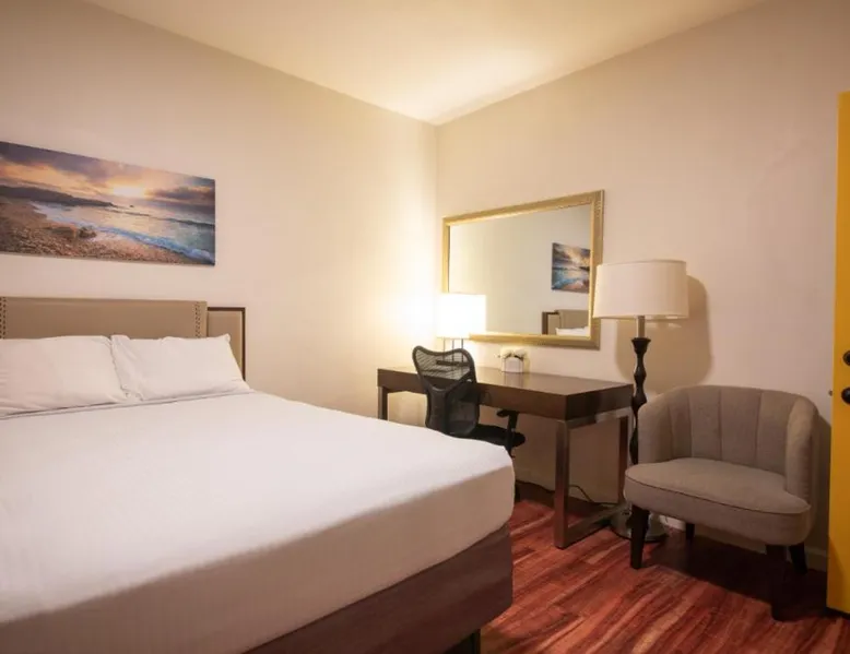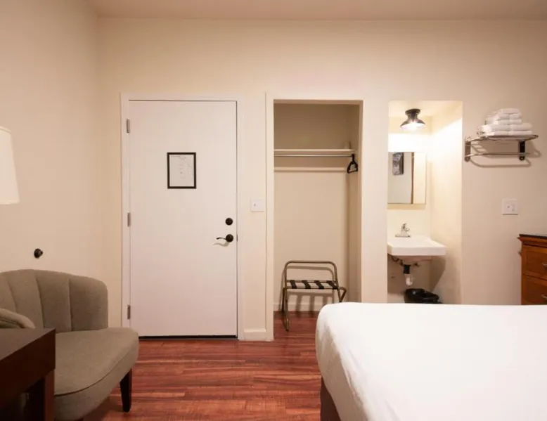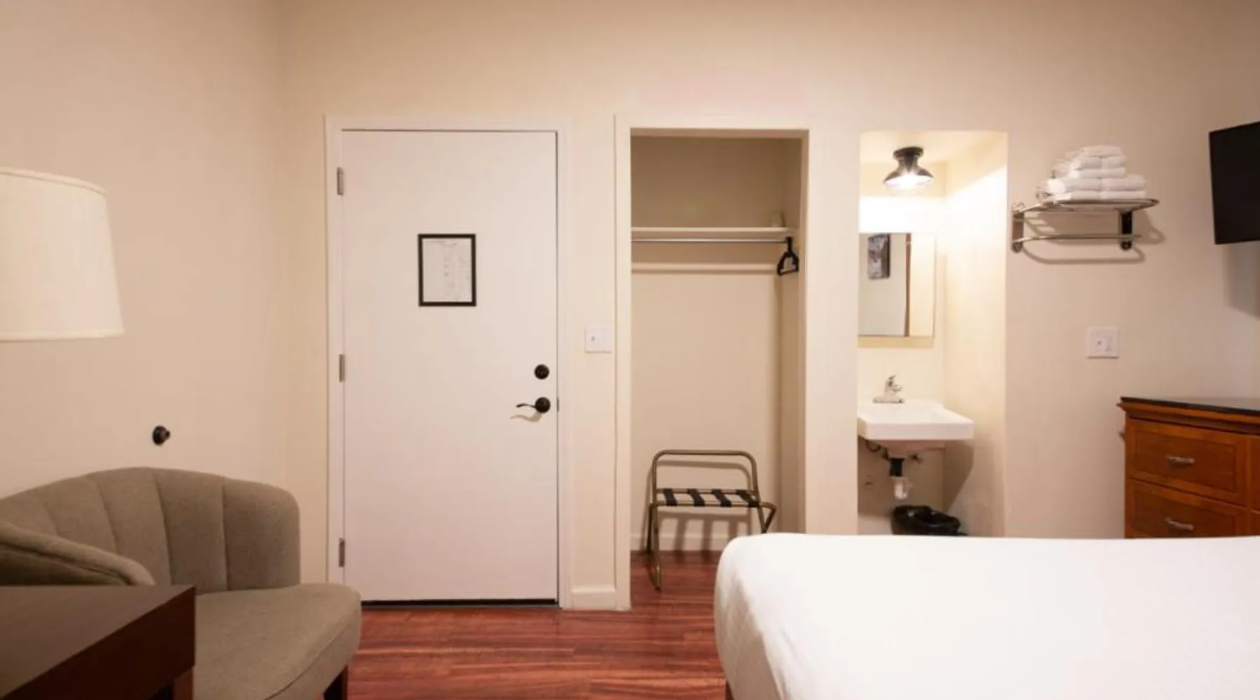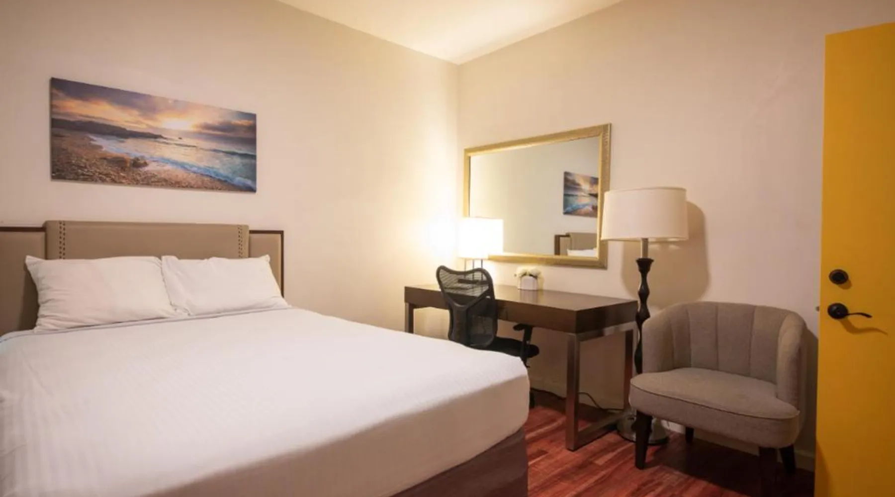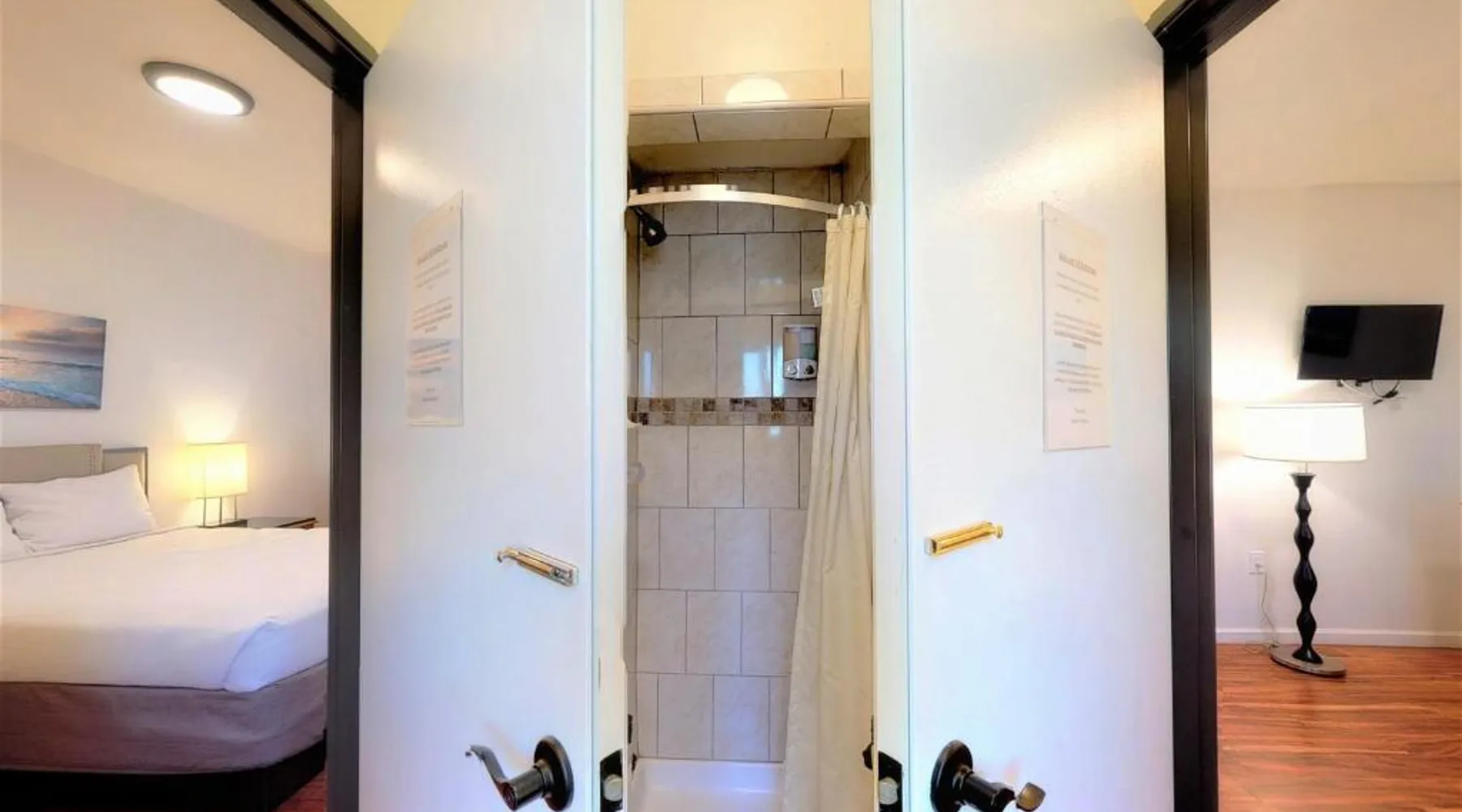 Comfortable Accommodations: Anchor Pointe Inn in Los Angeles offers air-conditioned rooms with private bathrooms, free WiFi, and parquet floors. Each room includes a refrigerator, TV, and wardrobe. Convenient Facilities: Guests can enjoy a lounge, outdoor seating area, and express check-in and check-out services. Additional amenities include a washing machine, work desk, and dressing room. Prime Location: Located 8.7 mi from Long Beach Airport, the inn is near attractions such as Battleship Iowa Museum (4.3 mi), Queen Mary (6.2 mi), and Venice Beach Boardwalk (25 mi). Guest Satisfaction: Guests appreciate the attentive staff, room cleanliness, and excellent value for money. This double room features a flat screen TV and air conditioning. Free coffee in morning at front desk.